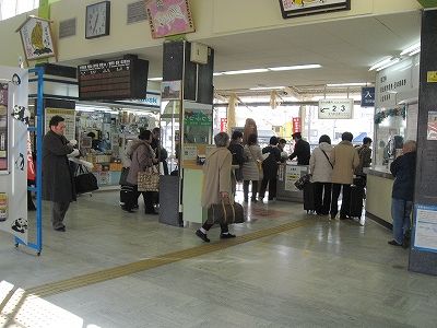 駅に入ると汽車の時刻とあって、旅客数名並び、改札が始まっている。駅員は金額式の切符を見てすぐにわかるものは「阿田和ですね」というように、行先を念押しして、乗り場を教えた。確かに客も間違えたら大変だ。