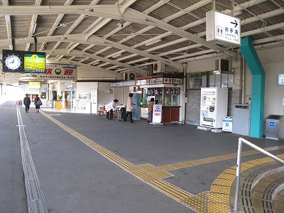 コンコースは狭く、すぐに外に出られてしまうが、ほとんど吹き抜けで、そして二階までガラス張りだ。これは当時としては群を抜くハイカラさだっただろう。というのも、同様の駅がほかにないのだ。それに同じコンセプトの駅が資材と建築方法を変えて今も建てられている。しかし民衆駅で、上階には食堂が入っていた。ガラス張りに沿って通路があるのは今もおしゃれな感じを失わない。外から見ると、店舗がガラス壁に守られて、店舗自体がショーウィンドーの中にあるように捉えられ、特別なものも感じさせる。