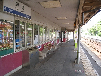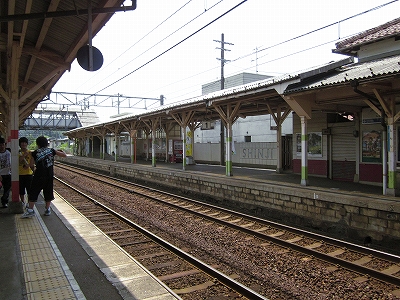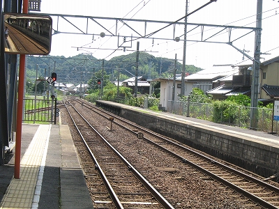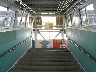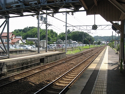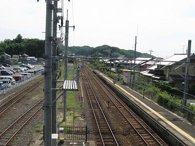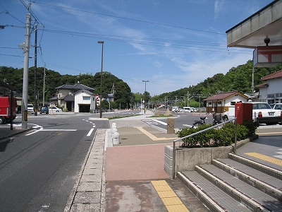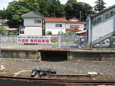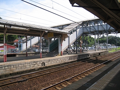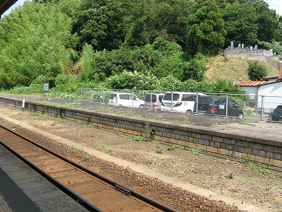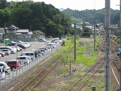 跨線橋は改札を経ず裏にも降りられたが、月極駐車場利用者専用とある。駅員がジッとこちらを見上げてる。「うたごうとるな…」
