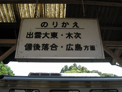 降りた列車は備後落合行きに接続するうえ、やくもも停車するので、肉声の構内放送もけたたましい。「3番のりば、木次線13時55分発出雲横田方面、備後落合行き、まもなくの停車となります。今しばらくお待ちください」 別の客対応している間に、改札を無言で通った客を見て、「1番のりば、出雲市行き特急やくもご利用なお客様は、改札までお越しください。」