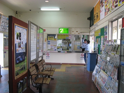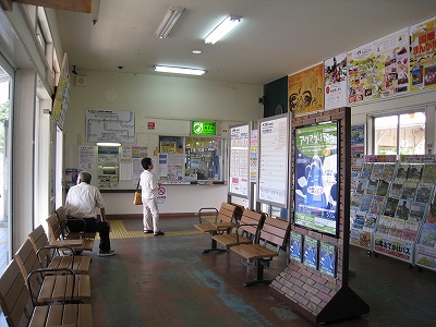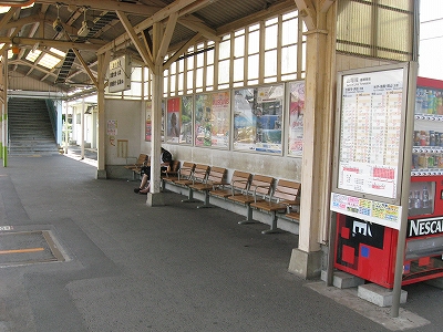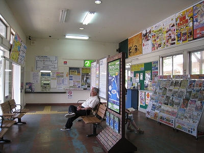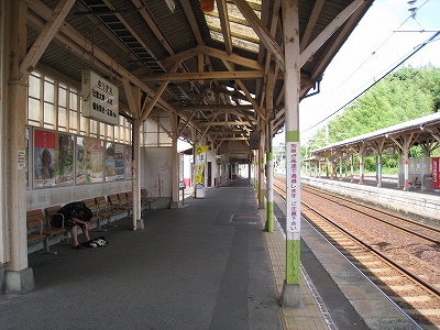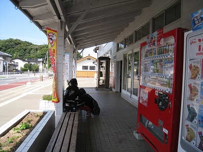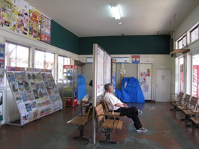爺さんが暑さのあまり項垂れているが、そもそも冷房もない駅舎内…というかこんな田舎を走破する山陰本線での旅行ではまったく冷房に出会えず、あえぐような苦しみをずっと私は味わっている。まだ北陸の方がましであった。