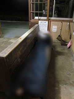 ふっと目を覚ますと、いつしか消灯していた。隅っこの赤いナツメグ灯だけがぼんやり灯っている。ほんとに昔の祖父母の家の板の間にゴロンと横になっている感じだ。誰かかが駅に近づいてきたこともあったが、暗すぎて私のことには全く気付かなかったようだ。扉は開けておいてよかった。閉まっていたら非常に怪しまれるだろう。もっとも、閉めるともの凄い音がするのだが。きれいなトイレや水場も室内にあって、とても安心できた。なんか人の心を感じる駅である。古くてもこざっぱりして掃き清められているというのは、そんなことをいたく感じさせることが多い。掃除だって工事の一種みたいなもので、それだけで収まることがある。