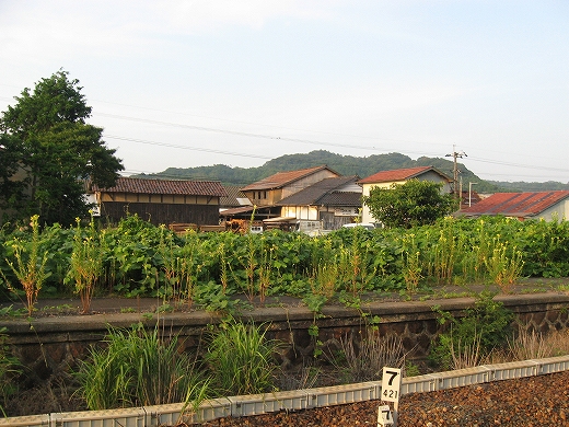 私の意識において夜気に沈んだでいた構内は、暁光のもとに土や草が蒸気を放散し、廃された向うの線に生い茂る草草からはコオロギ泣きわめいている。うーん、私は夏に旅行に来たんだがな…叢から虫が飛び出し、どこかに捕まったのか、一本の草が揺れる。いったいどれだけの生命体がここに潜んでいるのだろう? 姿など一向に見えないというのに! 夏の朝は本当に涼しいもんだ。留まる虫を振り払うように探検するが、そのむき出しの脚は寂しかった。