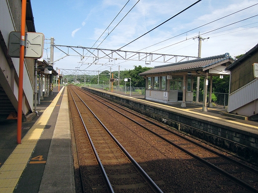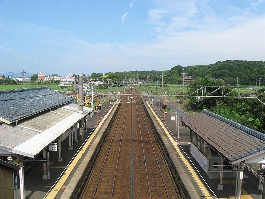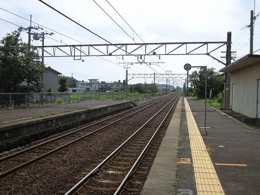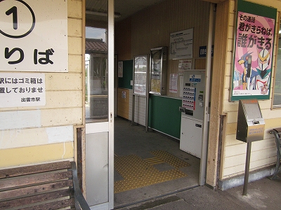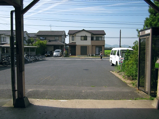 まぁ、あたりは何もないところで、延々と水田が広がりその先に島根半島の山地か立ちはだかっている。その向こうが海なわけだ。ここからだけ見ると、この囲われた感じがちょっと奈良のようにも見えなくはない。荘原の集落は駅出て左を進んで、むかしの宍道湖の、いまは陸地なところにある。鉄道はそういう湿地を避け、きれいに山肌に沿い、旧湖の外郭沿うようにして出雲市駅へと向かっている。