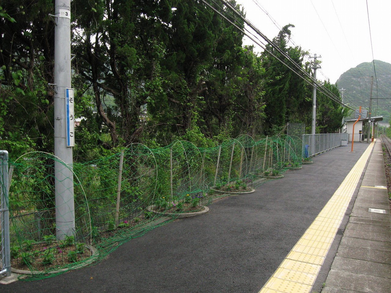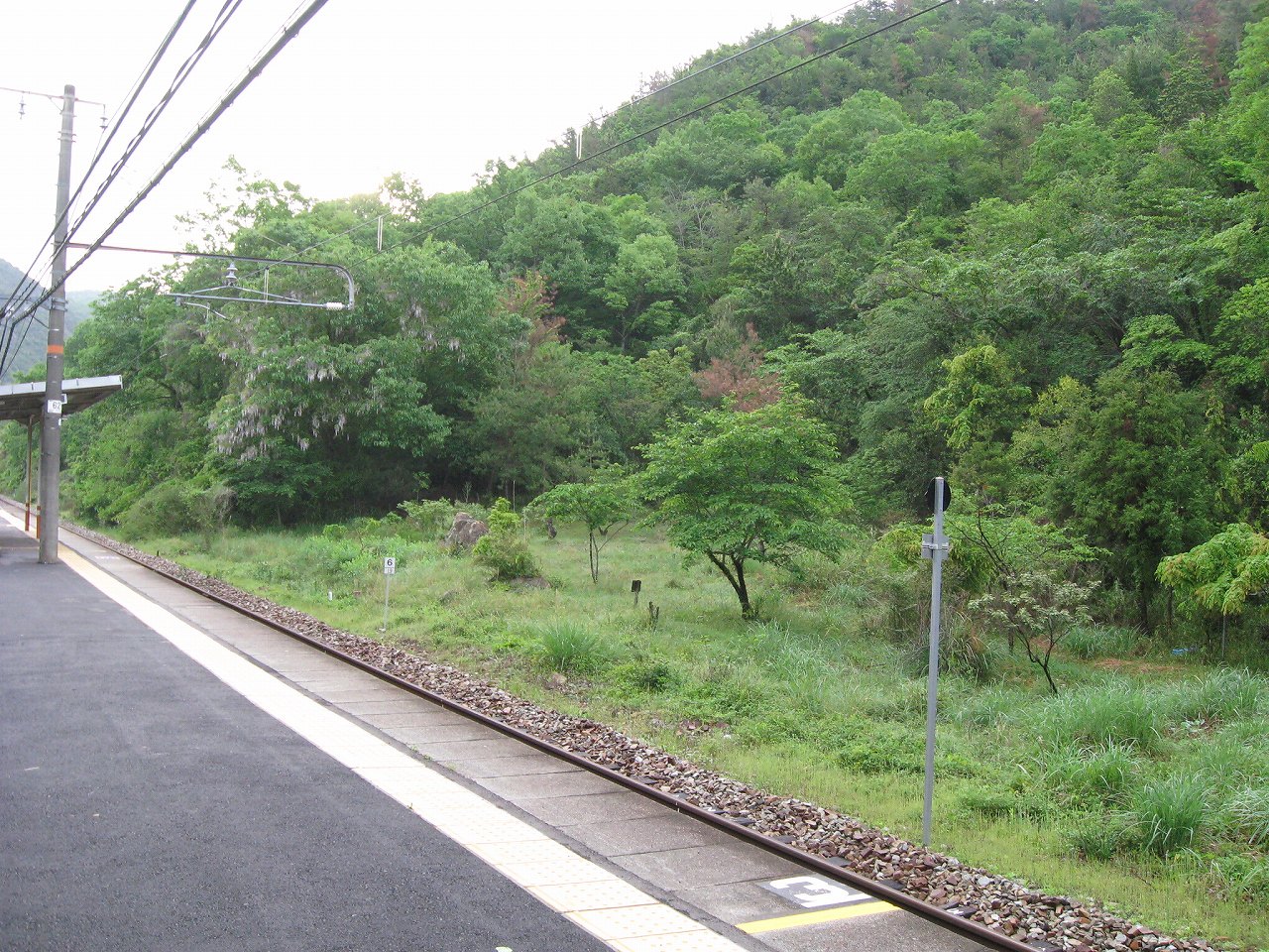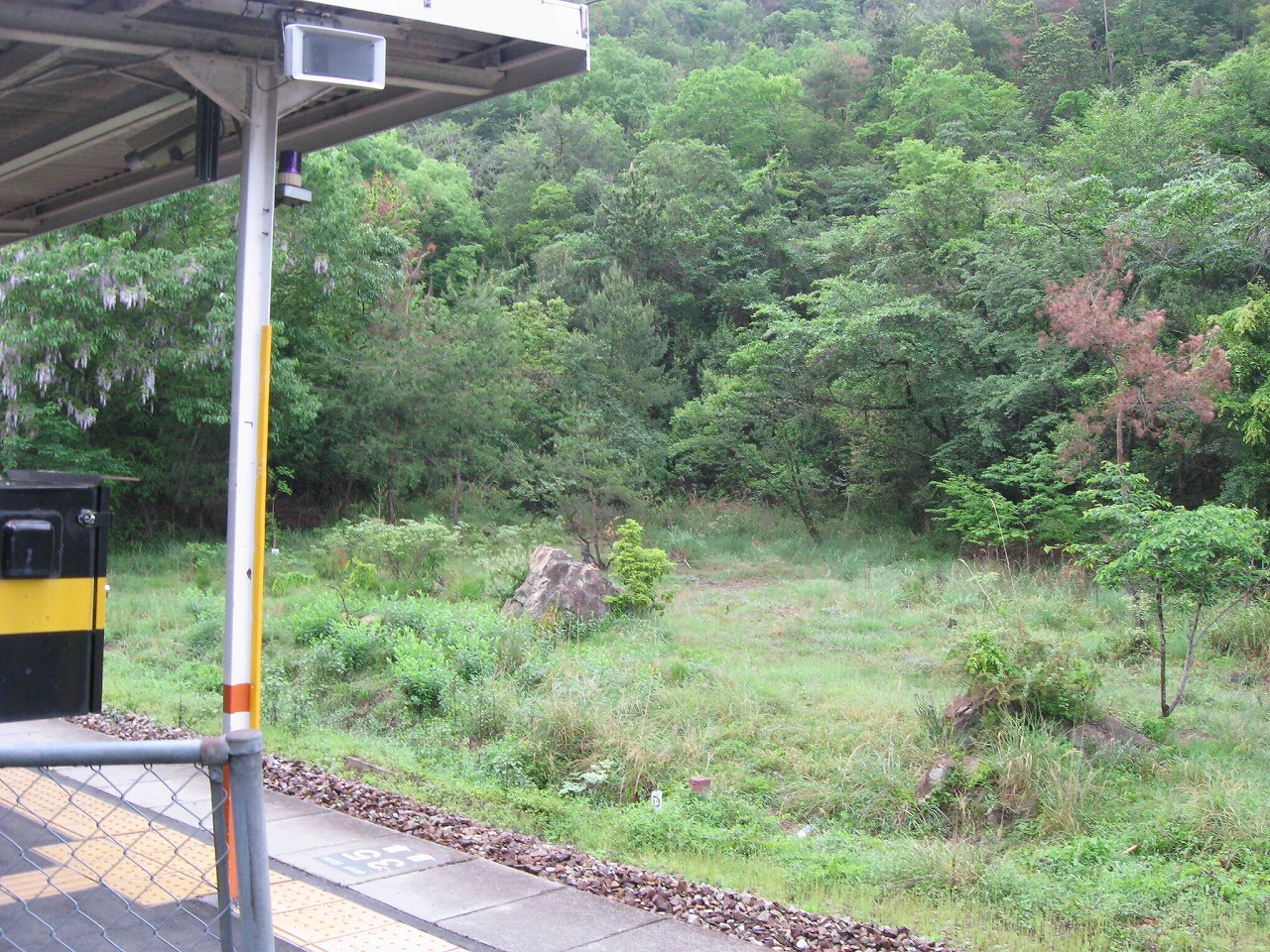 ホームの目の前の風景。何にもの人々に舐めらるように見続けられた相転移中の植物群。ここも以前は何かあったんでしょうね。