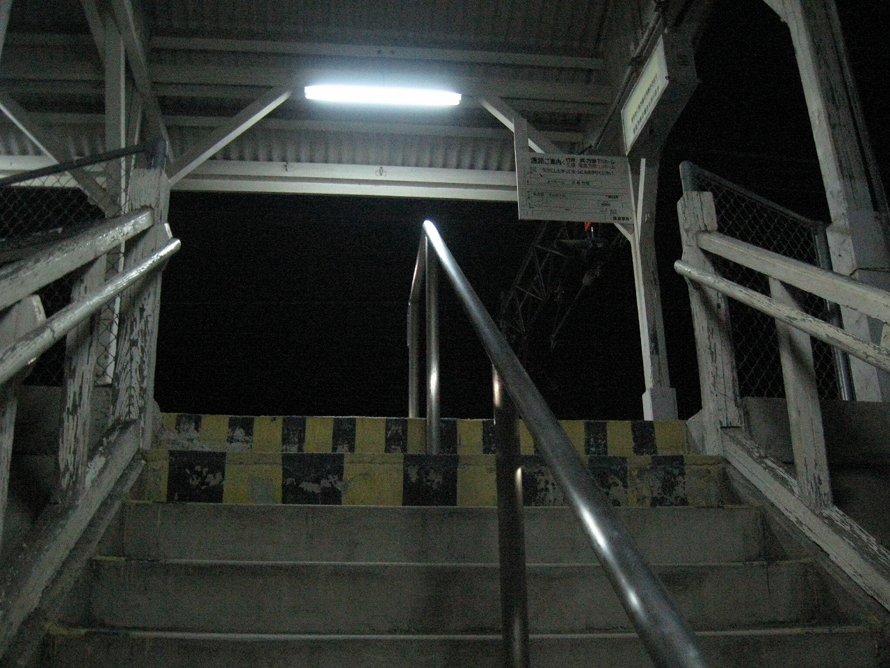 気が付くと消灯していた。真っ暗だが、構内は煌々と水銀灯が積もっているらしく、そんなに怖くはない。海があるのも、なんとなく安心する。津波に関しては…構内が高台になってるからそこに行けばいいだろう。