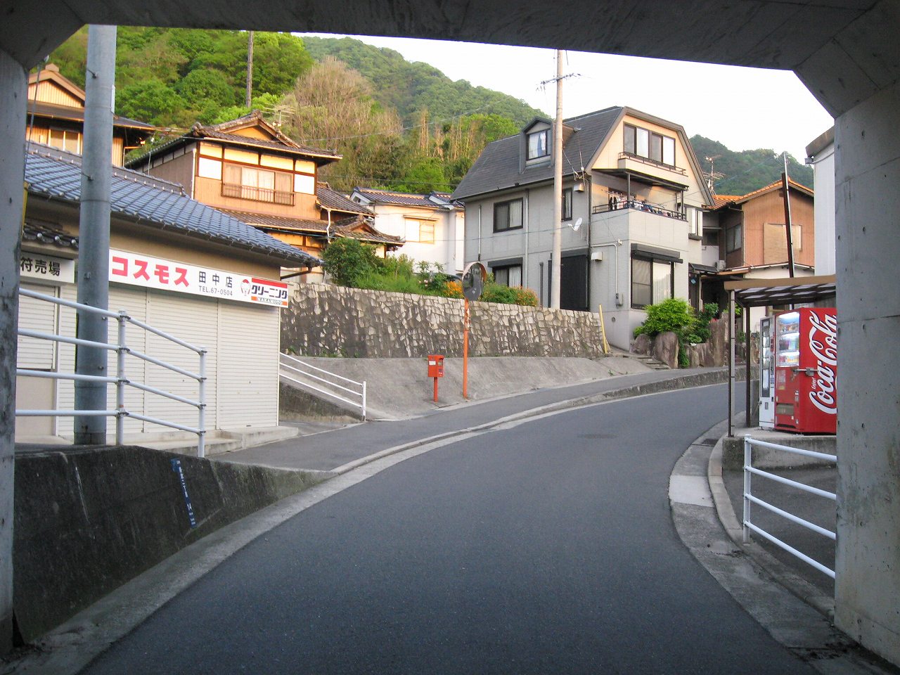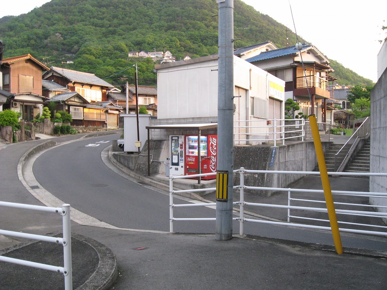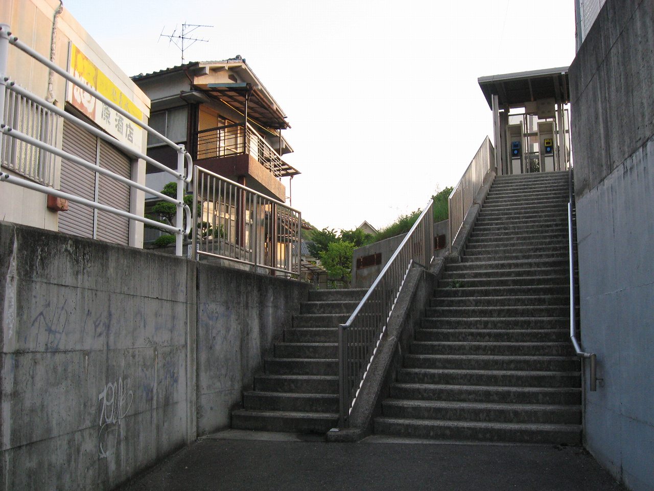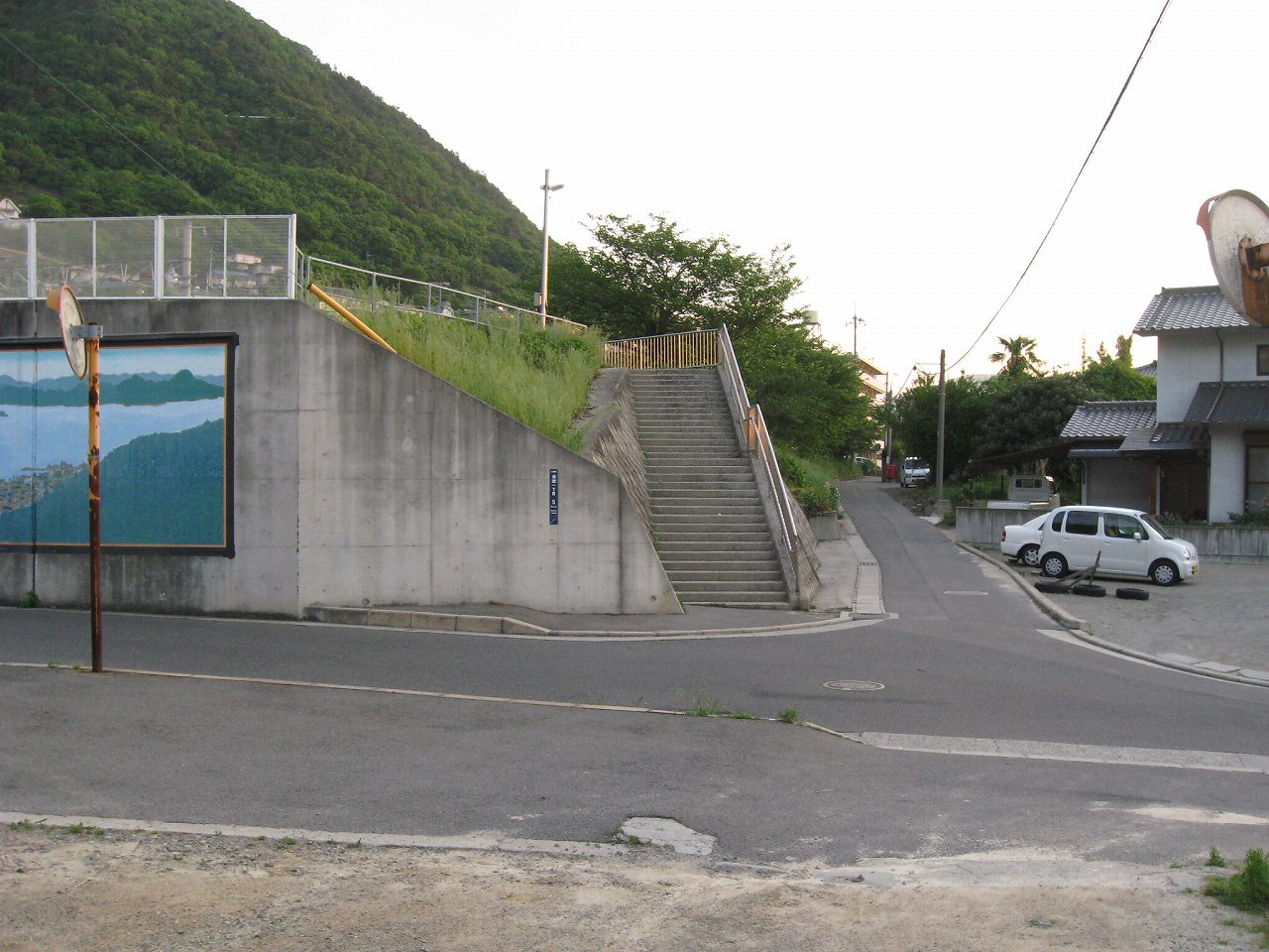 たぶん左手が旧道、右手の新道を作るときに、さっきの階段と、これから見る三原ホームの出入口を整備したようです