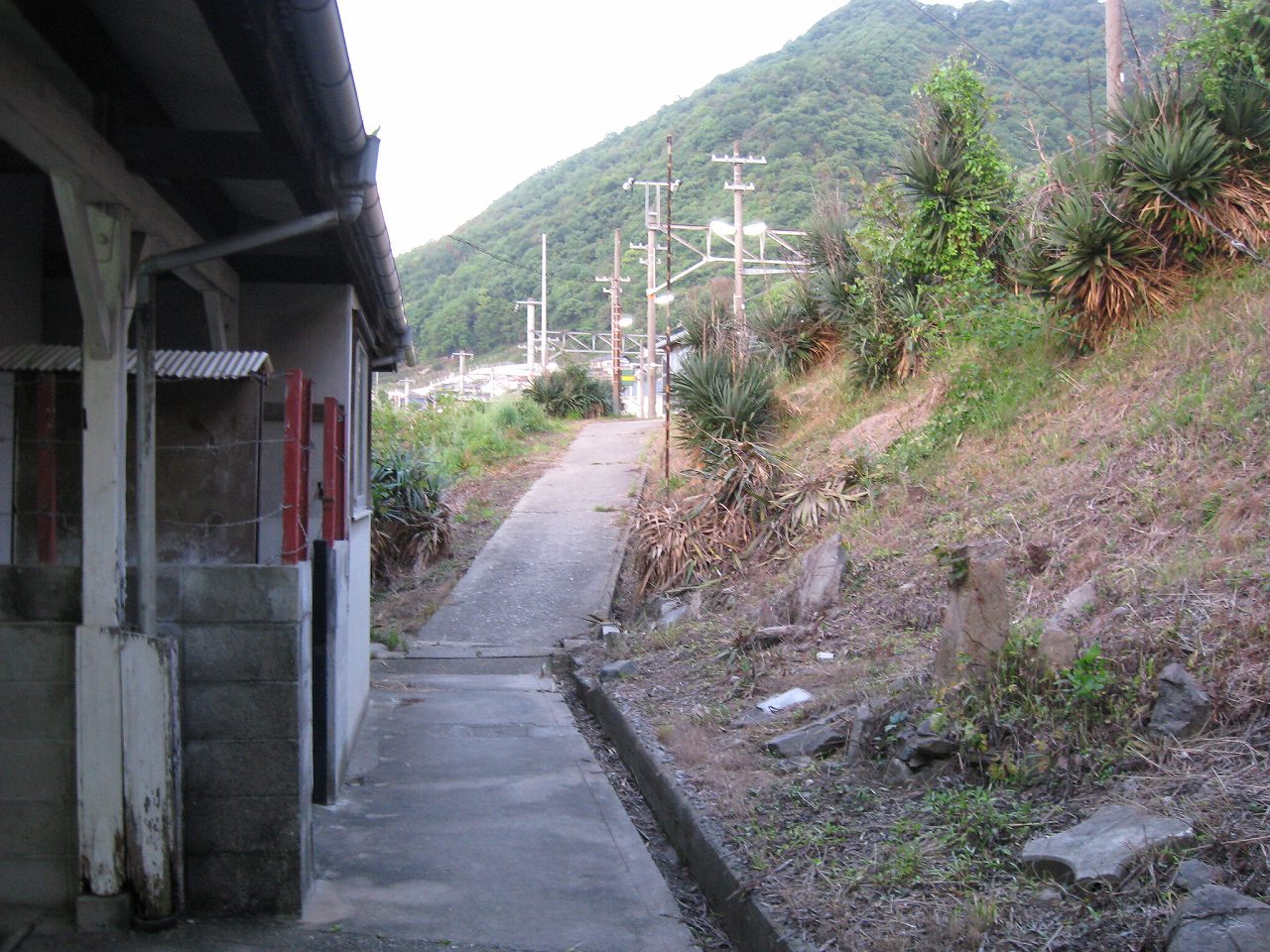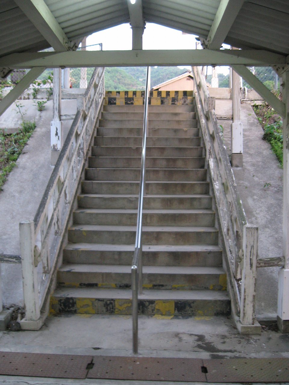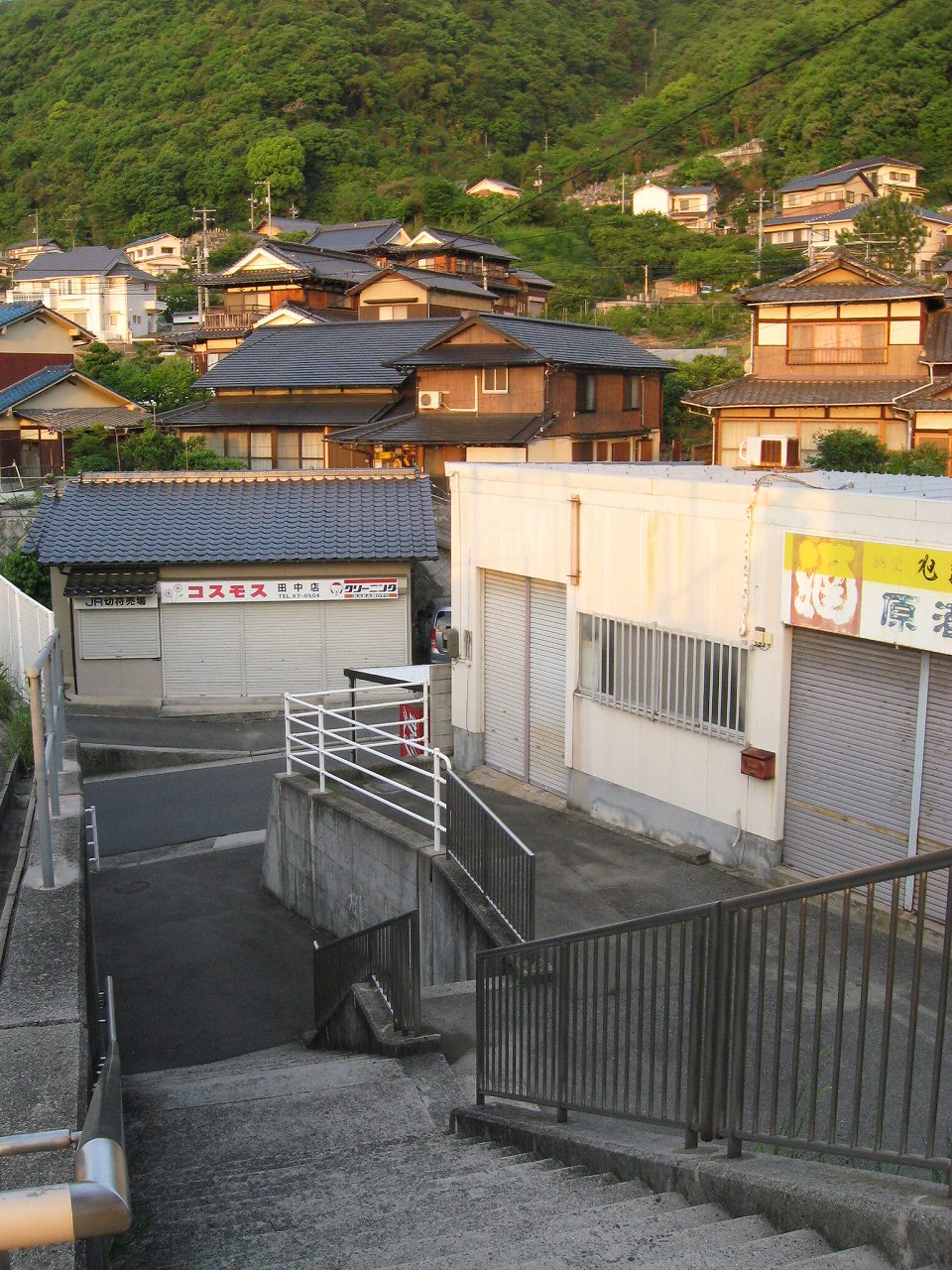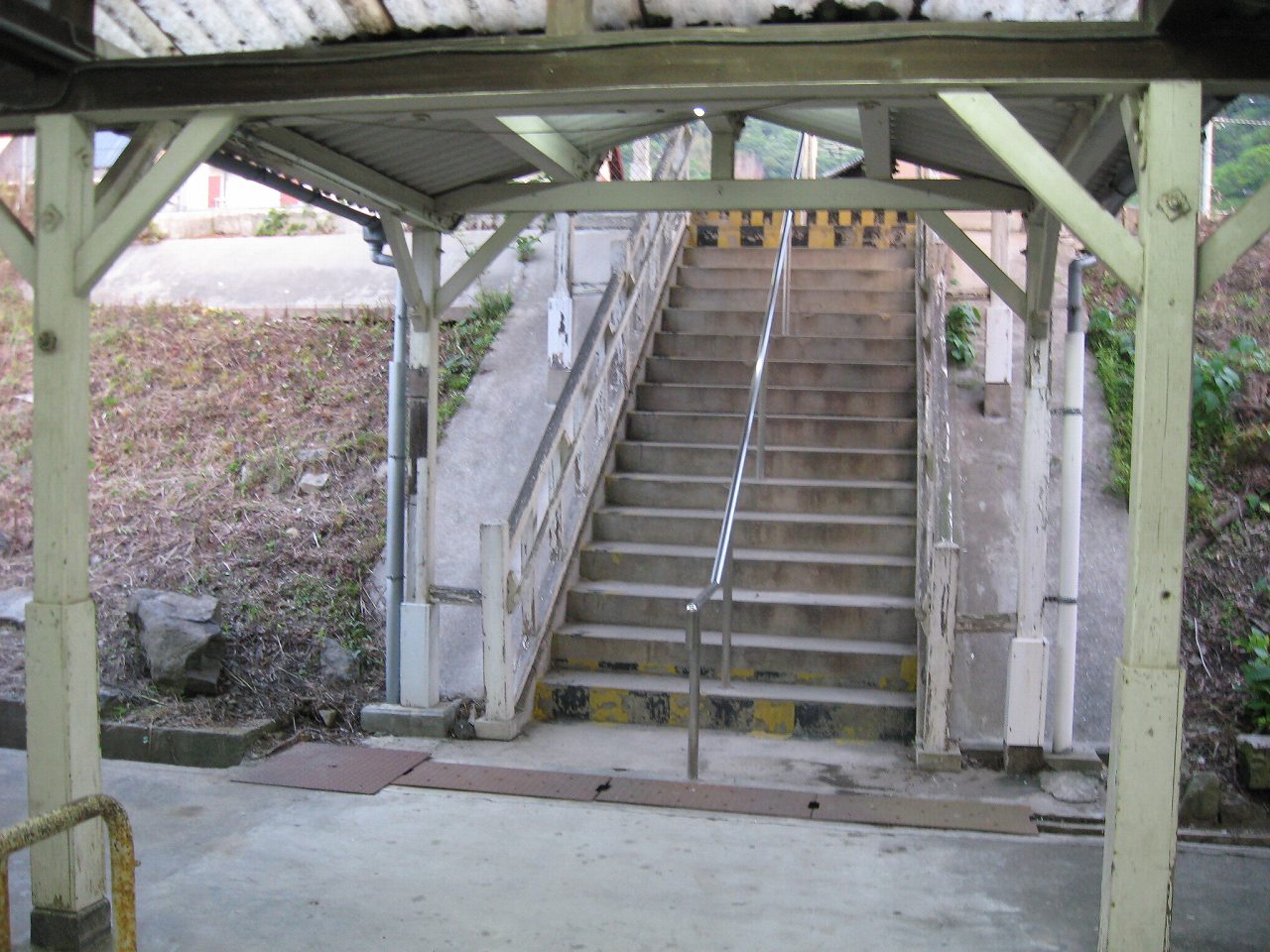 たぶん左手が旧道、右手の新道を作るときに、さっきの階段と、これから見る三原ホームの出入口を整備したようです