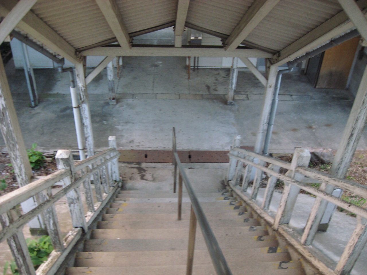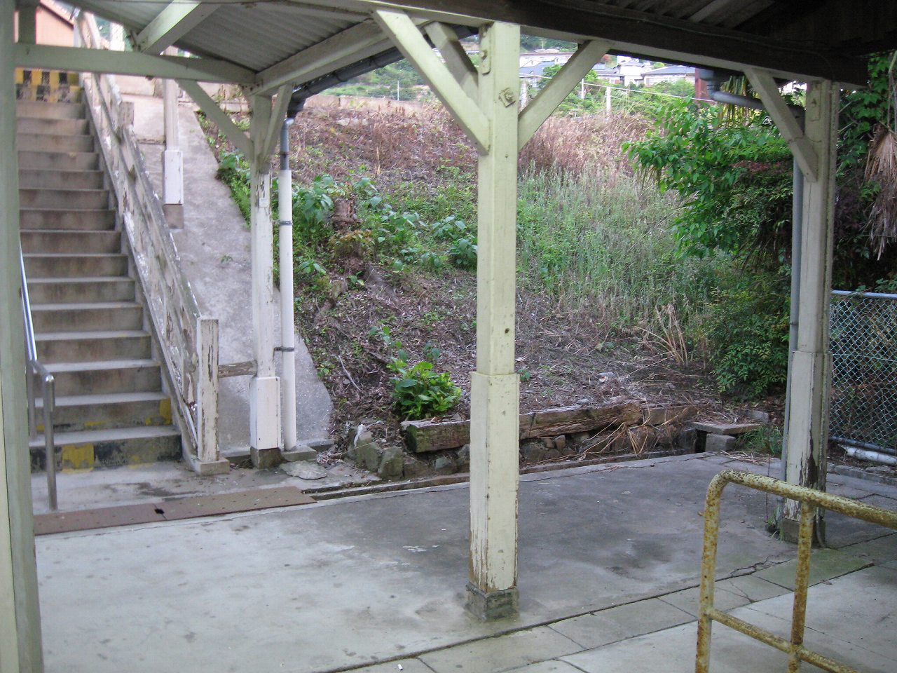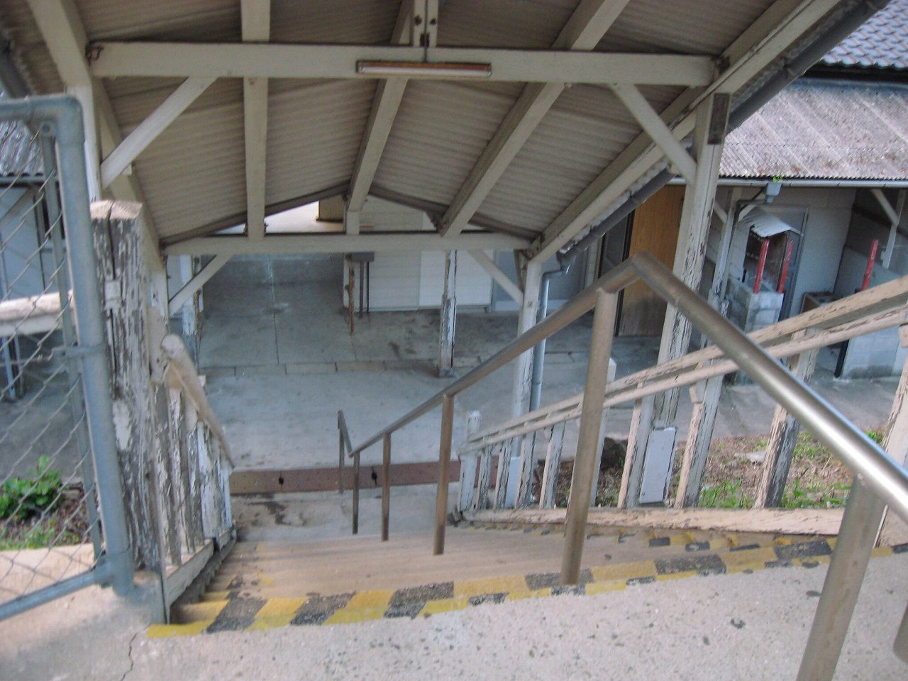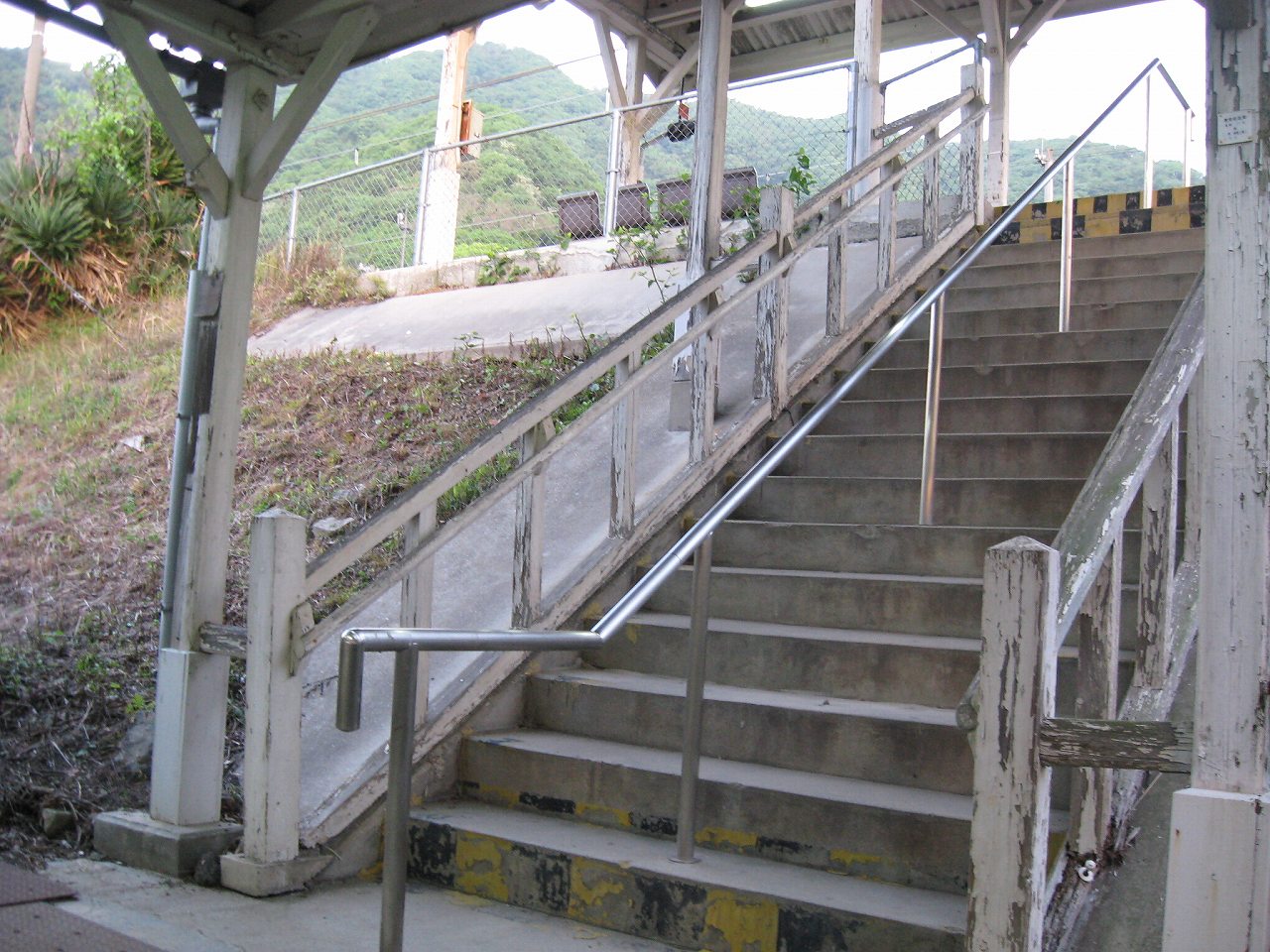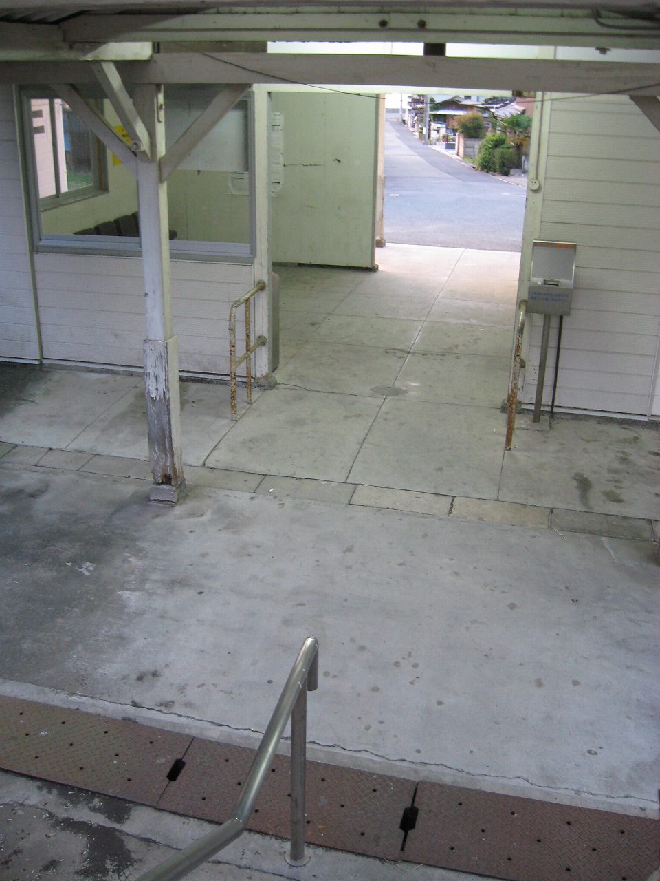 たぶん左手が旧道、右手の新道を作るときに、さっきの階段と、これから見る三原ホームの出入口を整備したようです