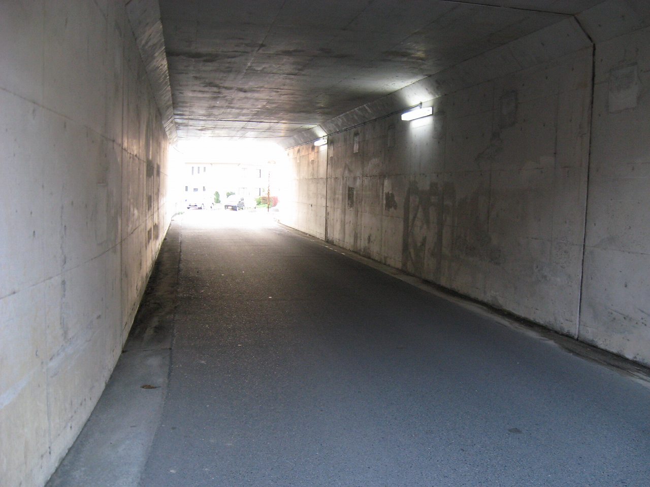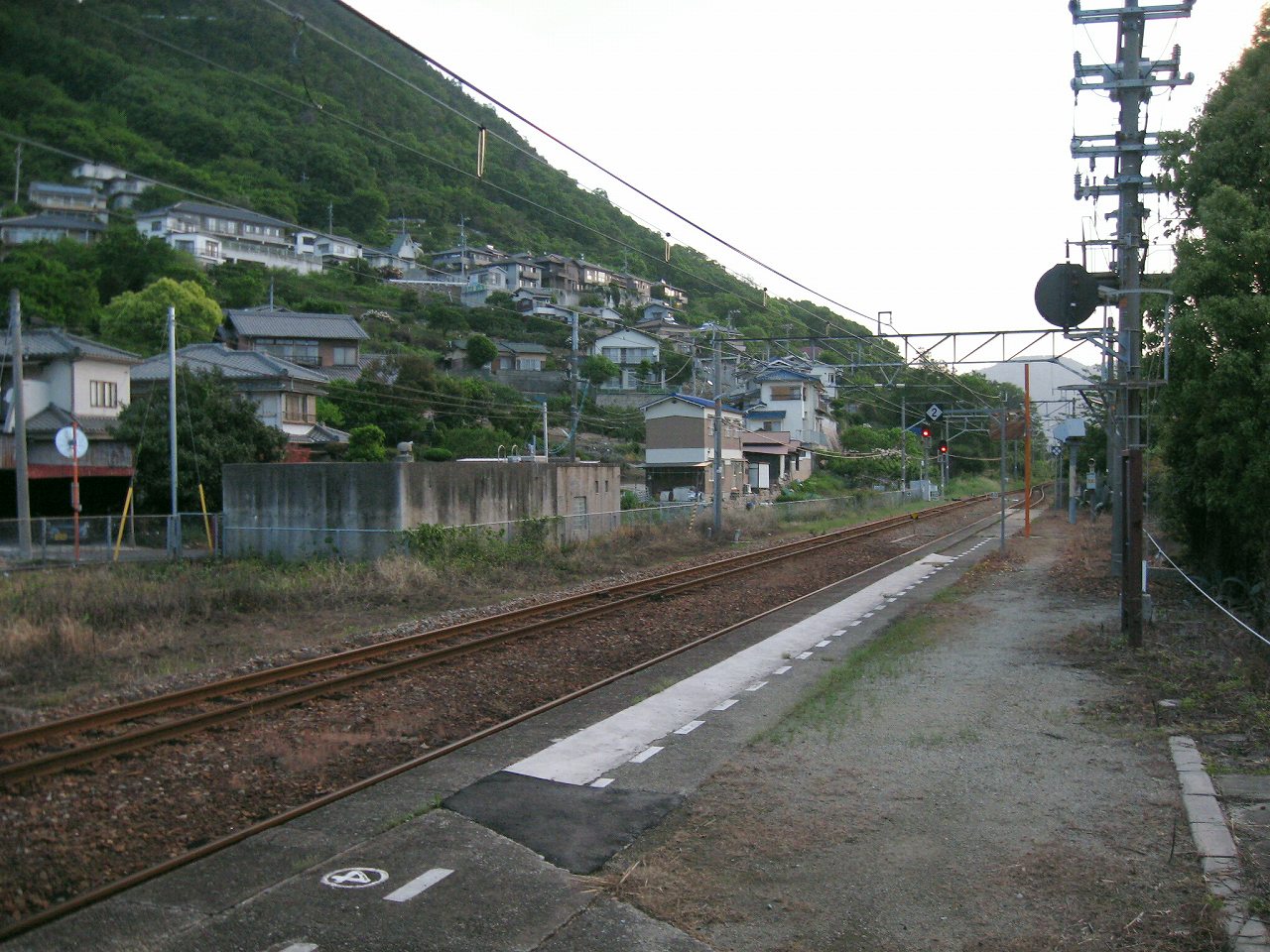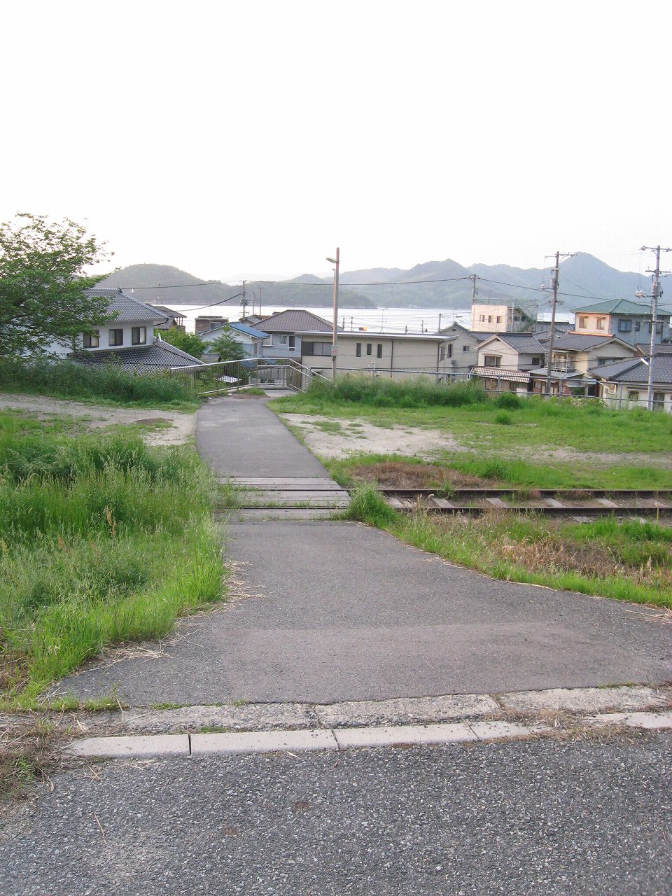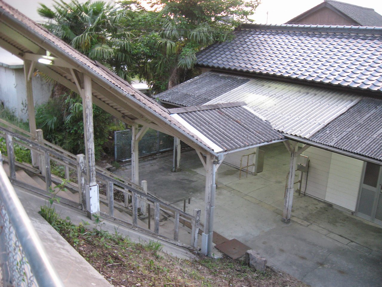 たぶん左手が旧道、右手の新道を作るときに、さっきの階段と、これから見る三原ホームの出入口を整備したようです