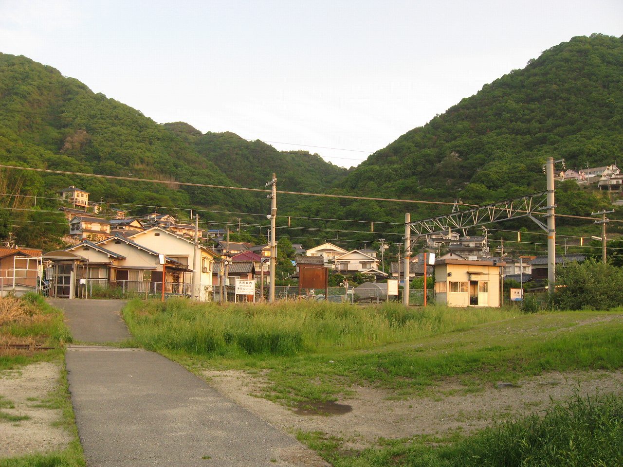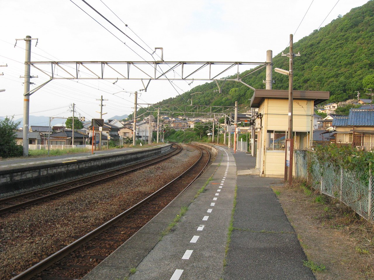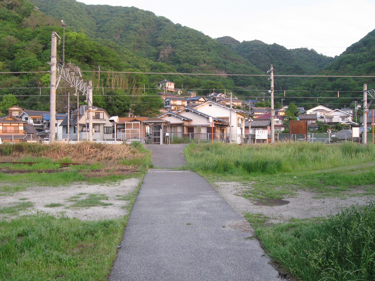 ちょっと特殊な駅で、向かいのホームへは一般道を通る