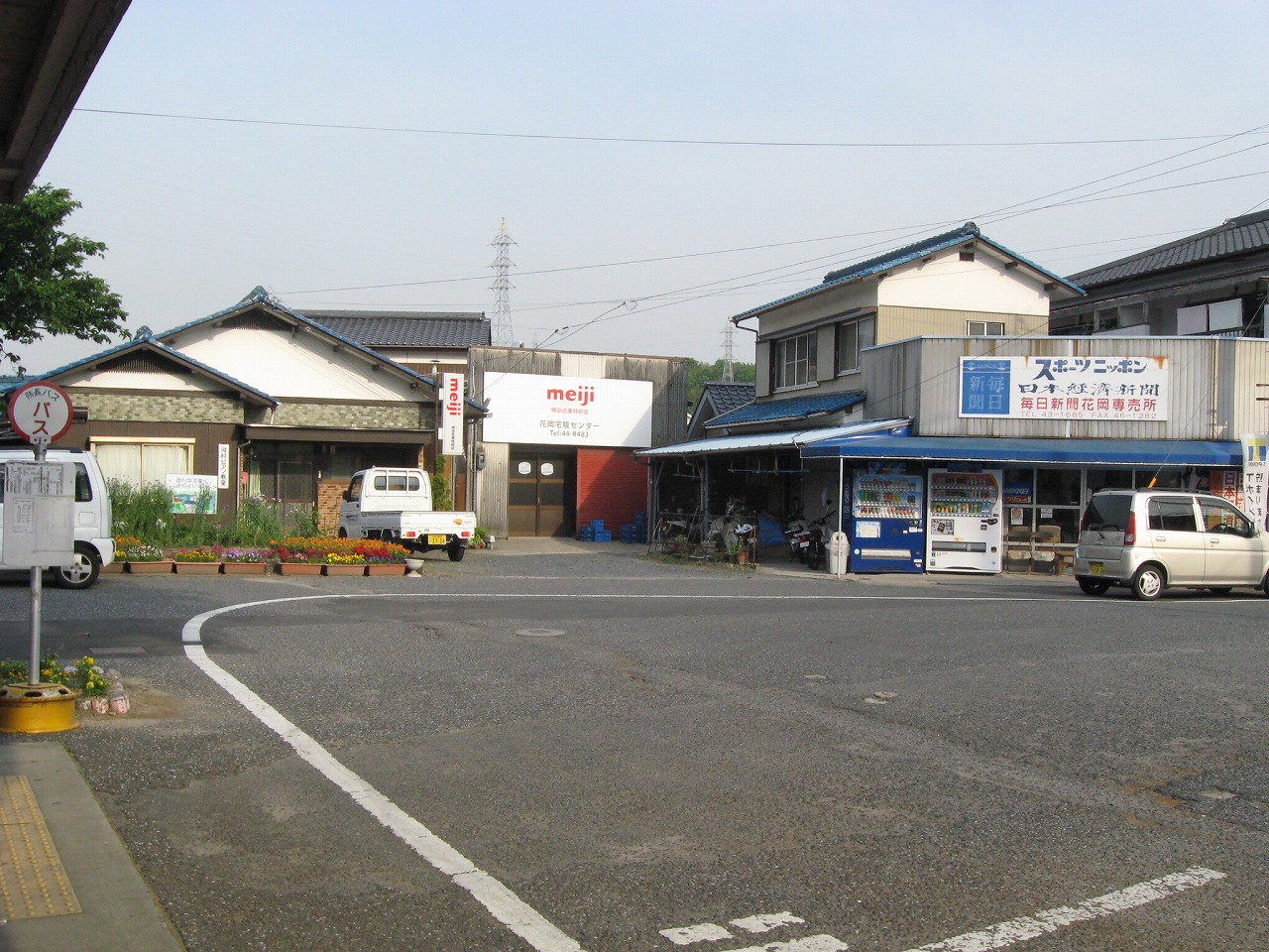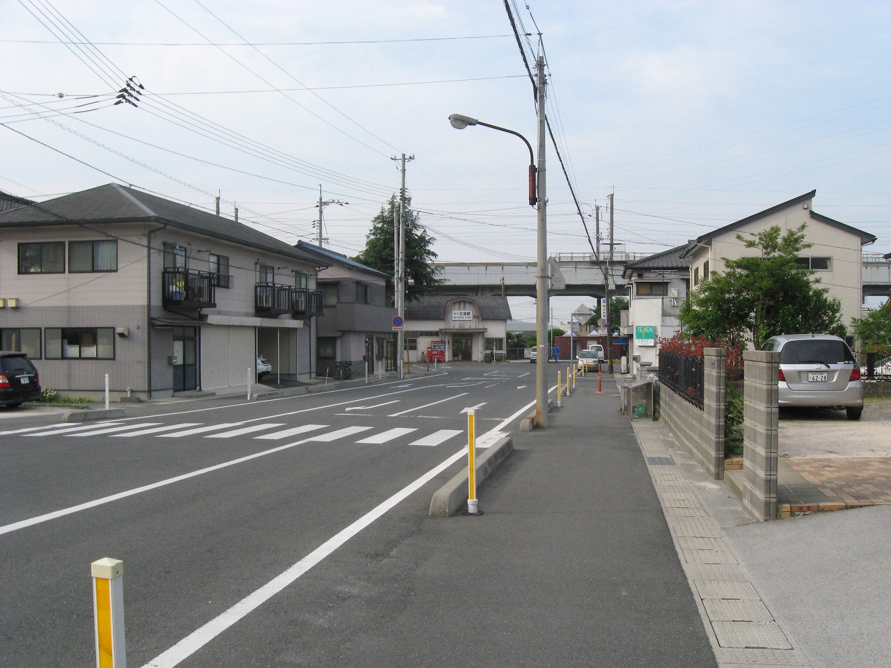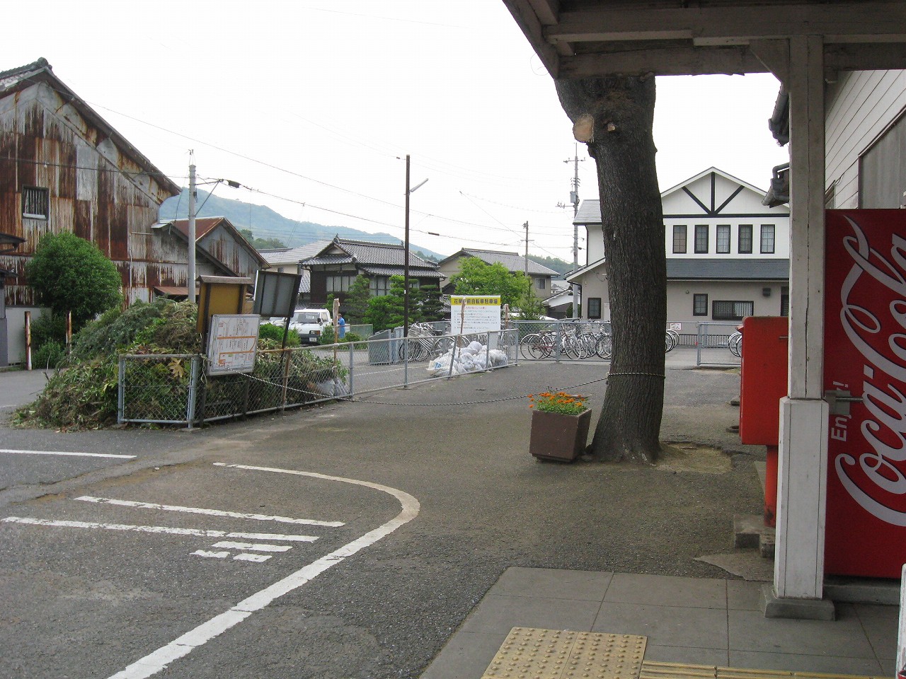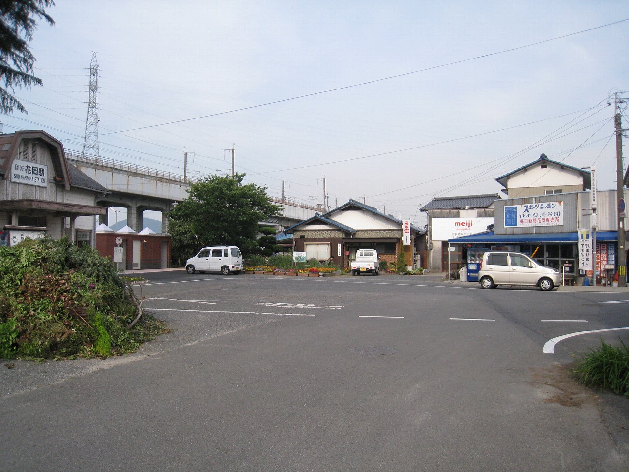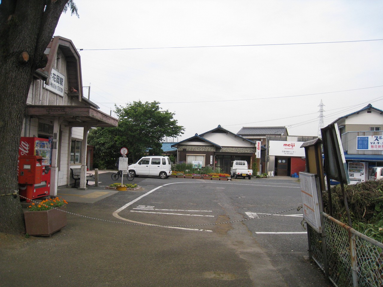 花岡の駅前は山側に向かっています。こちらに市街はありません。
