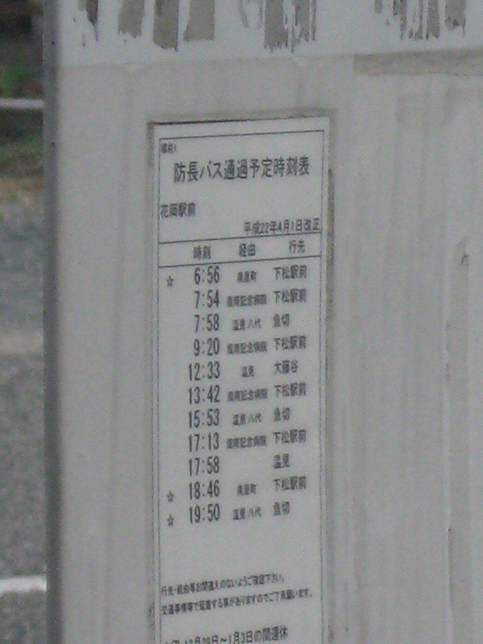 時刻表。朝方なので、バス待ちと間違われないように確認。