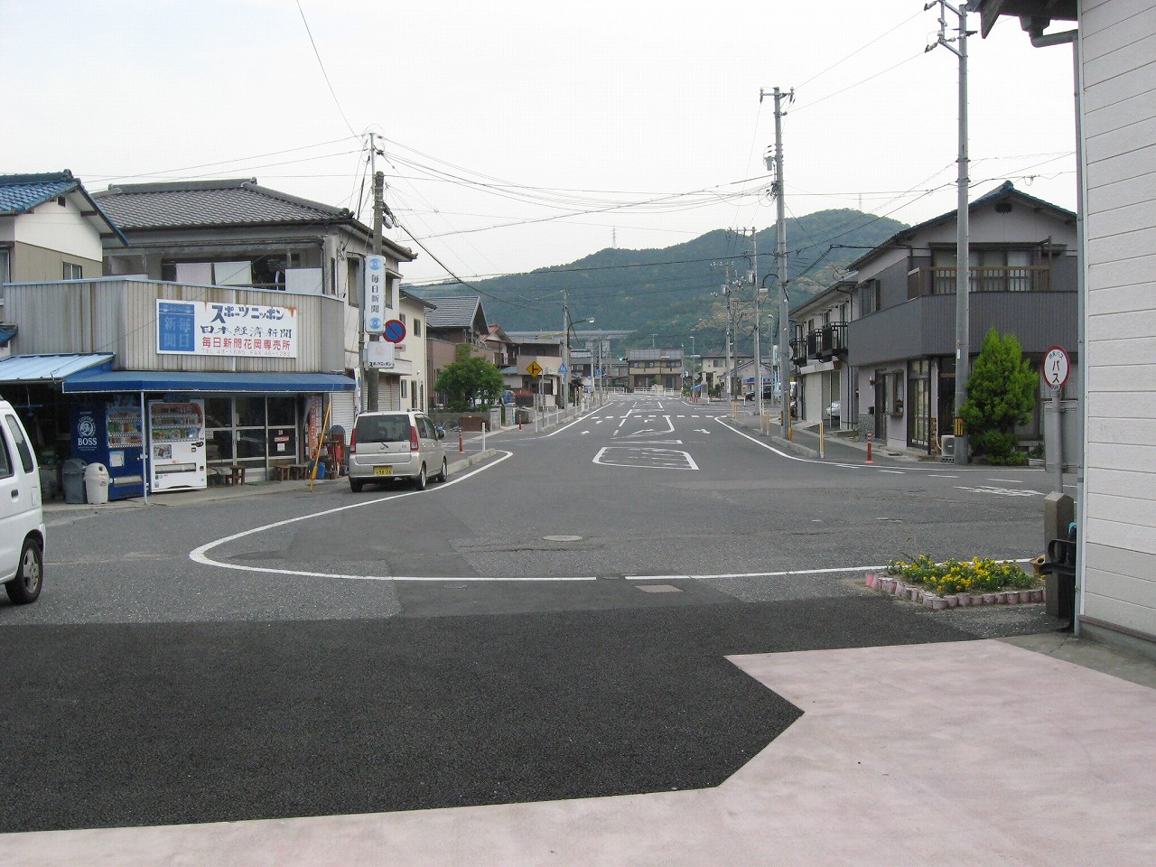 朝なので車の通りもときどきありました