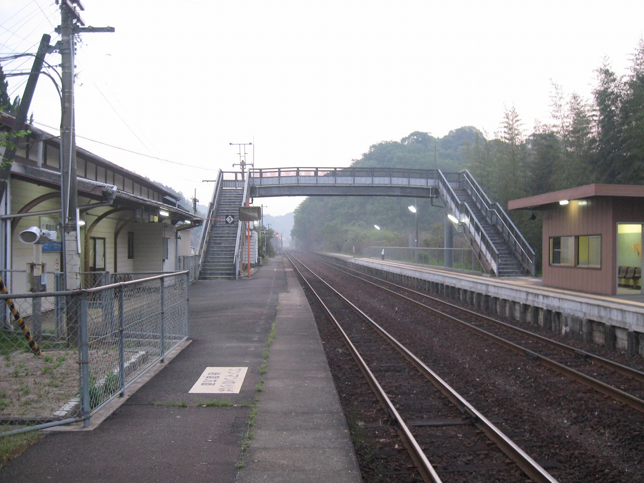 90年代に改装されたかのような白い建材をはめ込んだ外観の駅舎は、JR西の青いラインの駅名標が民営化の悲哀を物語っていた。いっさいは過ぎ去り、ただいまはそこにあるがままにある。職員はそのままスライドし、或いは大量に違う事業に異動し、雇われた人たちがある程度のところまで年齢を重ねるまでの時間で、トップは経営を見積もる。運転士はしっかり職責を果たす。たとえそれがつまらなかろうが、退屈だろうが…そして駅で待つ人を心のどこかでは、乾いた喉のように求める。 朝になれば列車は来る。来ない日はまだない。それだけでも奇跡的だ。そんな風に思えるのは、始発はるか前で、僕が駅寝し、あたりは異国のように霧に包まれているかもしれない。