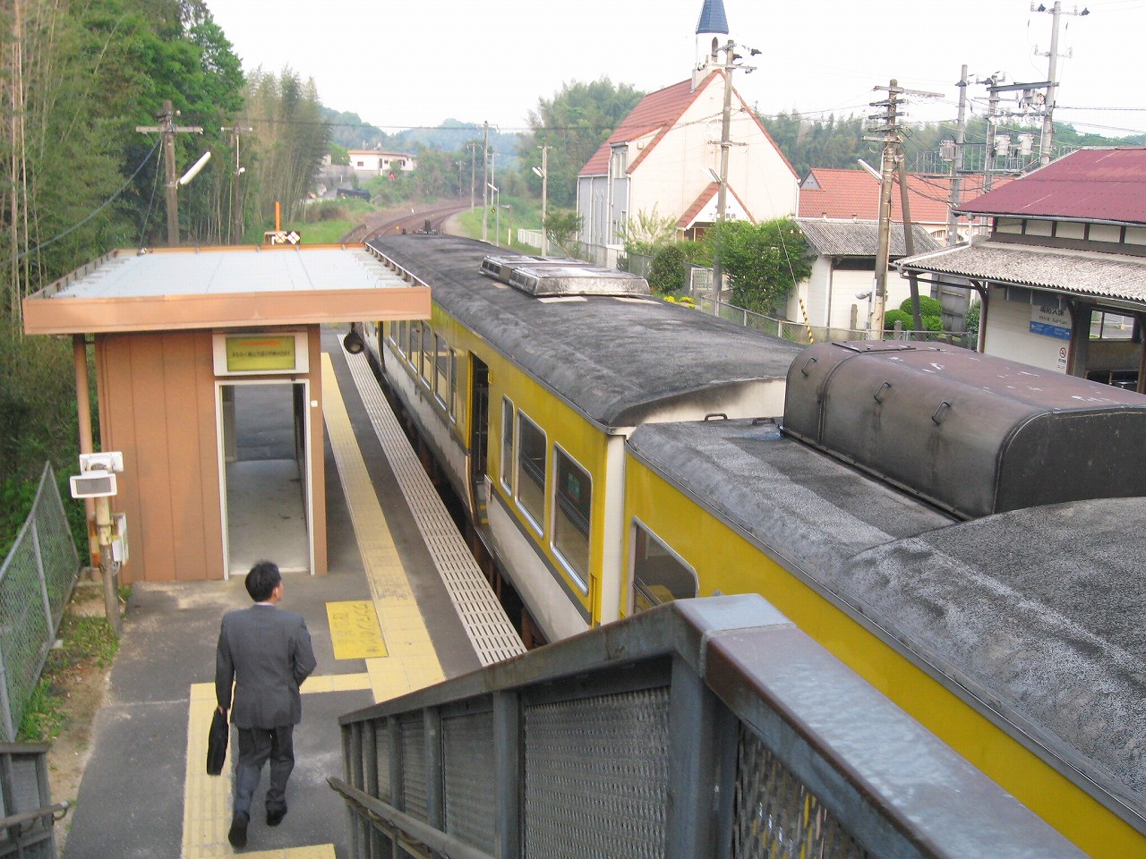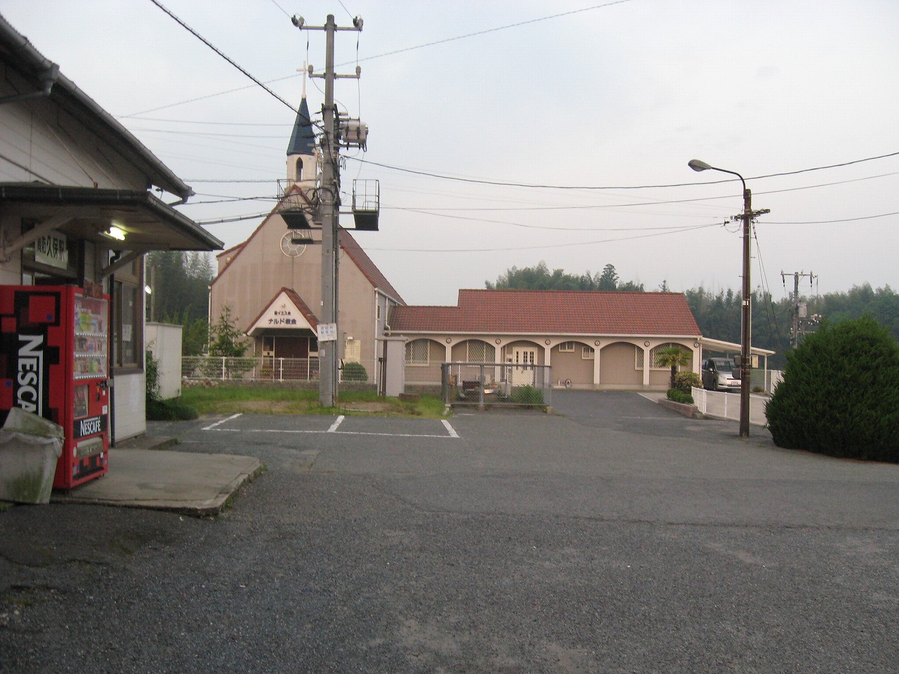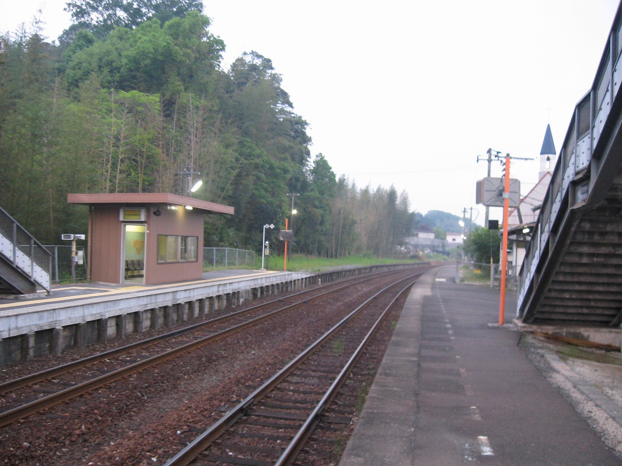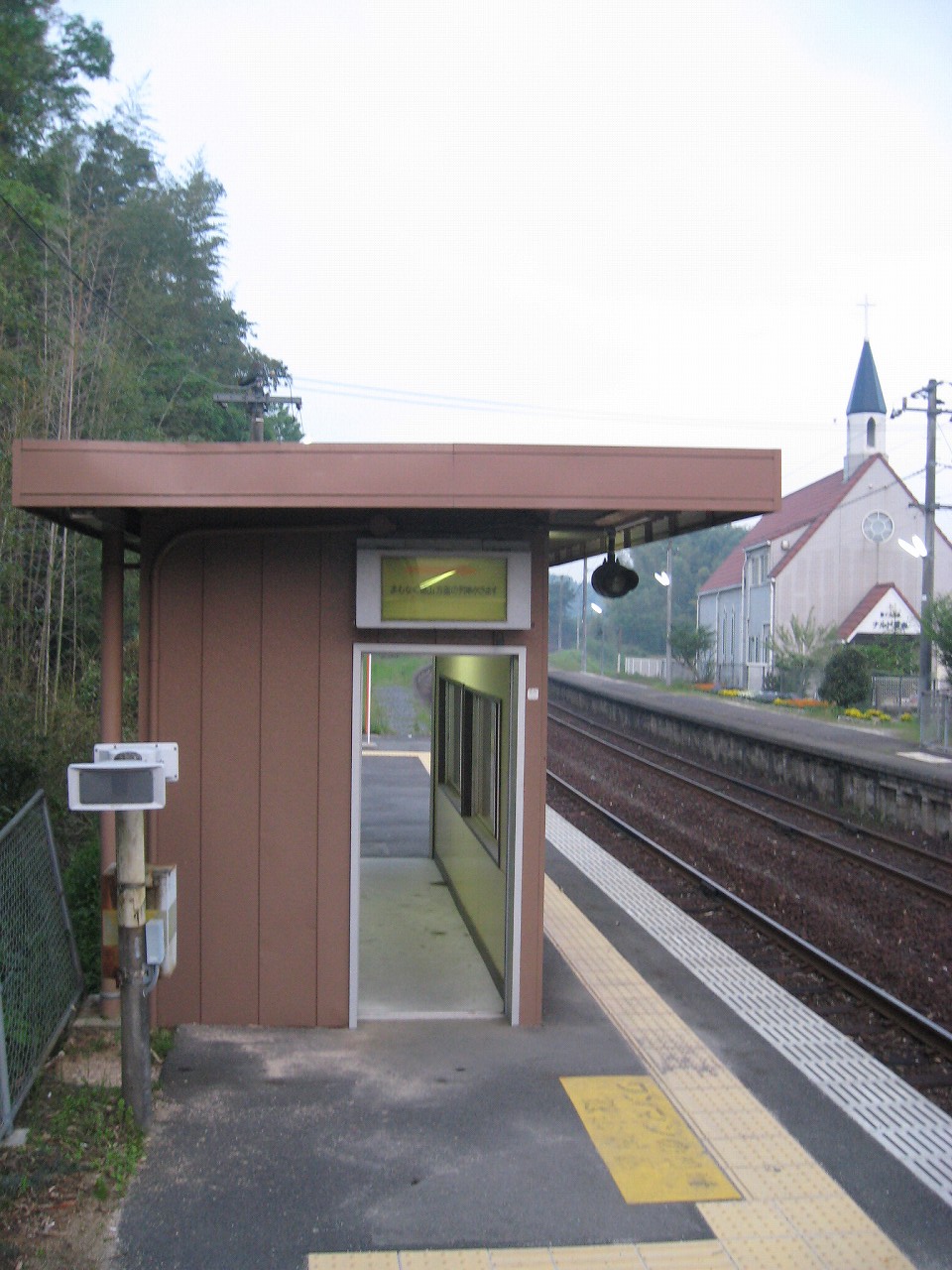 山手側のホーム降りると、教会の姿は異様で、なんでここにこんなものがあるんだといった感じだった。夢か幻か? 何度か僕は駅名標を確認した。そこにははっきりと感じで周防久保、とあり、まぎれもない日本、しかも山口である。 夢の薬でタイムスリップし、帰られないことに悲嘆に暮れて泣きはらしているといつしか大海になって帰り着いていた、そんな錯覚にも陥った。
