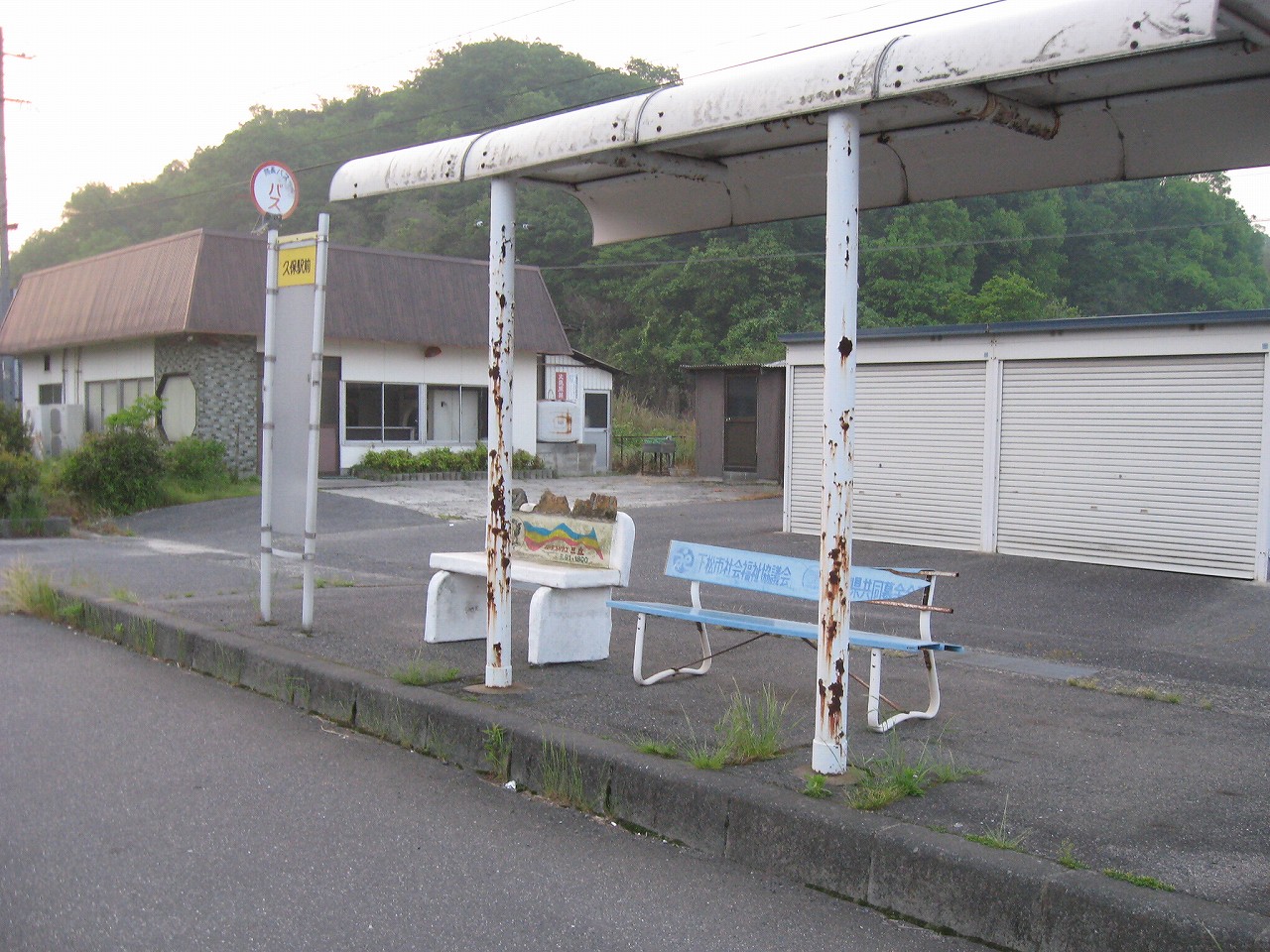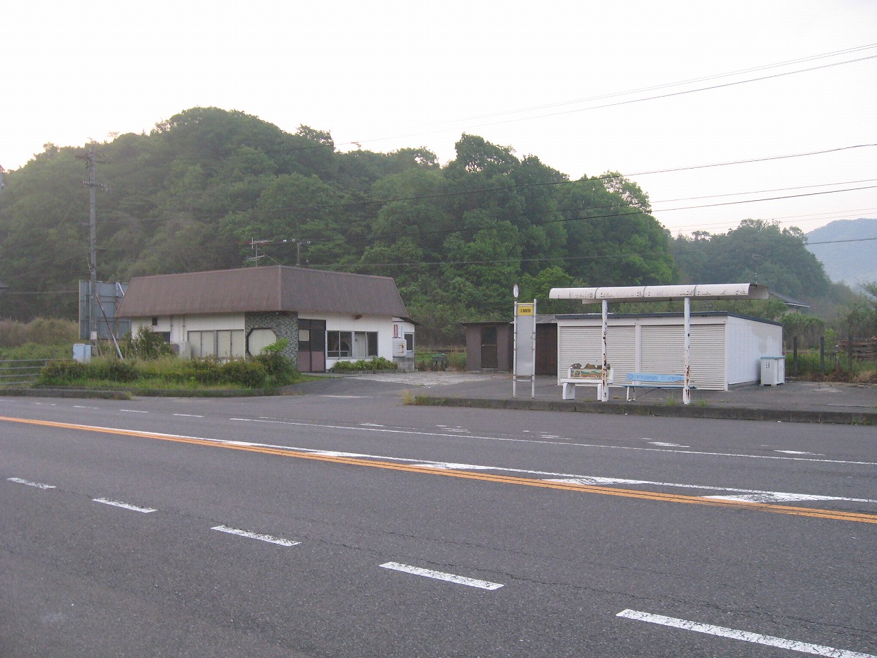 なんというか日本は道路を作りすぎたかもしれないと、しばしば思うことがある。今は高架のバイパスができたからこっちのこんなに規格のいい道は交通量がないのであるが、その高架の方もこの時間はそれ程でもない。ほんとに高架の方は必要だったのか? けれどドライバーは、道路はいくらあっても困らないといったような認識がある。椅子が割れ、うらびれた防長バスのバス停を見ると、何か虐げられた人の姿が見えるようでもあった。それは運転手かもしれないし、乗客かもしれない。 僕ならきっといっぱしの乗用車を買って、好きな音楽でも聴きながら、この道を飛ばして通勤するだろう。