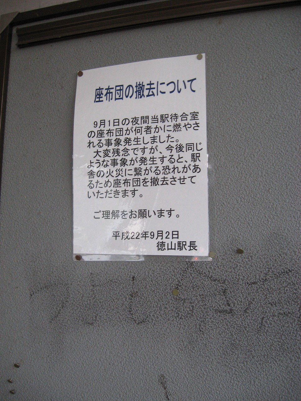 長椅子なし。掲示板破壊。