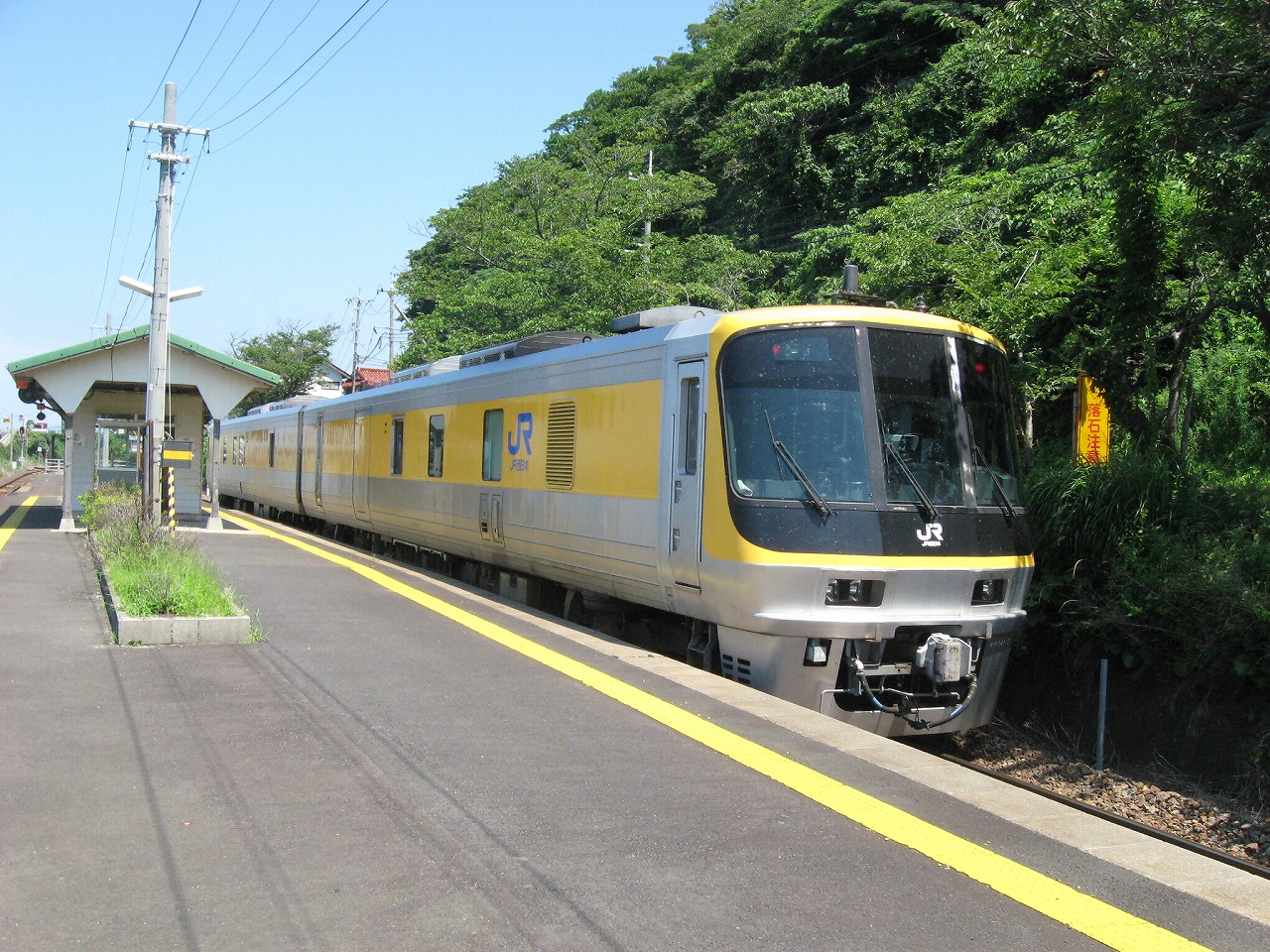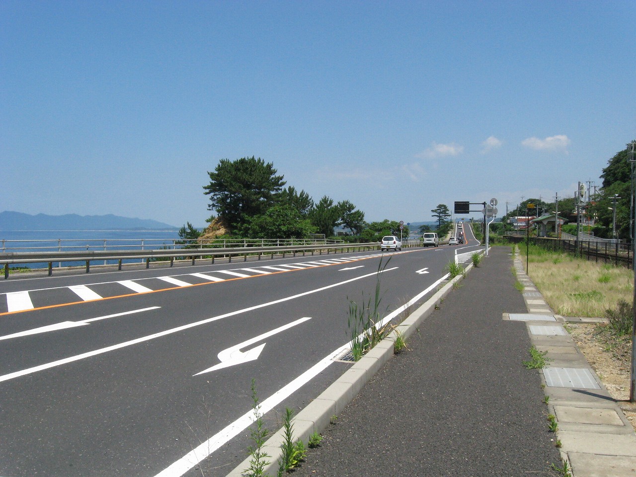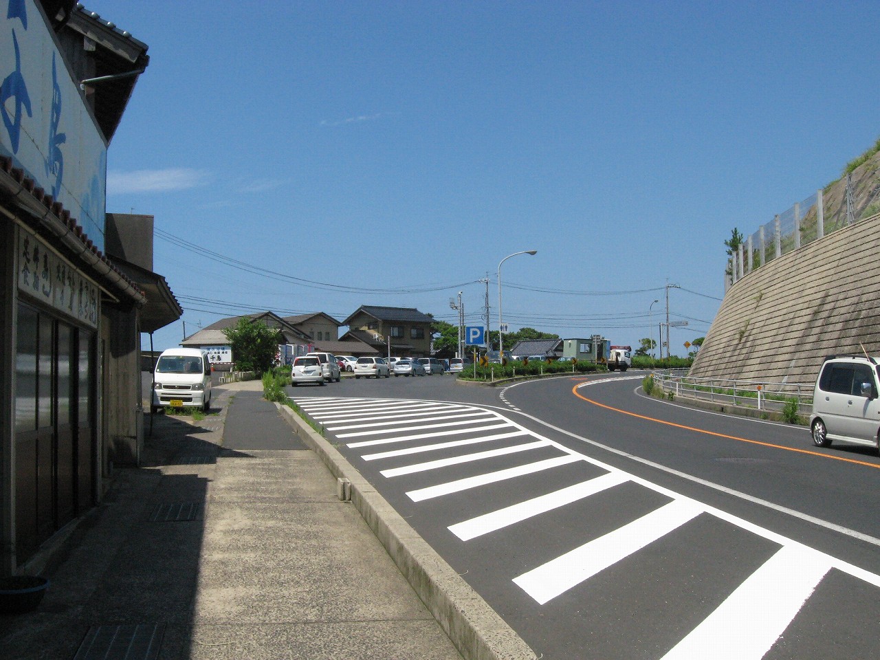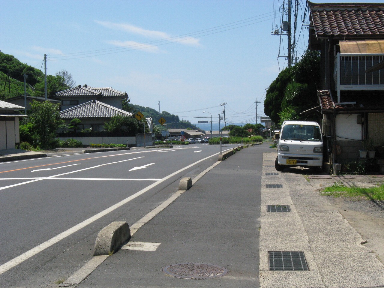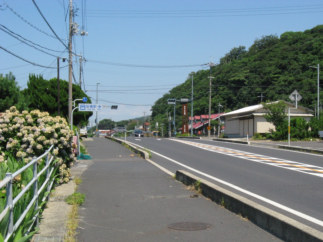 線路の間の通路を歩いて構内踏切に至るが、横に国道があるのに、そこに出られないのが何か不思議で、混乱した。いまだに僕はここの地形を完全に理解できないでいる。それはこの辺り一帯の「浮遊感」だろう。国道も鉄道の路盤も、なんか浮いてる感じがするのだ。海が下方にあるためだけど、この地平が大規模な高架の上にあるような、そんな感じがしてしまうくせい、なにか造りものめいている、なのに、きっとほとんどは天然なのだ。