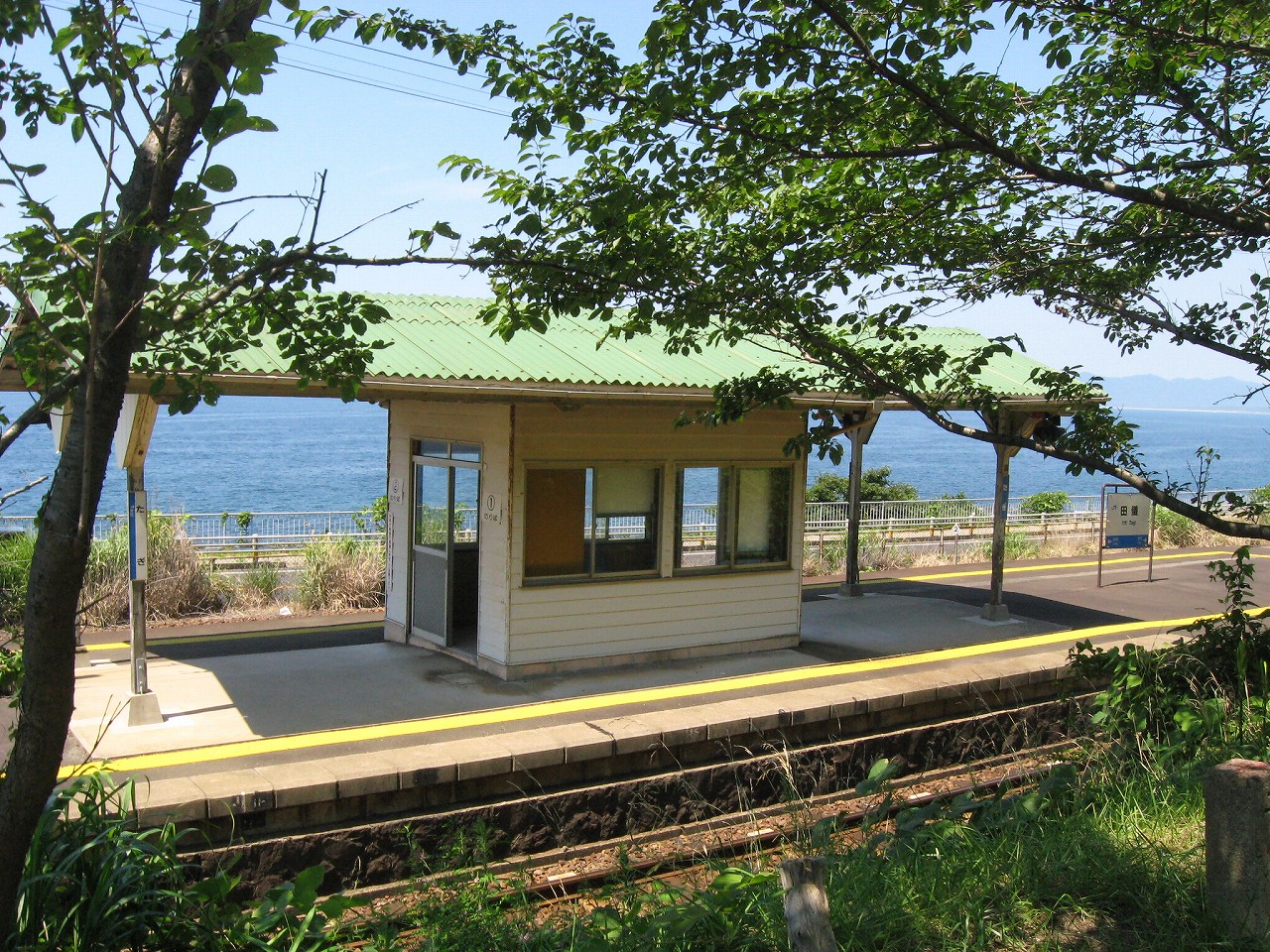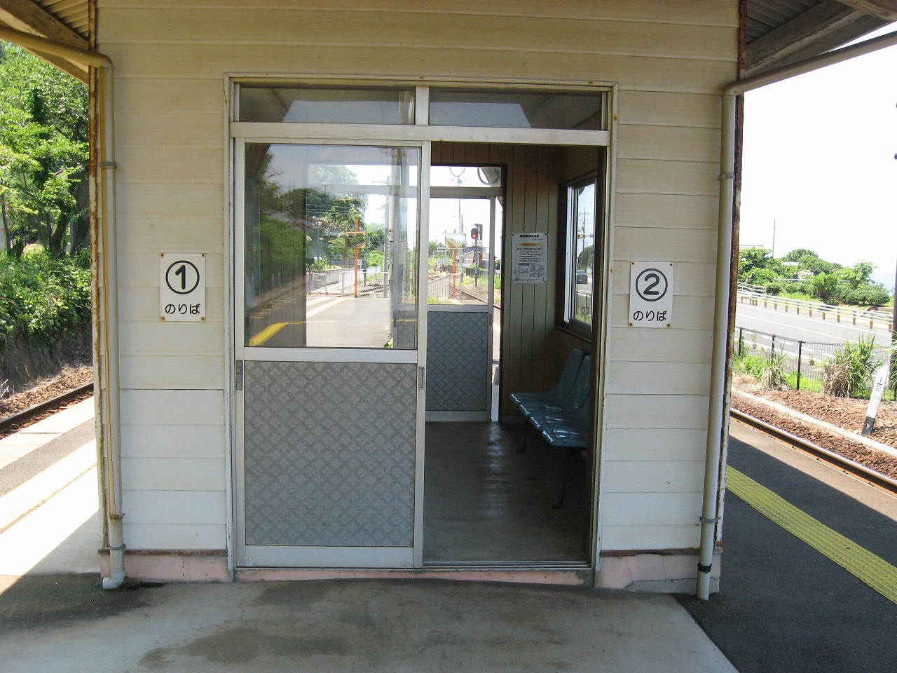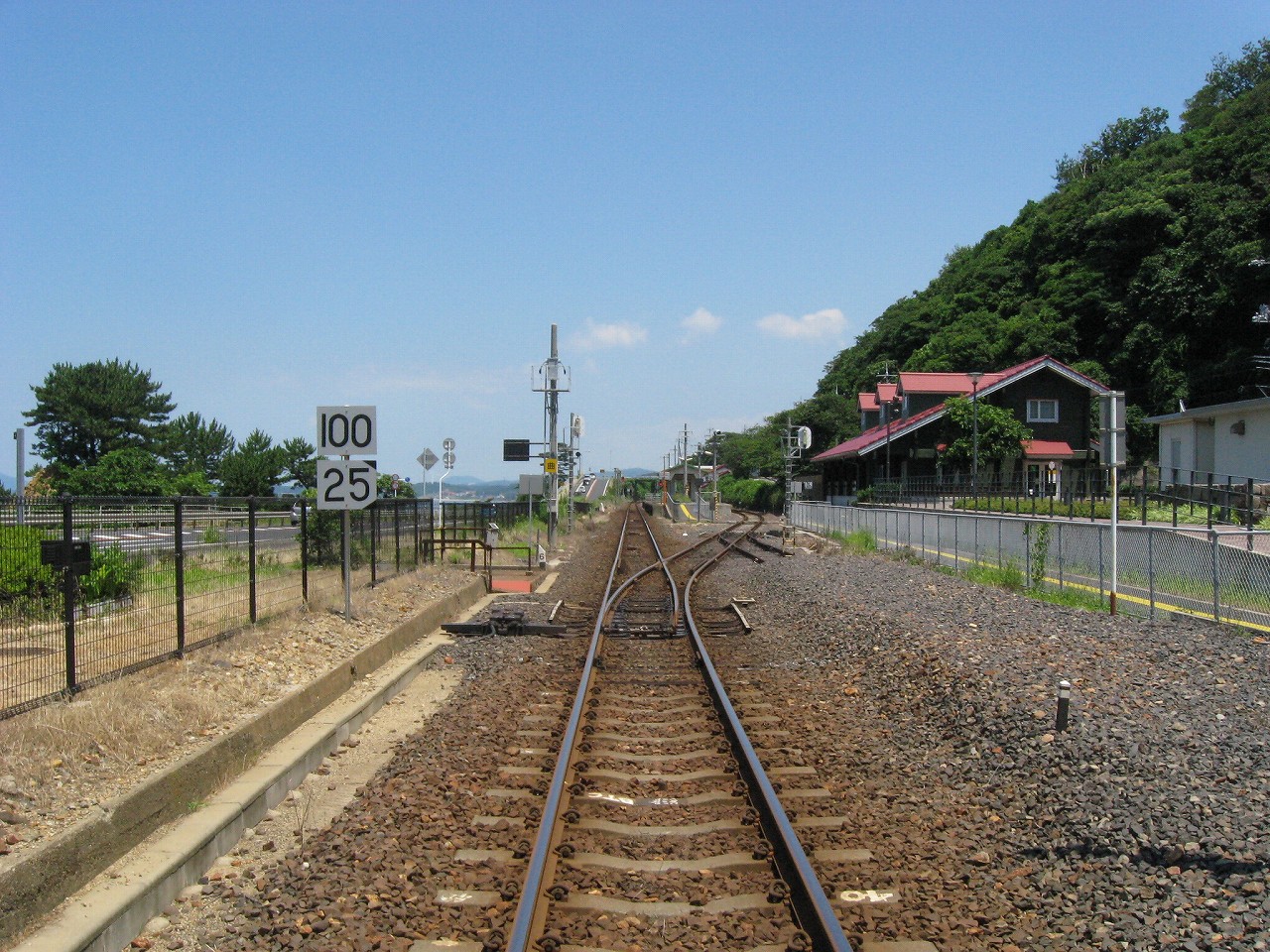 ホームは島式一つで、隣には国道9号か走っているという、なんか断崖の狭い平地をギリギリ使っているという感じだ。なので静かではないし、解放感もある。けれどもホームの待合室は旧駅舎時代のもので、国道に比して、ここだけは全く別の時間が流れているみたいだった。