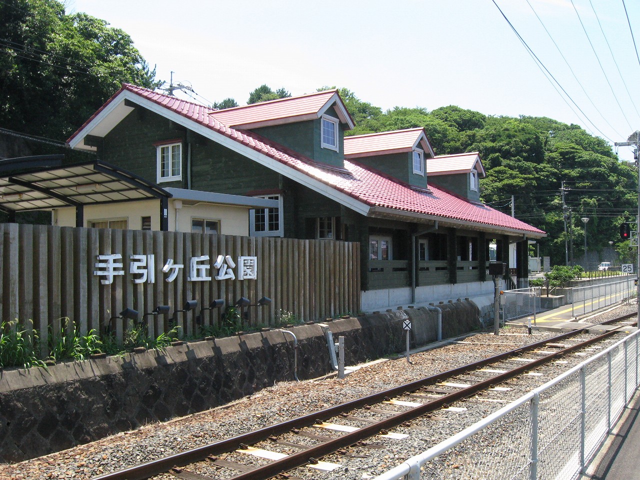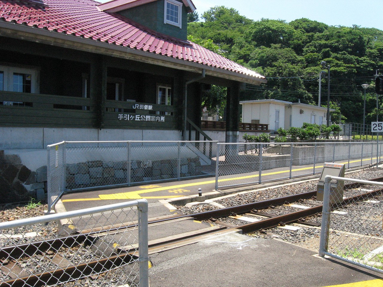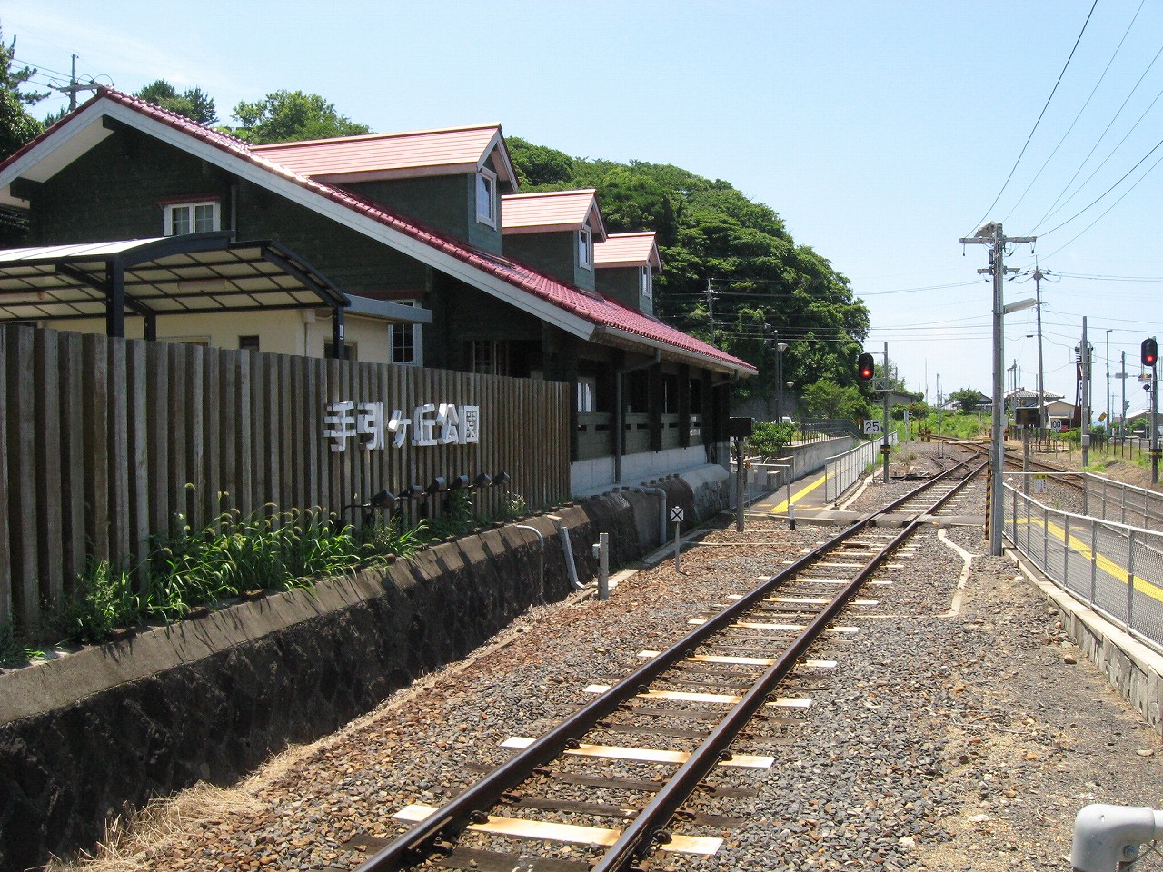 もとかく、ちょっとかわいらしい感じの新駅舎に向かおう。そこには手引ヶ丘公園と書いてあって、そのすぐ前に分岐の線路が走ってるもんだからなんかその公園までトロッコでも走ってるのかと一瞬思った。