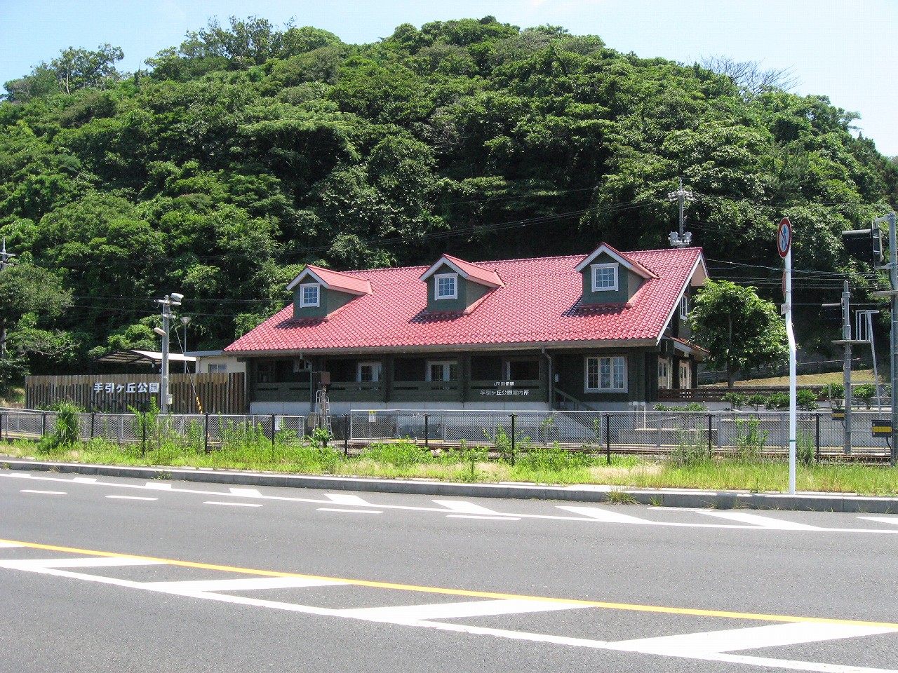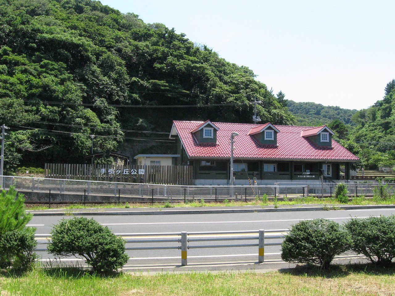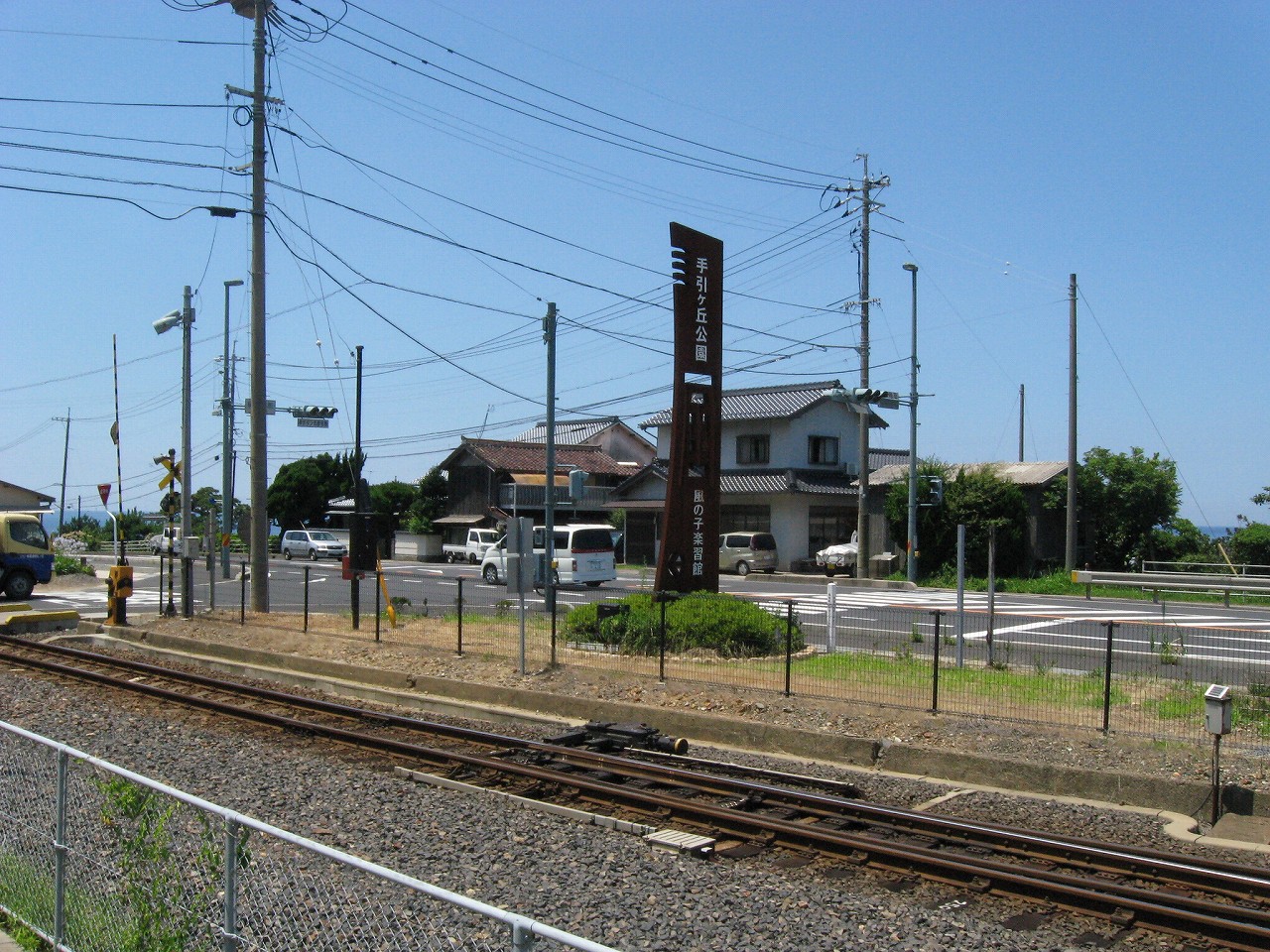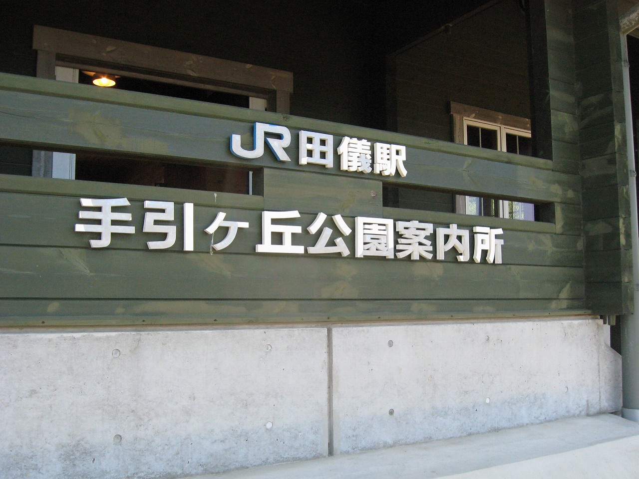 もとかく、ちょっとかわいらしい感じの新駅舎に向かおう。そこには手引ヶ丘公園と書いてあって、そのすぐ前に分岐の線路が走ってるもんだからなんかその公園までトロッコでも走ってるのかと一瞬思った。