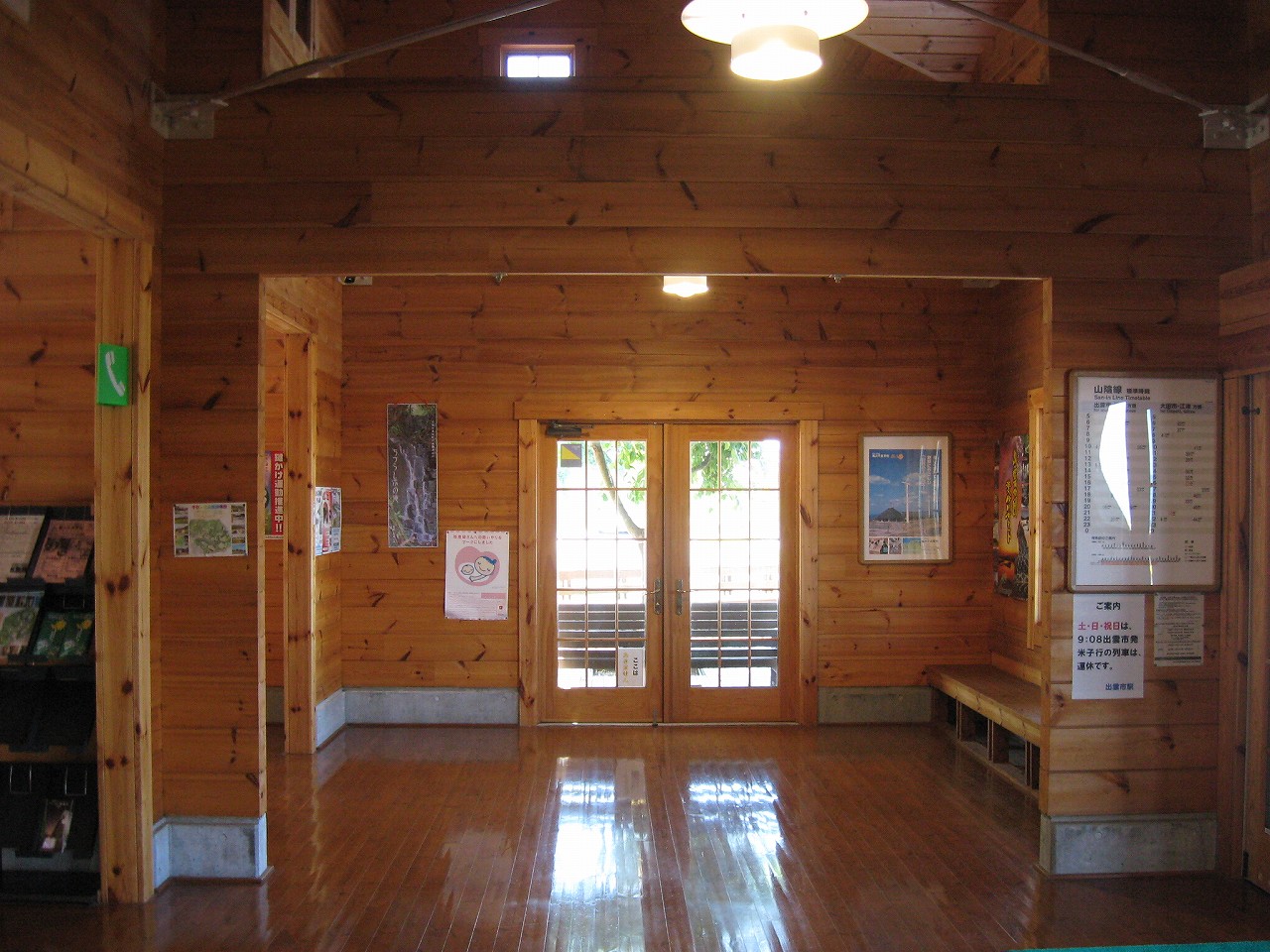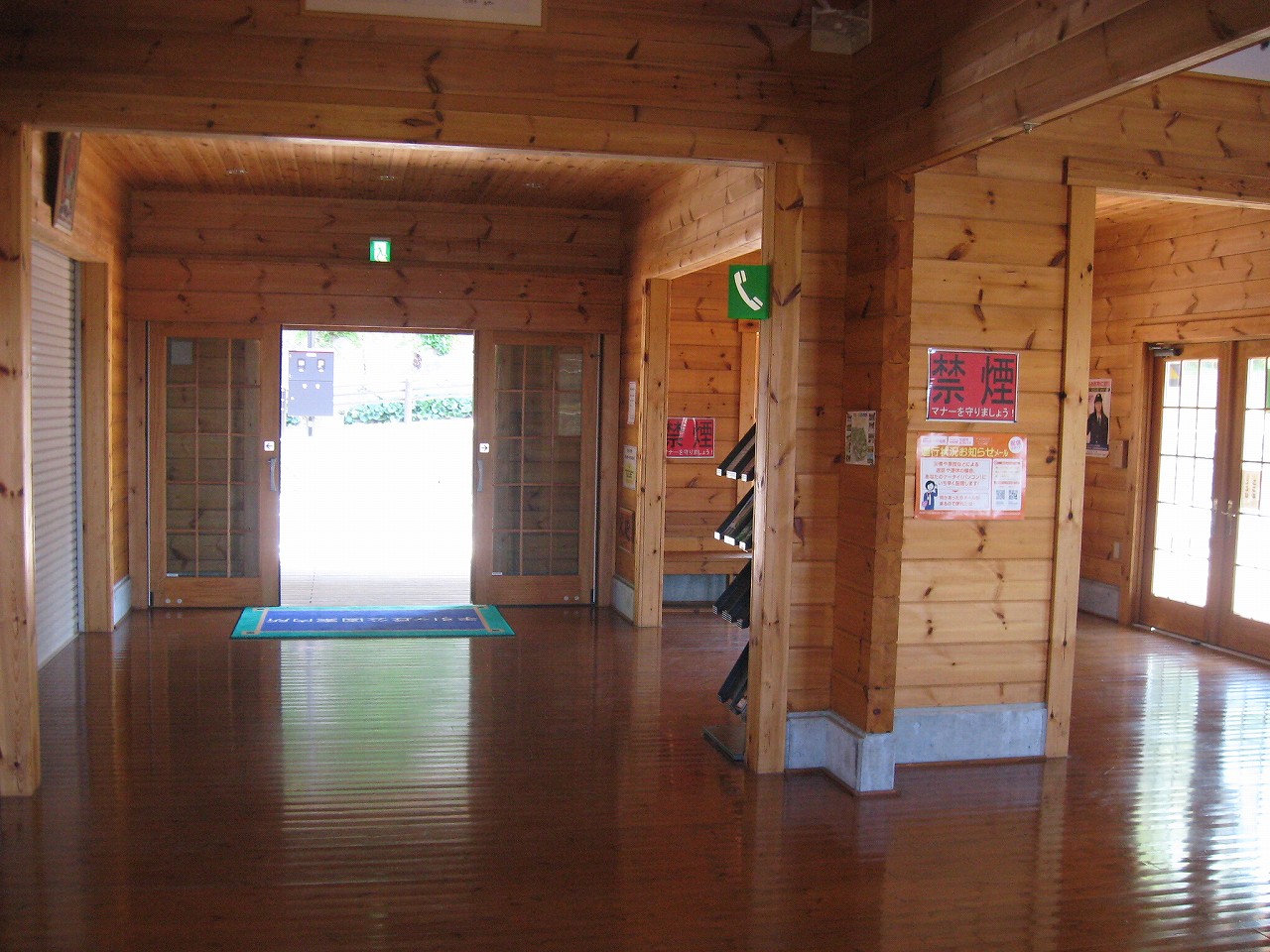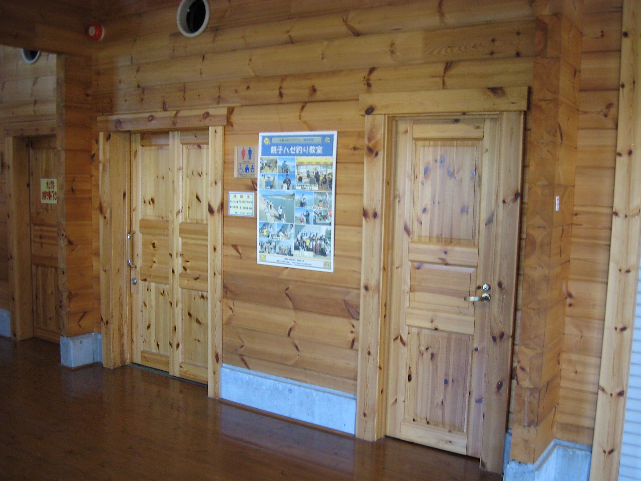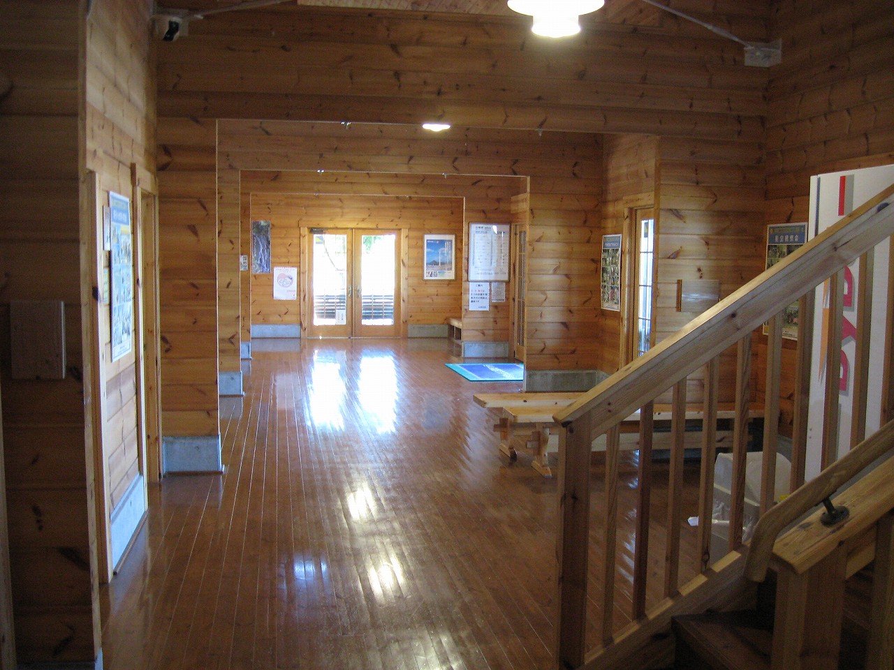 なんか少年自然の家を思い出す感じだ。壁からテーブルから椅子まで、地元の杉を使いに使いまくった宿泊施設だったな~
