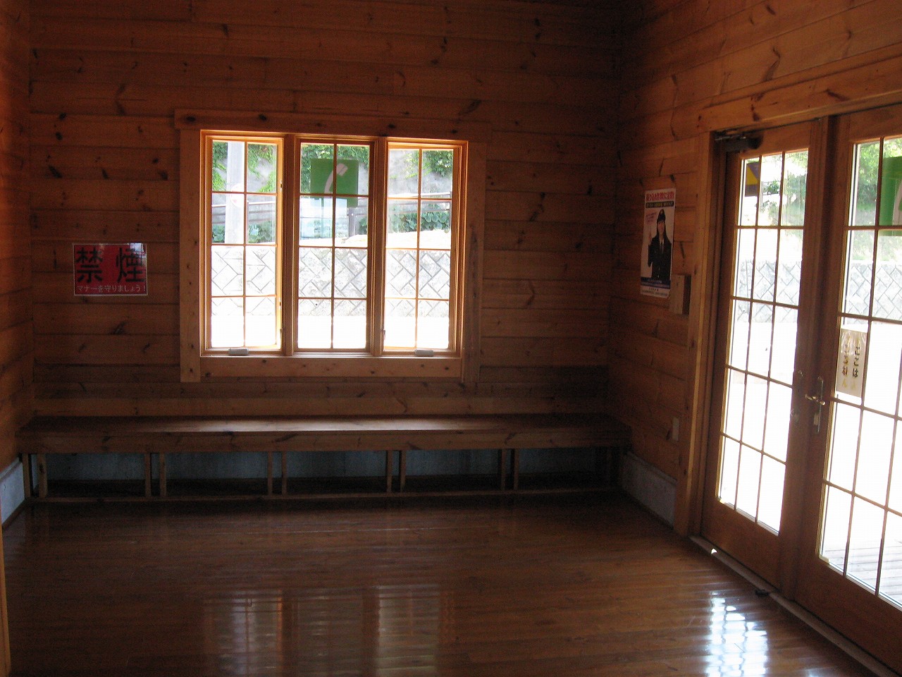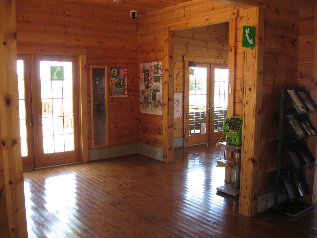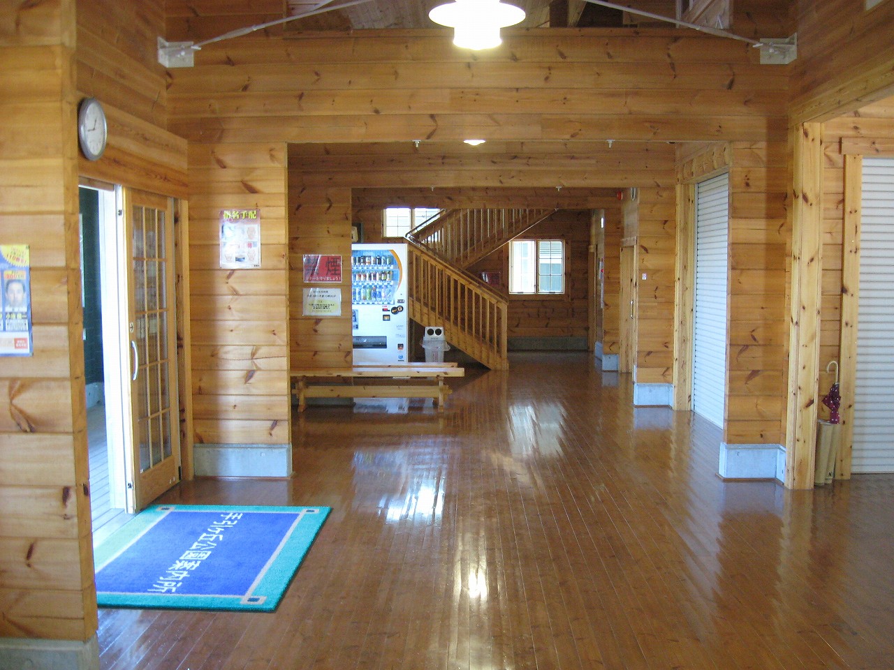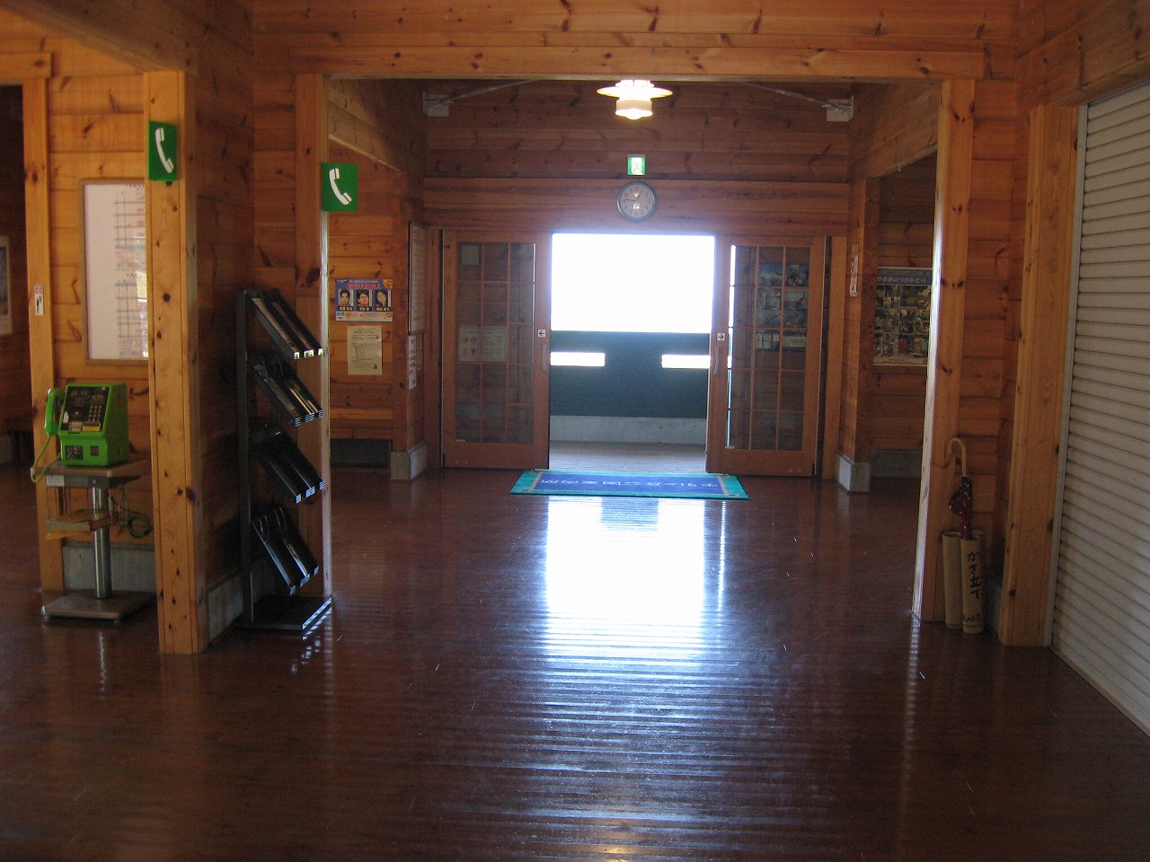 まぁ新手の駅舎かぁ、たいしたことないだろう、と一歩踏み入れると、圧巻だった。徹底的に木造り。SPFなどの針葉樹をバシバシ貼っていて、床もニス塗りのフローリング。