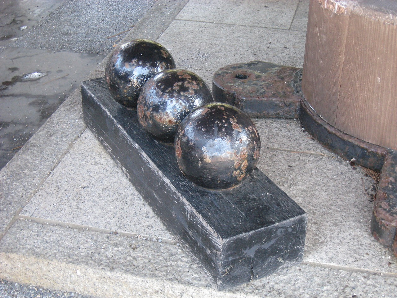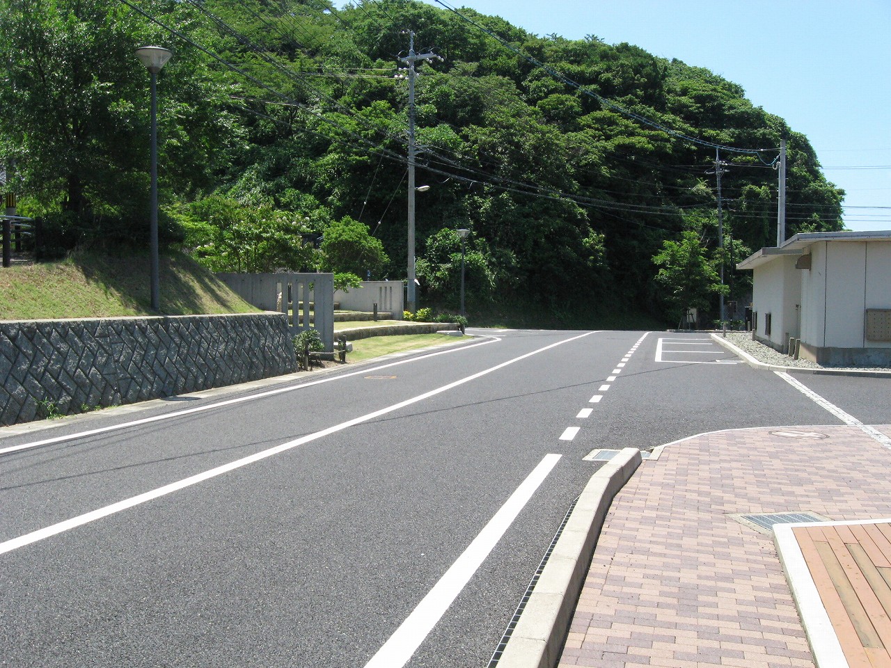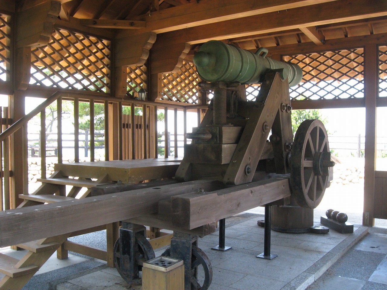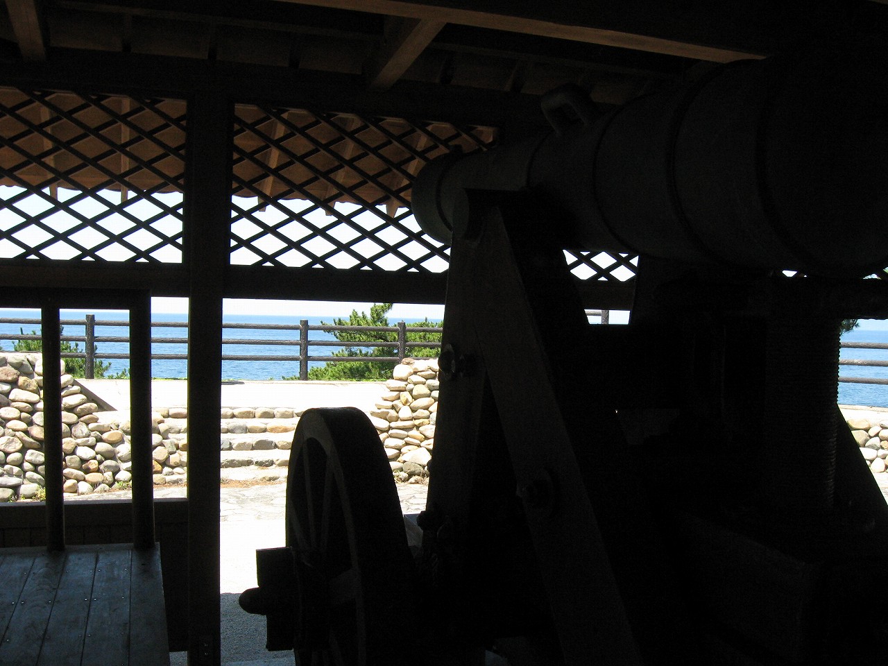 この辺は古代伝説や再現された江戸期の大砲などがあり、ちょっと歴史的な高台だ。これも出雲市の歴史に力を入れた観光化の一環なのかもしれない。にしてもうだるような暑さで、国道のアスファルトの照り返しがすごい。カーブのところは広く舗装してあって、パーキングに。かつては食事処もあったようだ。