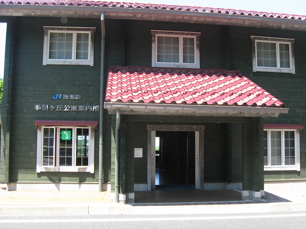 ともかく駅舎にしては造り込みが凄かった。そこで、そういやここ、手引ヶ丘公園案内所、とかなってたな、と。シャッターが閉じてるとこあるけど、開いているときは観光案内とかやっているのだろうか。