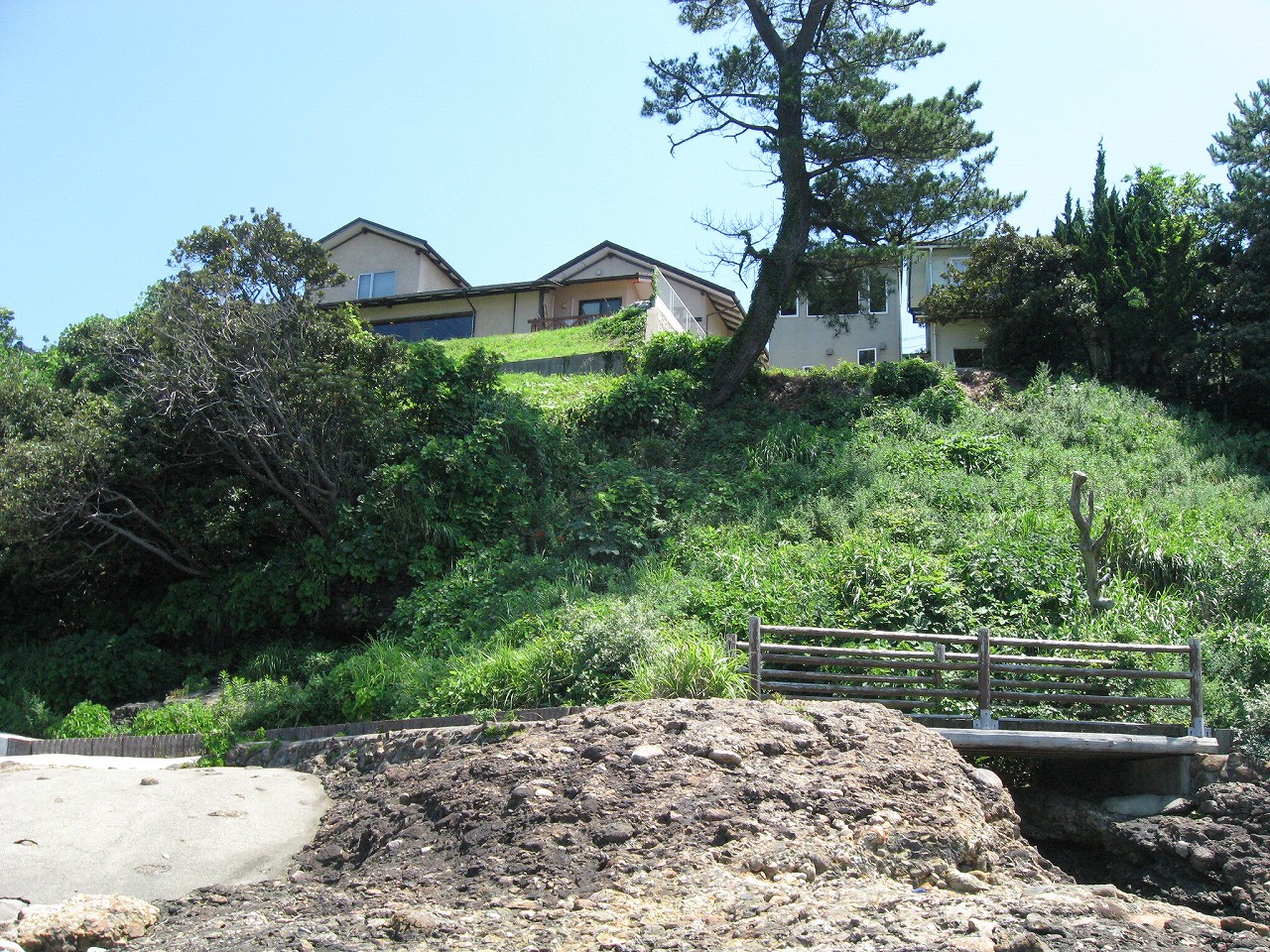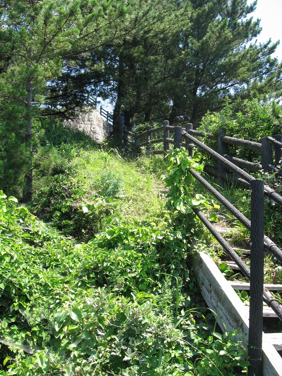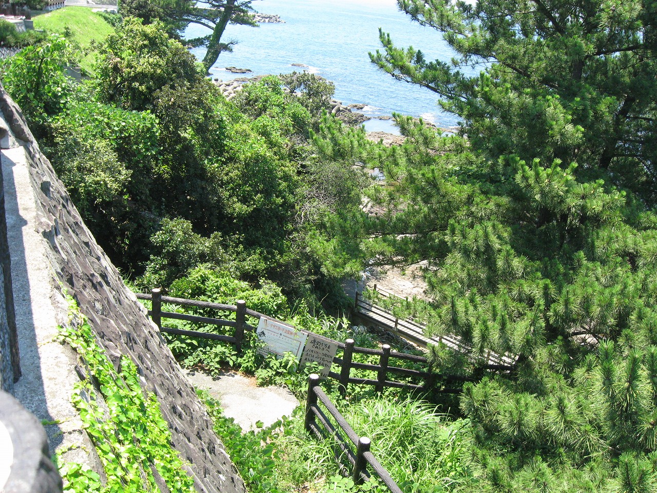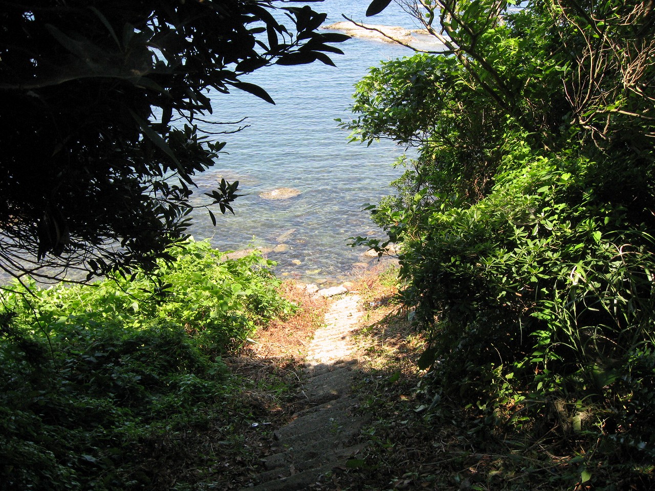予想してなかったが、海岸に下りる階段があり、遊歩道があるようだ。やっぱここてだ下車するのはアタリだったんだな、と。ちょっとでもおもしろい道を歩きたい。