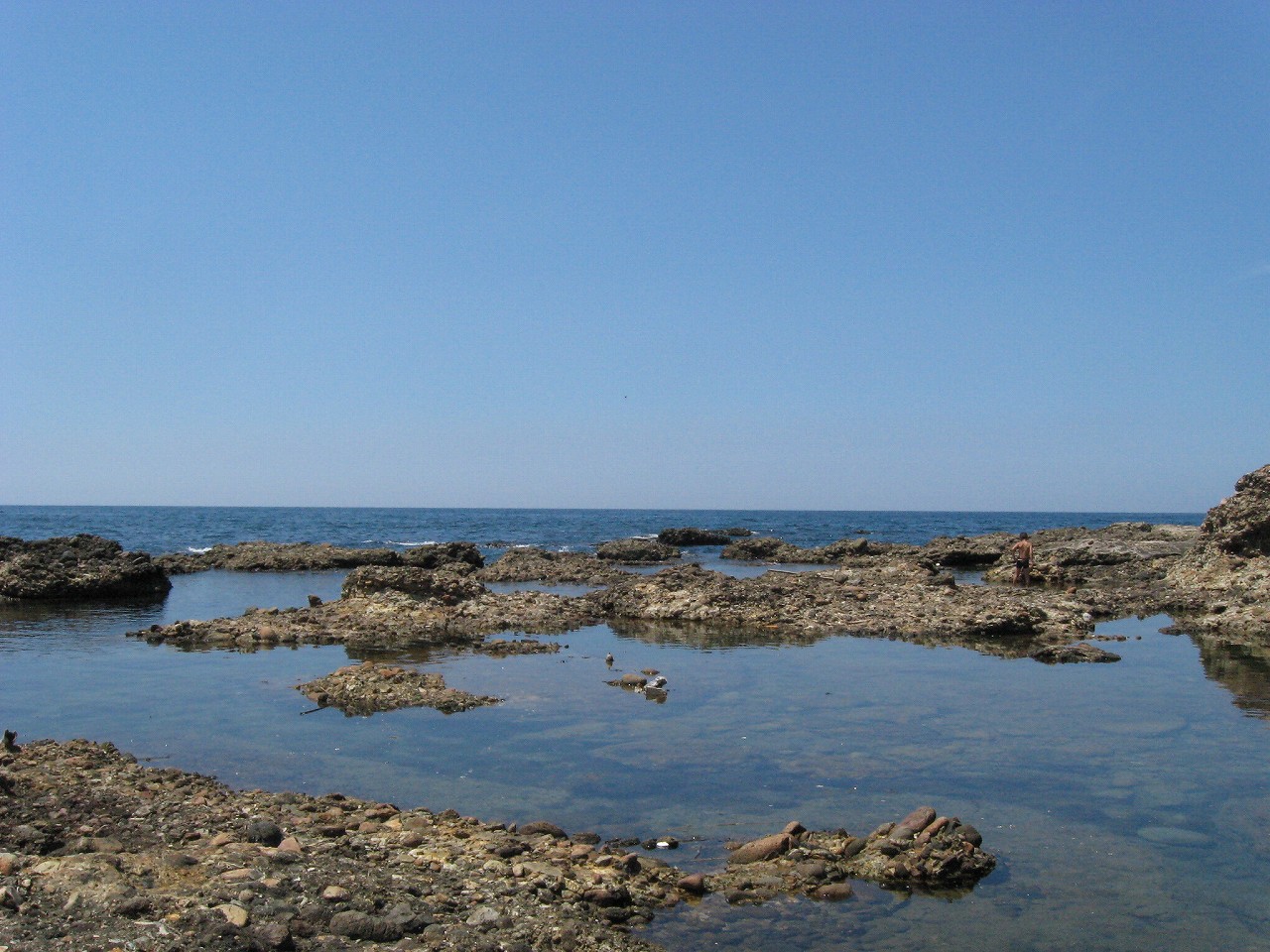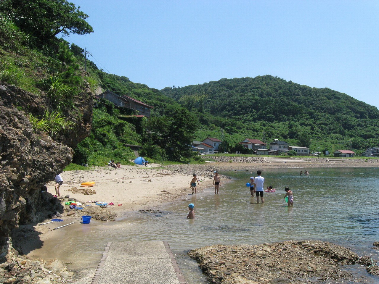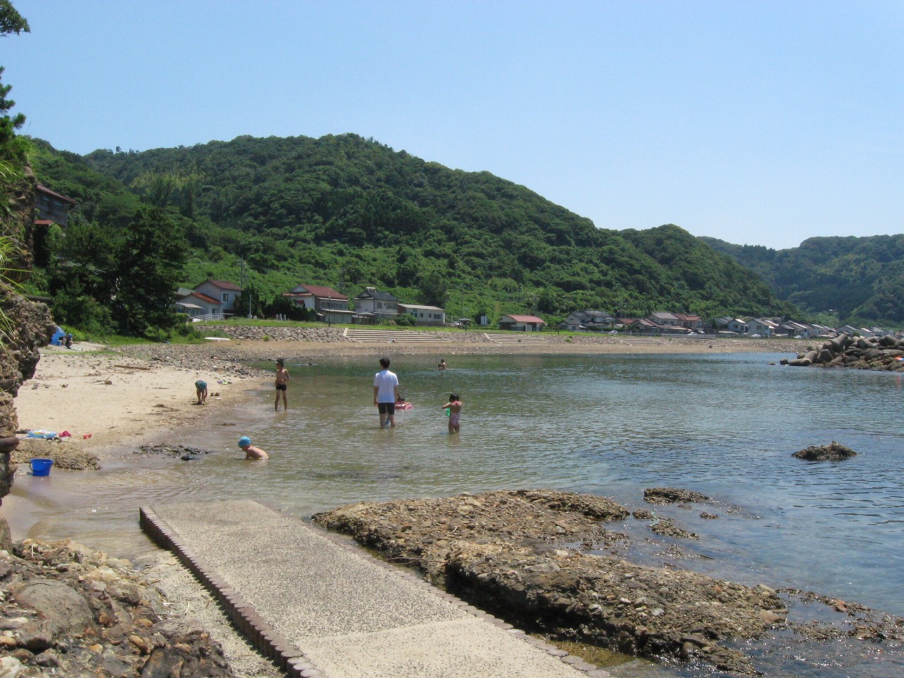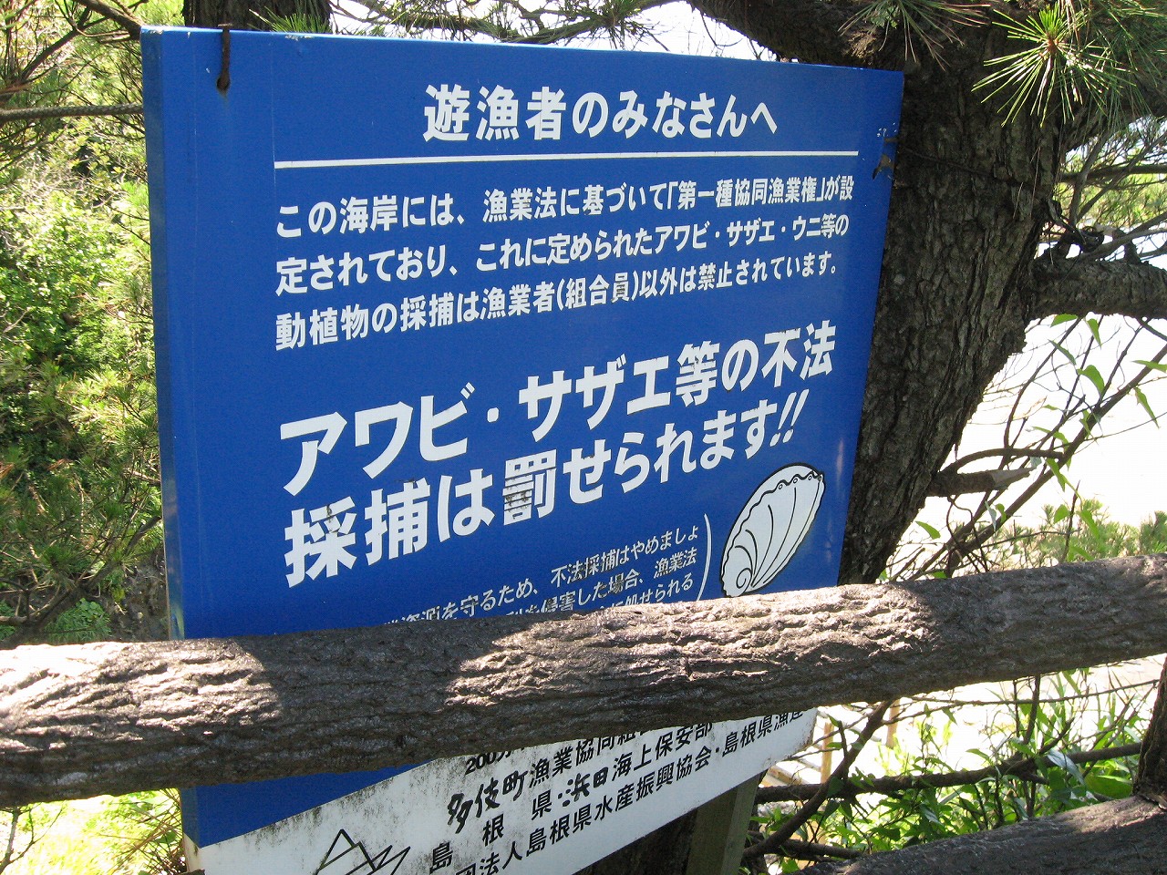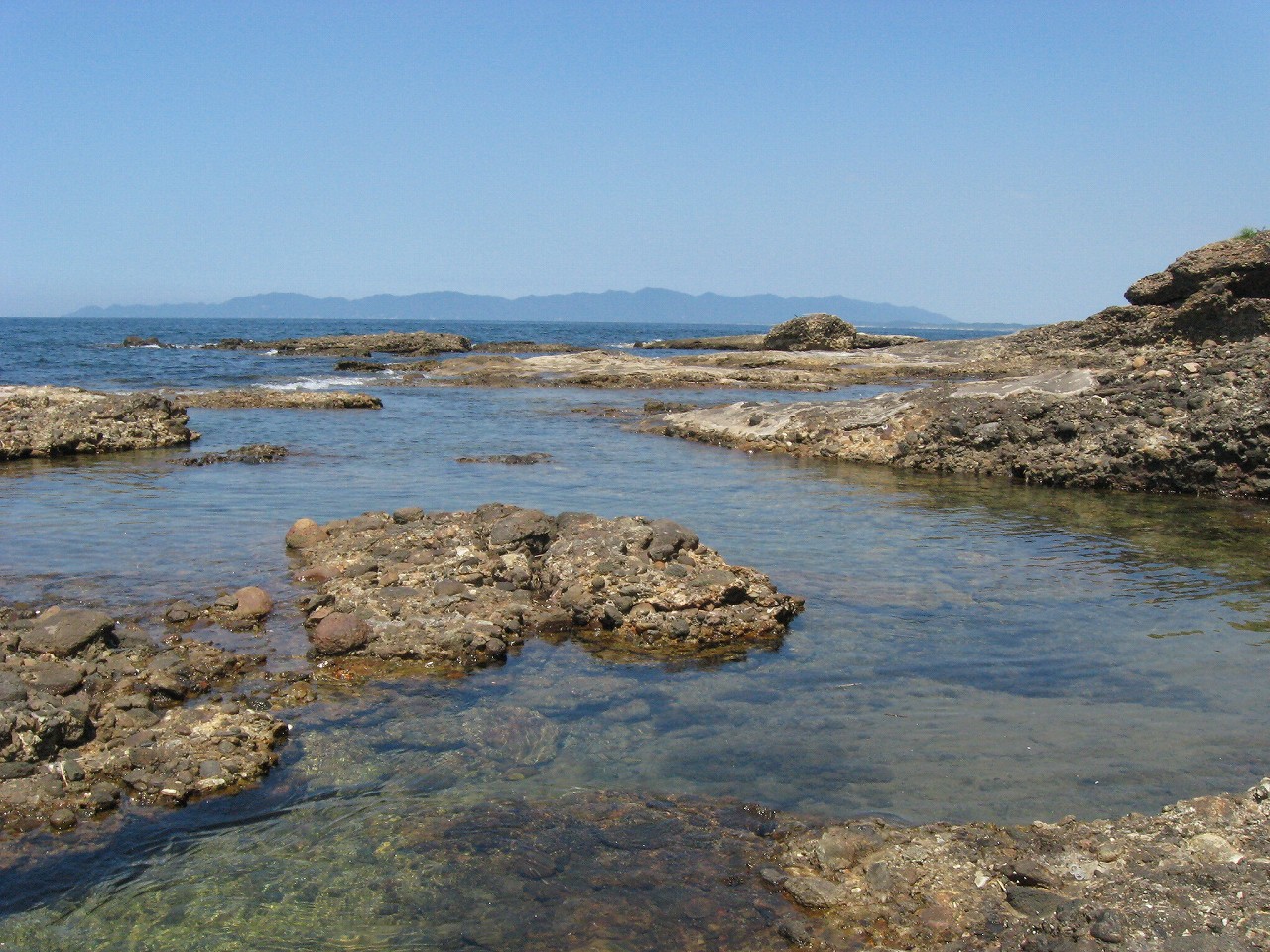 磯にコンクリートの細い舗装路があるのは未だ残る子供心をいつでも刺激してくれる。こんな道を波濤が襲ったら刺激的だろうけど、今は真夏、磯の水はぬるく、先の方では地元の子らが浮き輪浮かべて遊んでいた。山陰の方では、磯の近くの小さな浜での海水浴や、磯潜りというのは結構なされるようで、浦富海岸でもよく見かけた。内陸から来た僕としては、やはりつい、壮大な砂浜を選んでしまうというものだ。