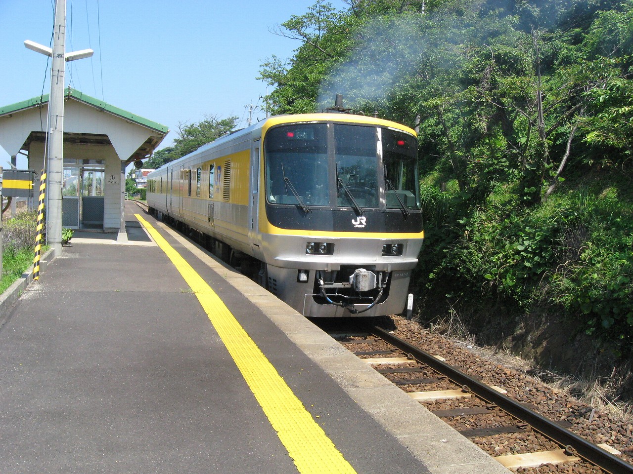 とにかく降りた! すばらしかった。こんな海の眺めのいい駅があったとは! 感無量だ。もっとも、駅舎は新しくなってしまっていたはずだ。しかしそんなことなんてどうでもよくなってしまった。けれども ― やっぱり駅に止まった車内から見たのがやっぱりいちばんだったかな。線路上でちょっと高い位置から見る、それがこんなにも違うものだろうか?