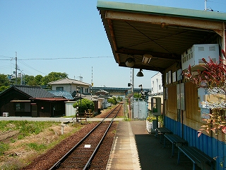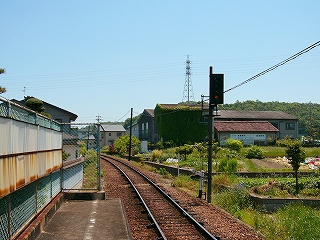 この駅のホームはちょっとした畑を前にしていて開放感はなくはないし、至って普通の民家もあるし、県道もあるのに、なぜか、どことなく、みなぎる飛躍を発揮できない寂しさが漂っていた。なぜだ…。あの一家やあれら素材はわかっているが、それ以外に何が…、それで、ああ、ここはもう三木駅の一つ手前じゃないか。もう一歩で街なんだ。やはり街の片鱗がはじまっていたわけか。逆に、遠くへ行こうと三木から乗ったのに、一つ手前のありきたりなところで降りてしまったような、歯がゆさ、近所旅の何だかんだ言っての虚しさ。