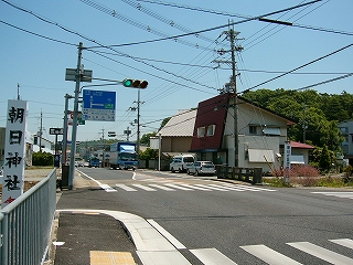 高木駅を離れて歩き続けると、はっきりと市街めいてきた。三木駅は外れにあるといえども、やはり市街余波の流れを汲んでいるようである。しだいに信号も増え、自動車も繁くなり、果てには右手に山が迫って来て、もうここは市街へ急ぐばかりという感じだ。 この三木山は森林公園やホースランドなどが造られる休暇的なものだが、三木市街を南に衛る故郷の山ともなっているのだろう。その緑の下り降る残滓で窮屈な道路に、福井と地名を付けた信号があって、福井がこんな南にあればよいのにと思われた。