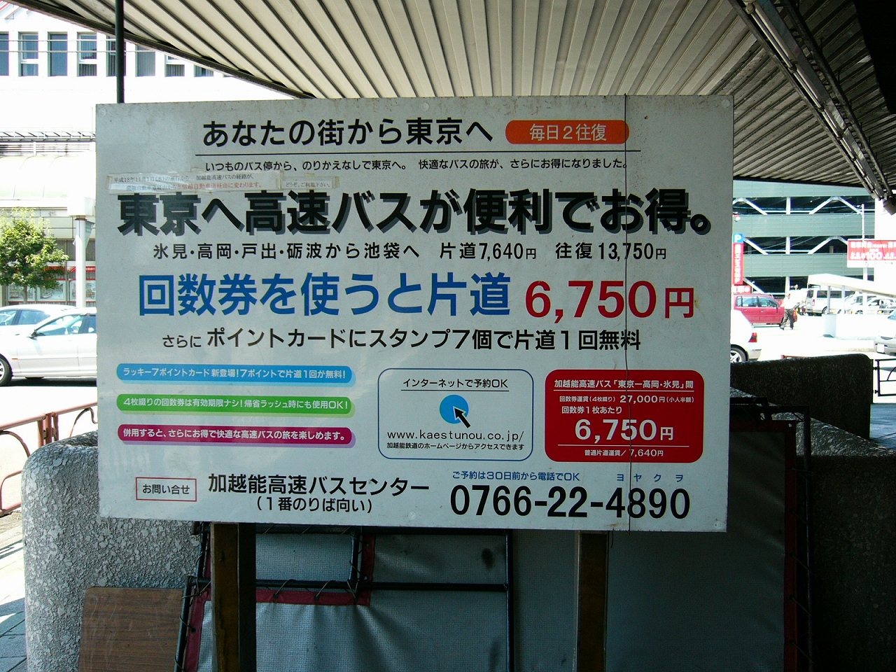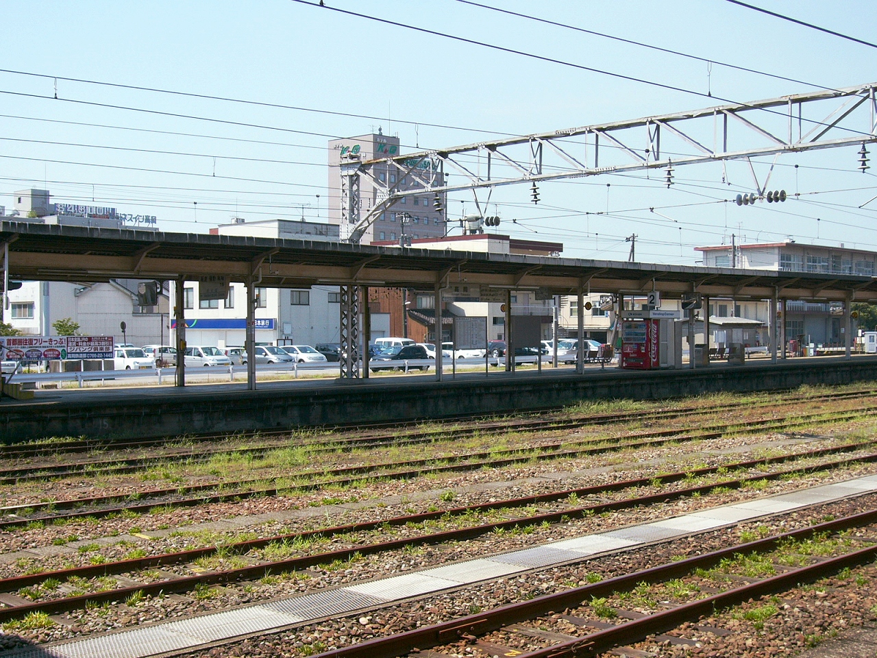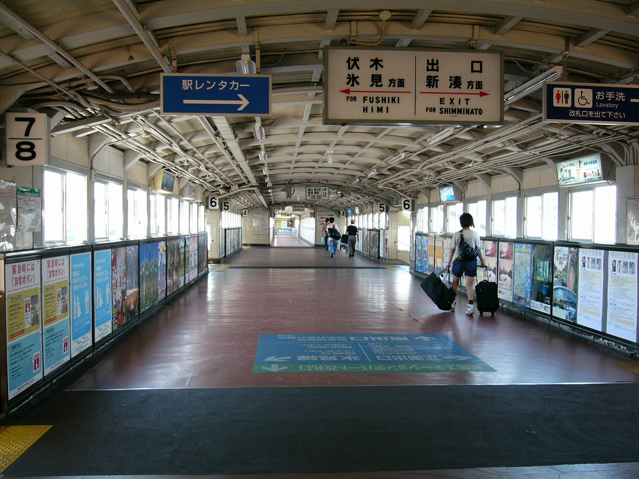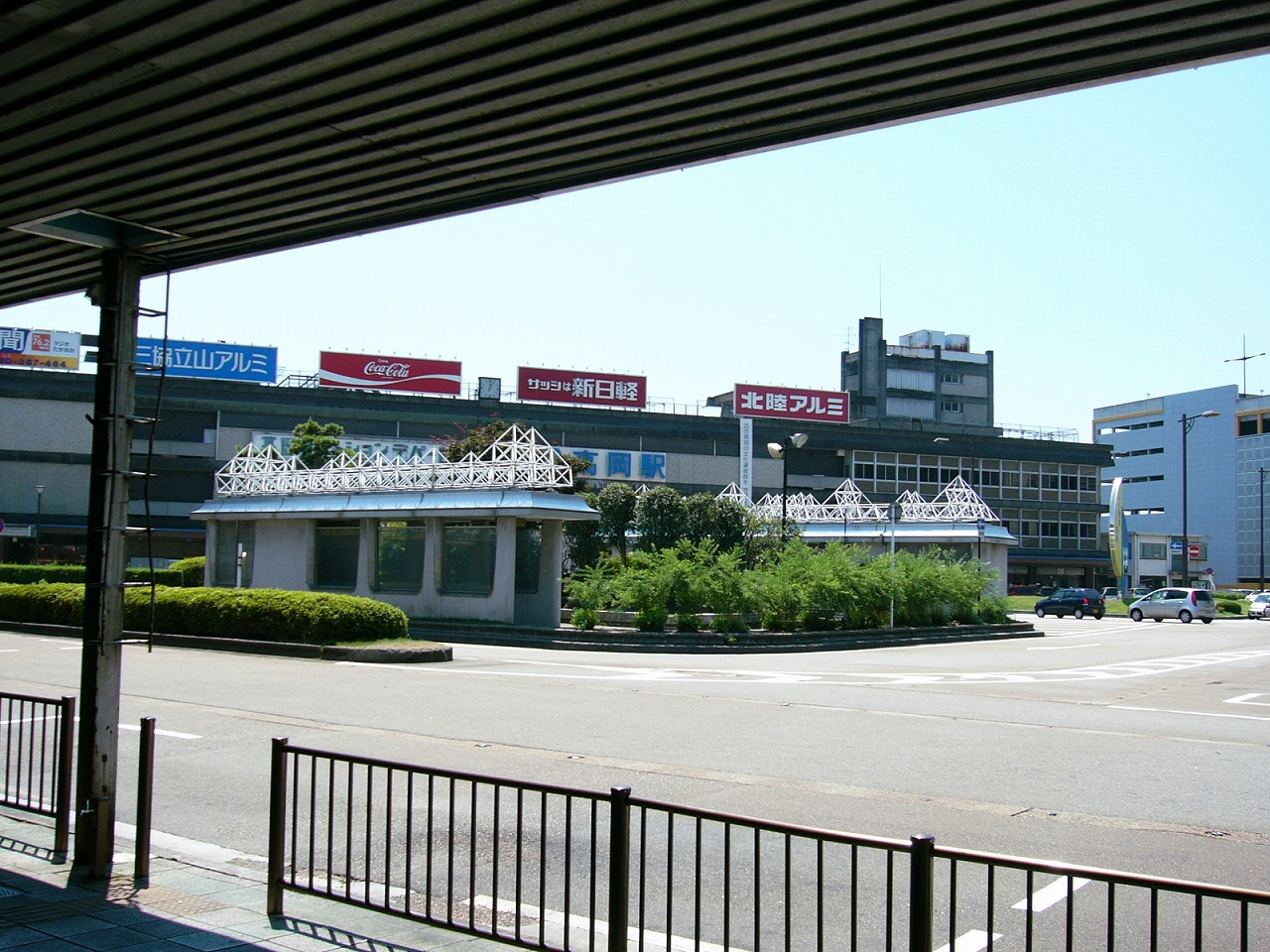 跨線橋内に金沢や富山、米原、大阪の案内はともかく、青森、東京、上野と出ていて、北陸のよさが滲み出ている。高速交通の東海道と違い、ここそのものが旅らしい感じの土地だから、さらに旅が重なるようで、旅の二重構造になっている。