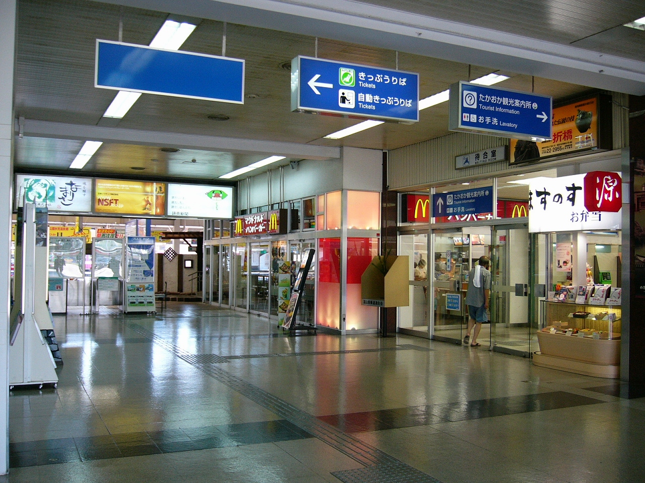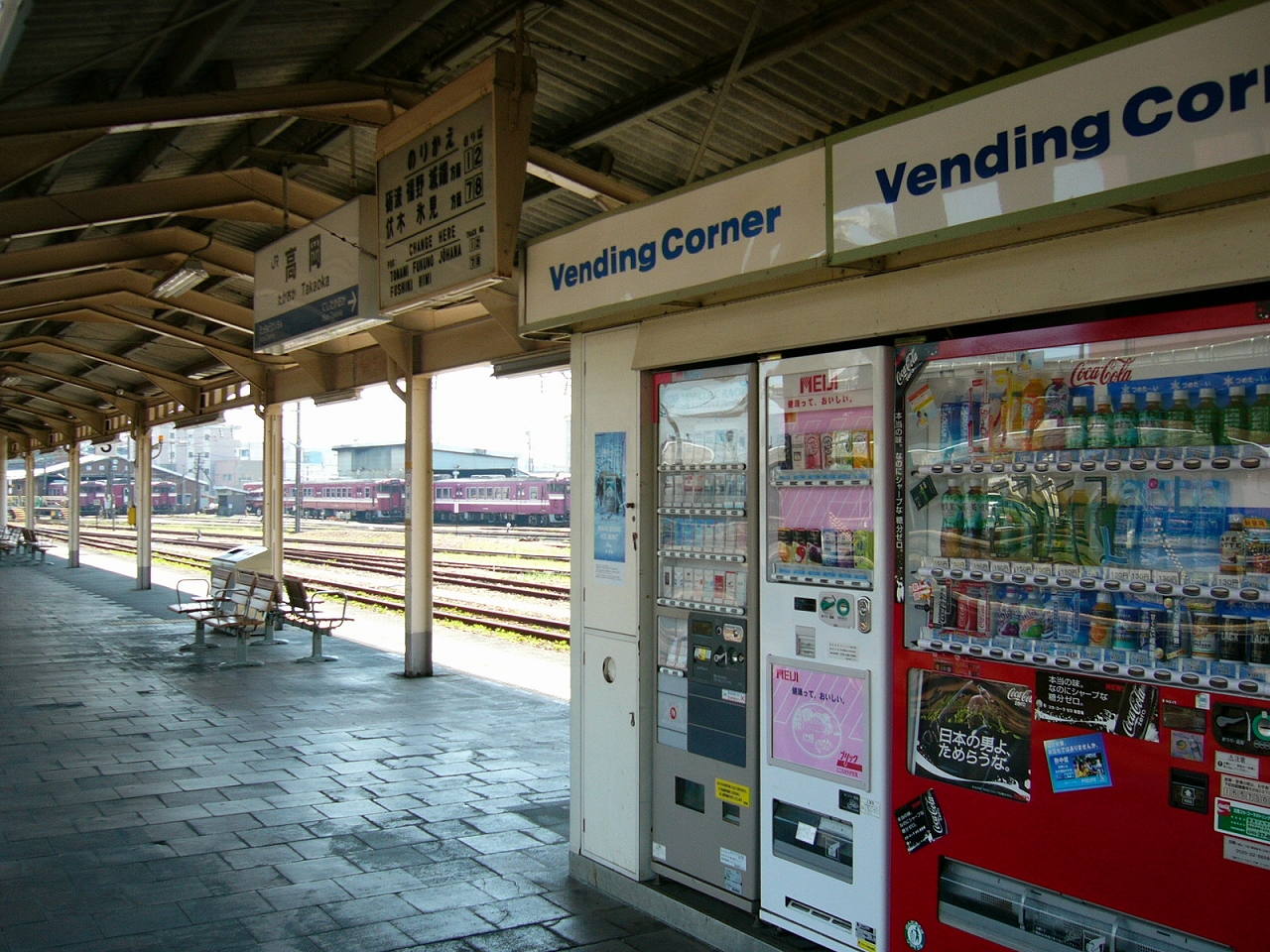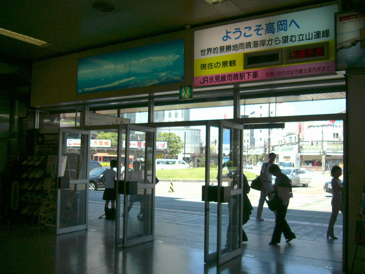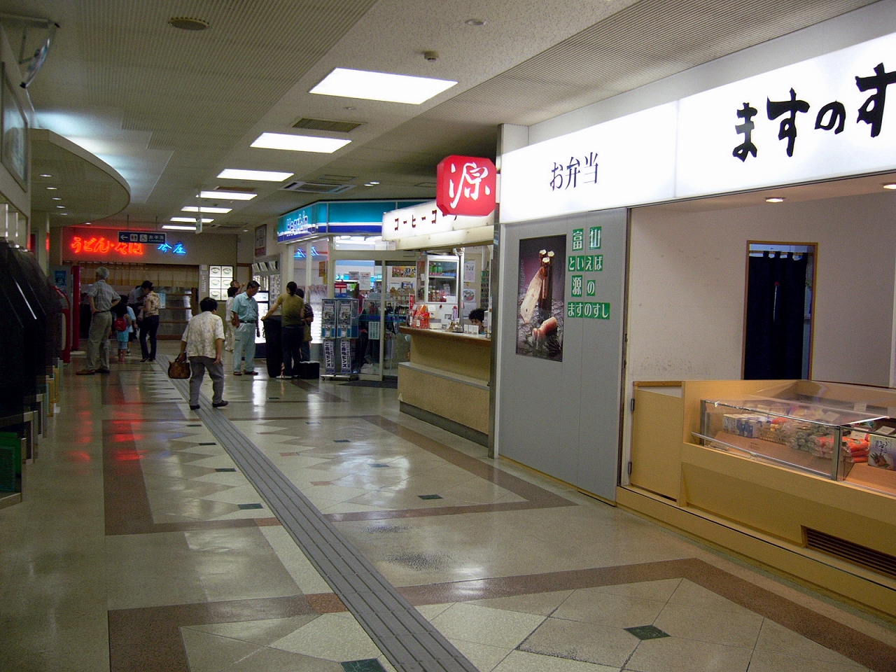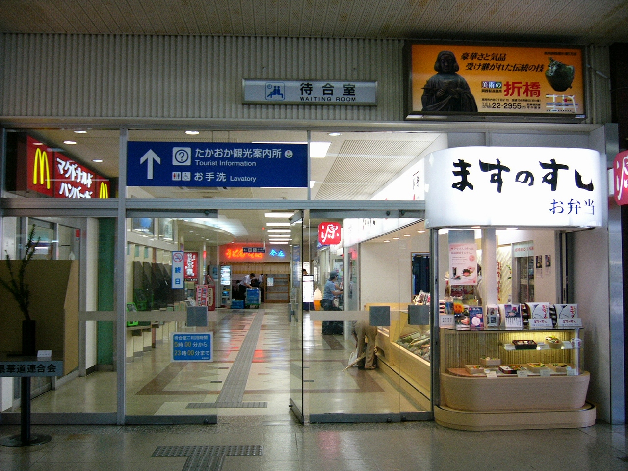数々のラッチの中の一つをくぐり、中に入った。ちょっと暗めだが、白を基調に改装していて、外観の時代とは違っていた。マクドナルドが改札口の真横に入っていて、便利さに瞠目。高岡はやることが土地の割りに新しいのだろうか。CHAOという北陸ではなじみの深い売店も入っているがここは観光客向けで、おみやげ品がいっぱいだった。駅前横町がおもしろい。ほかの駅と違い通路が広く、待合所のほか、駅弁屋やそば屋が軒を連ねている。変わったものにコーヒーコーナーがあった。