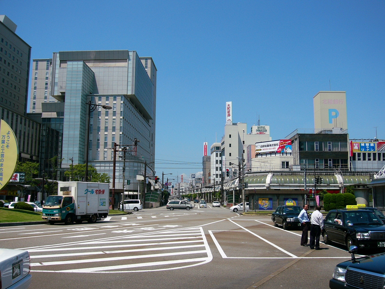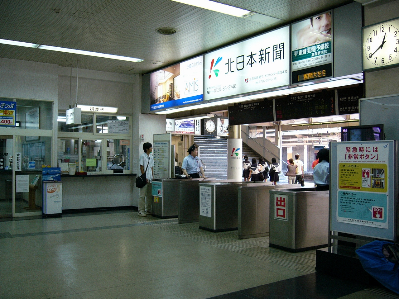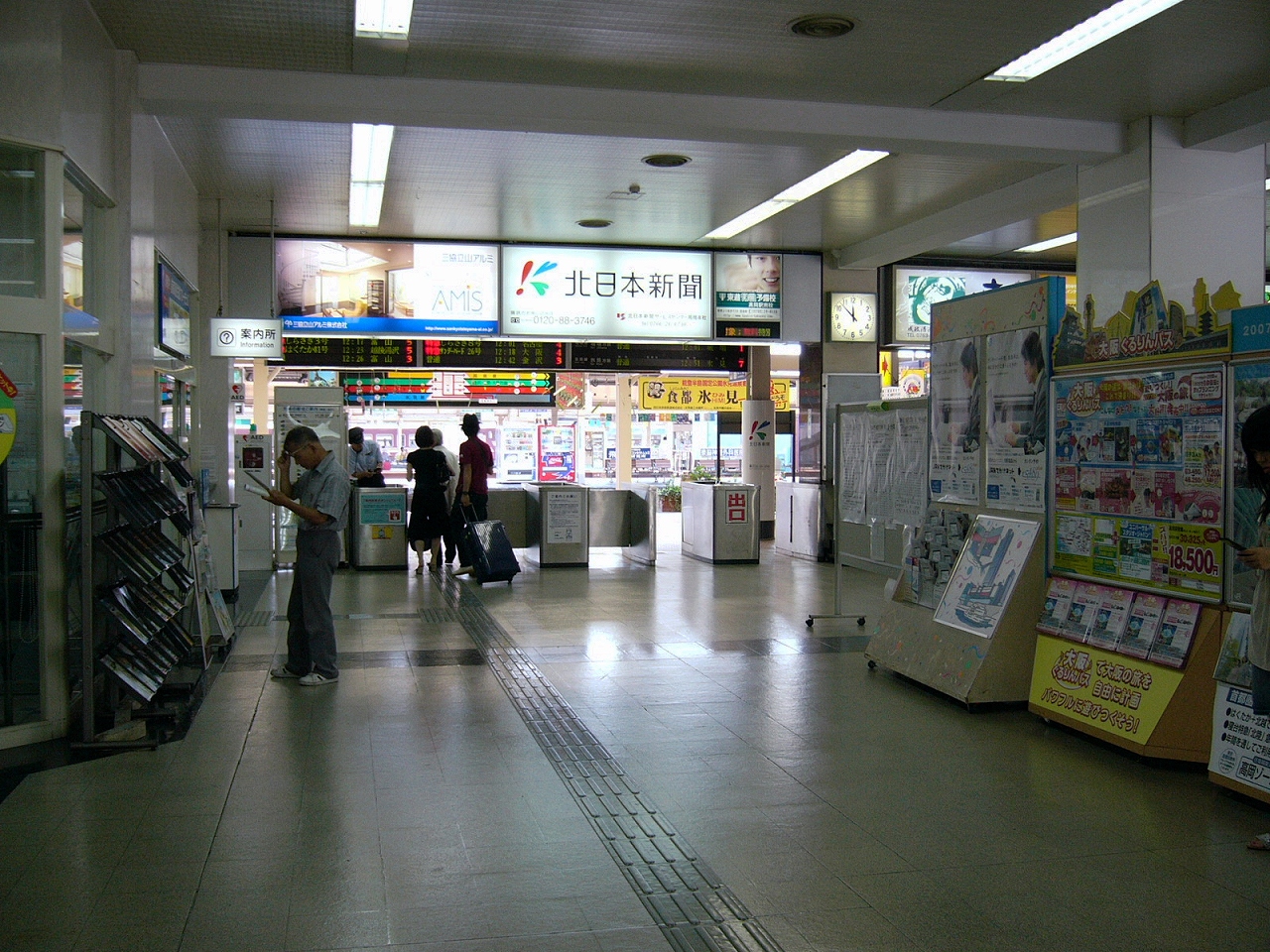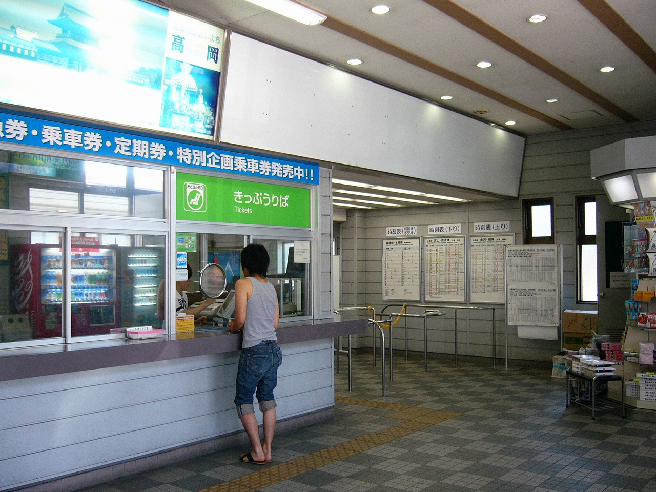 数々のラッチの中の一つをくぐり、中に入った。ちょっと暗めだが、白を基調に改装していて、外観の時代とは違っていた。マクドナルドが改札口の真横に入っていて、便利さに瞠目。高岡はやることが土地の割りに新しいのだろうか。CHAOという北陸ではなじみの深い売店も入っているがここは観光客向けで、おみやげ品がいっぱいだった。駅前横町がおもしろい。ほかの駅と違い通路が広く、待合所のほか、駅弁屋やそば屋が軒を連ねている。変わったものにコーヒーコーナーがあった。