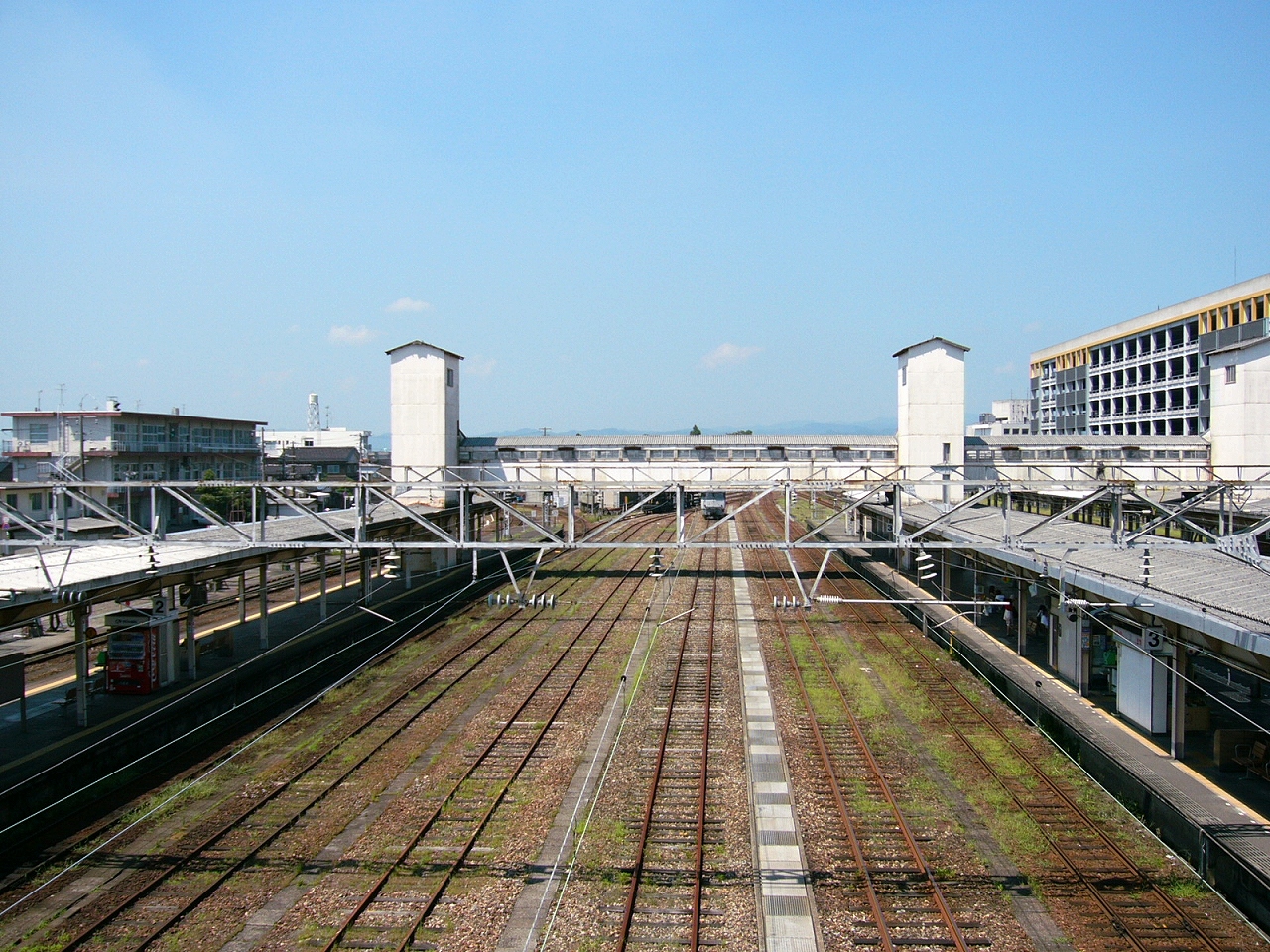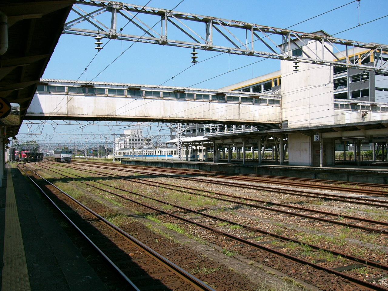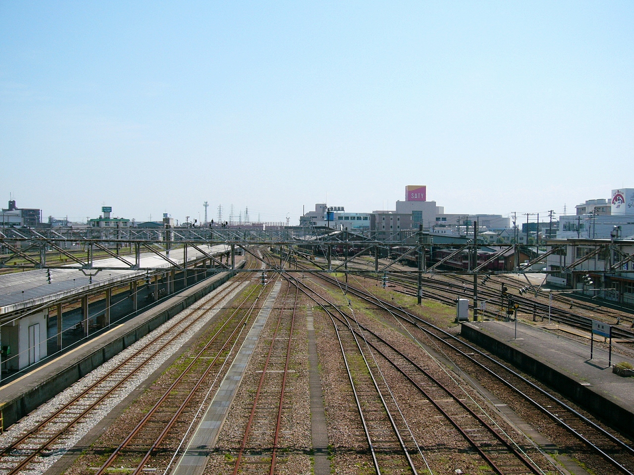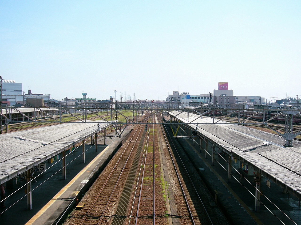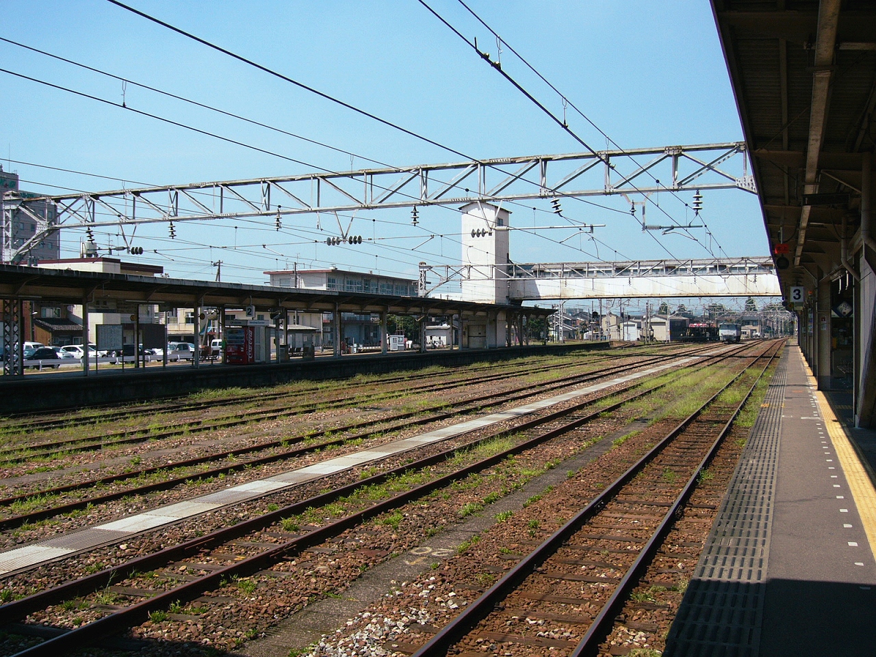 無風な跨線橋からは真夏の高岡駅のヤードが見わたせる。西は金沢へ、東は富山そして魚津、そして日本海。跨線橋でこの待ち時間、どうしようかと迷う自分を見つめて、旅行中であることに、あっと気付き、今は都合つかないがどこへでも行ける自分というものを捕捉できて、一瞬ではあったものの、主体的な自分の姿というのが、何本も並ぶ線路の上にきらめき、羽ばたいた。しかしそれは、ここを行き来する高岡に馴染んでいる人たちにも、現れえるものなのだろう。