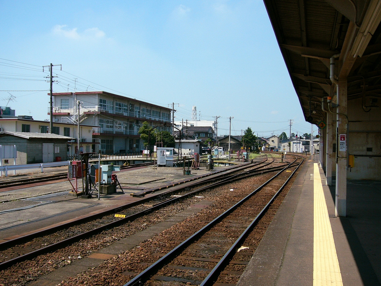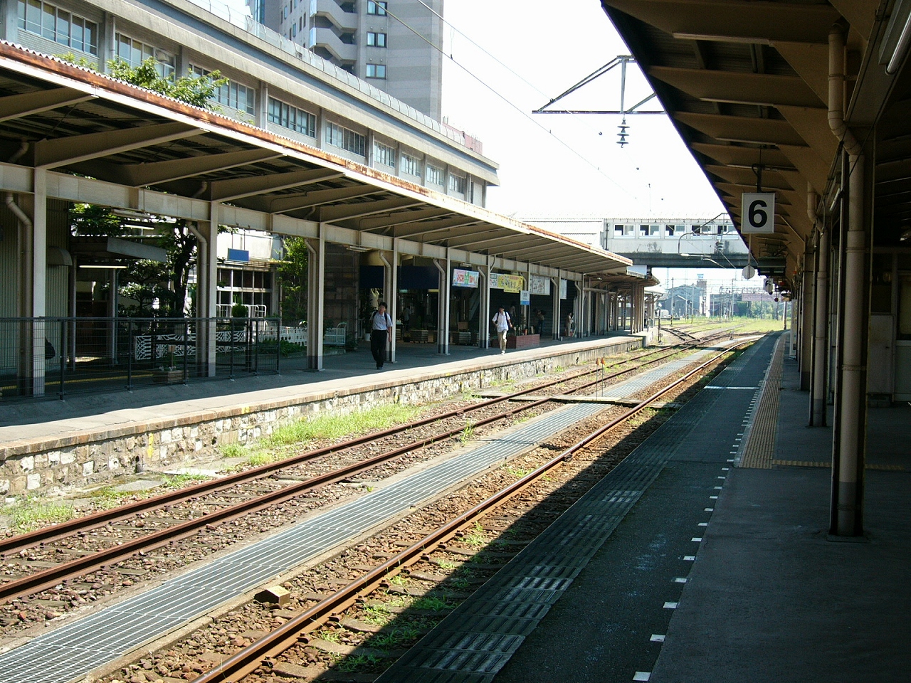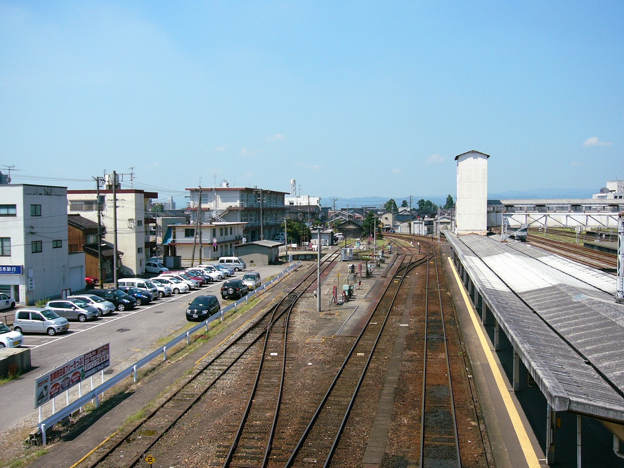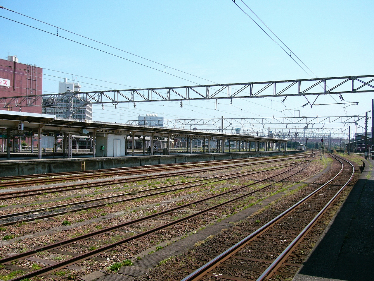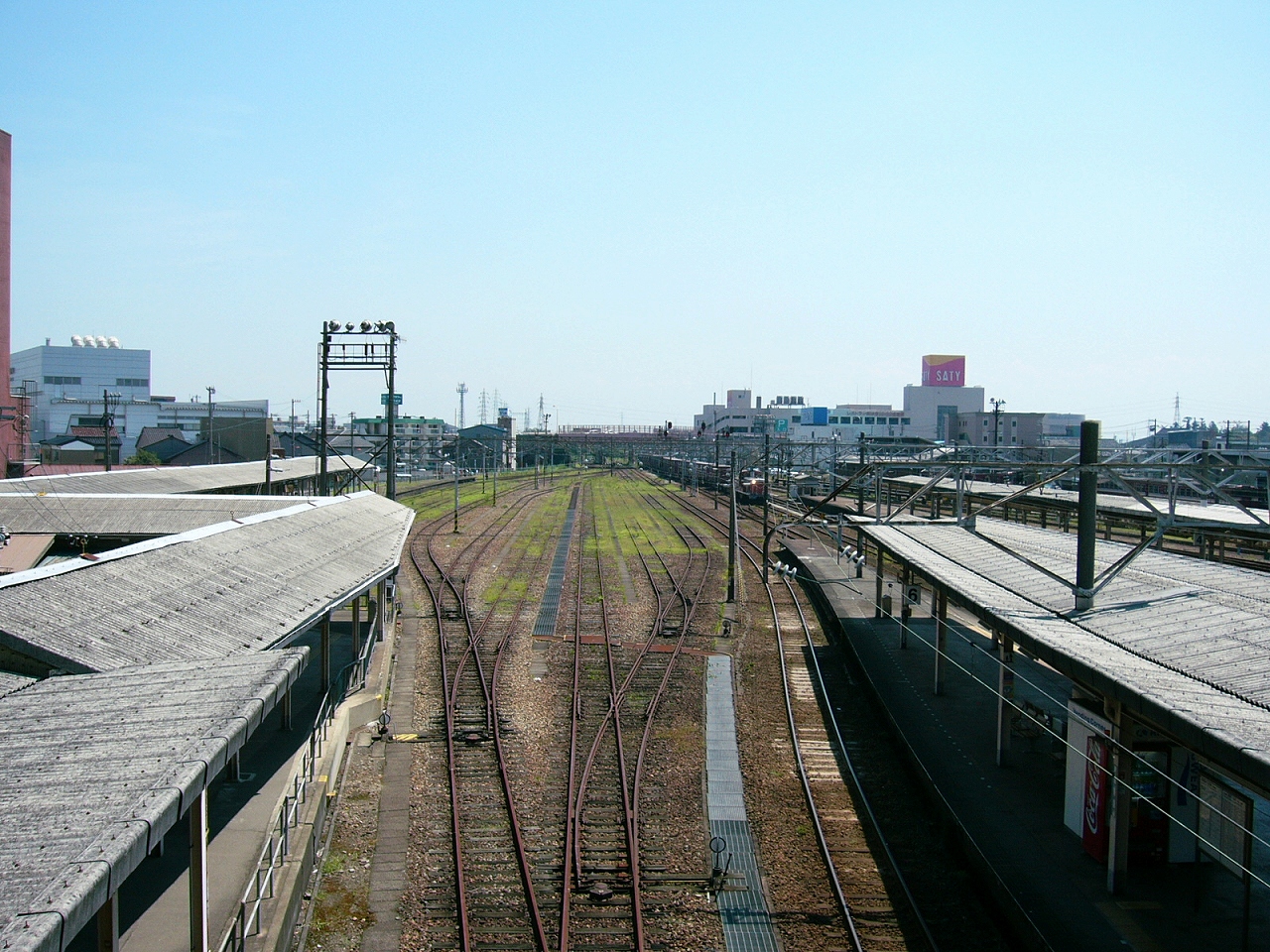 無風な跨線橋からは真夏の高岡駅のヤードが見わたせる。西は金沢へ、東は富山そして魚津、そして日本海。跨線橋でこの待ち時間、どうしようかと迷う自分を見つめて、旅行中であることに、あっと気付き、今は都合つかないがどこへでも行ける自分というものを捕捉できて、一瞬ではあったものの、主体的な自分の姿というのが、何本も並ぶ線路の上にきらめき、羽ばたいた。しかしそれは、ここを行き来する高岡に馴染んでいる人たちにも、現れえるものなのだろう。
