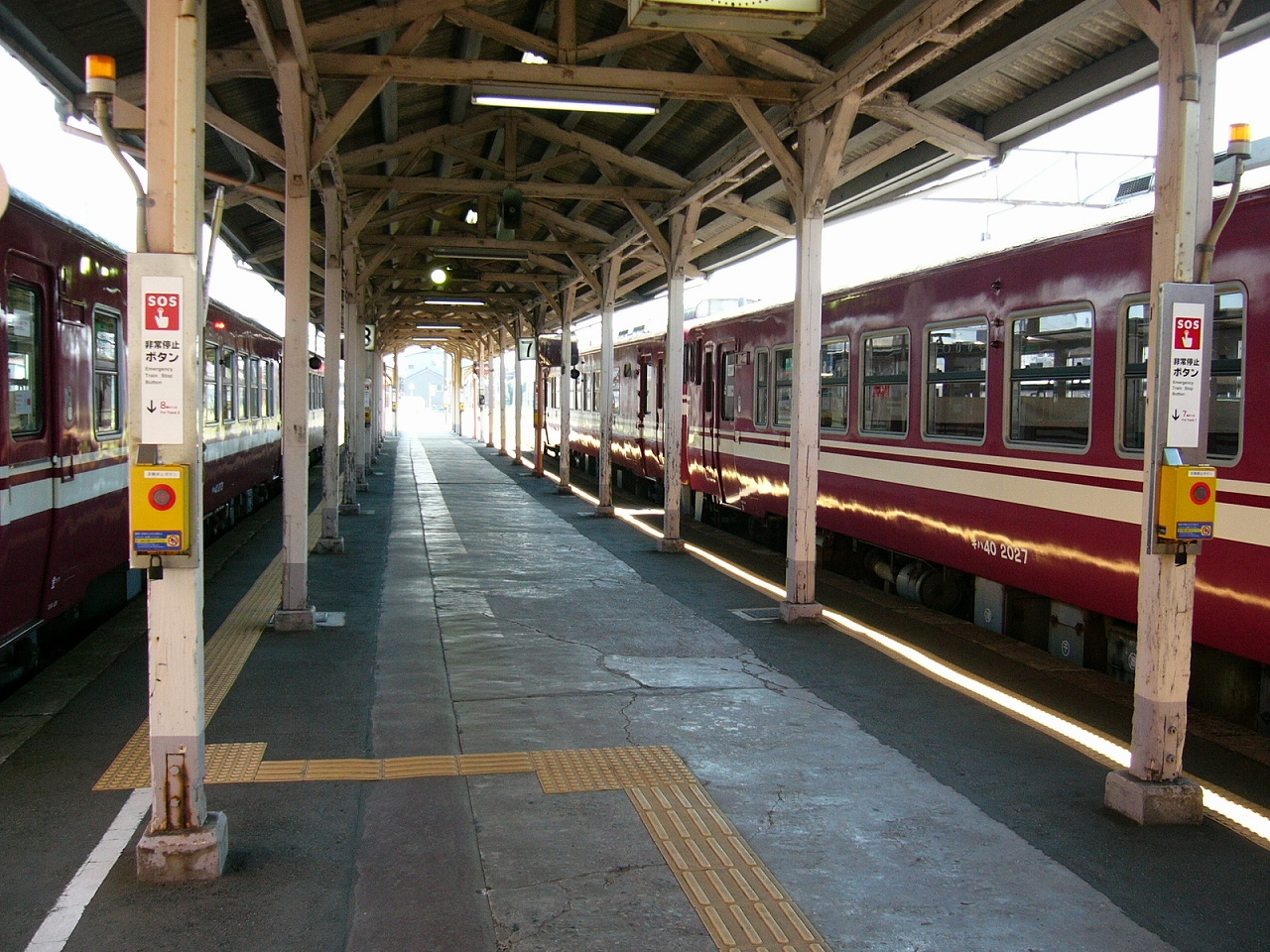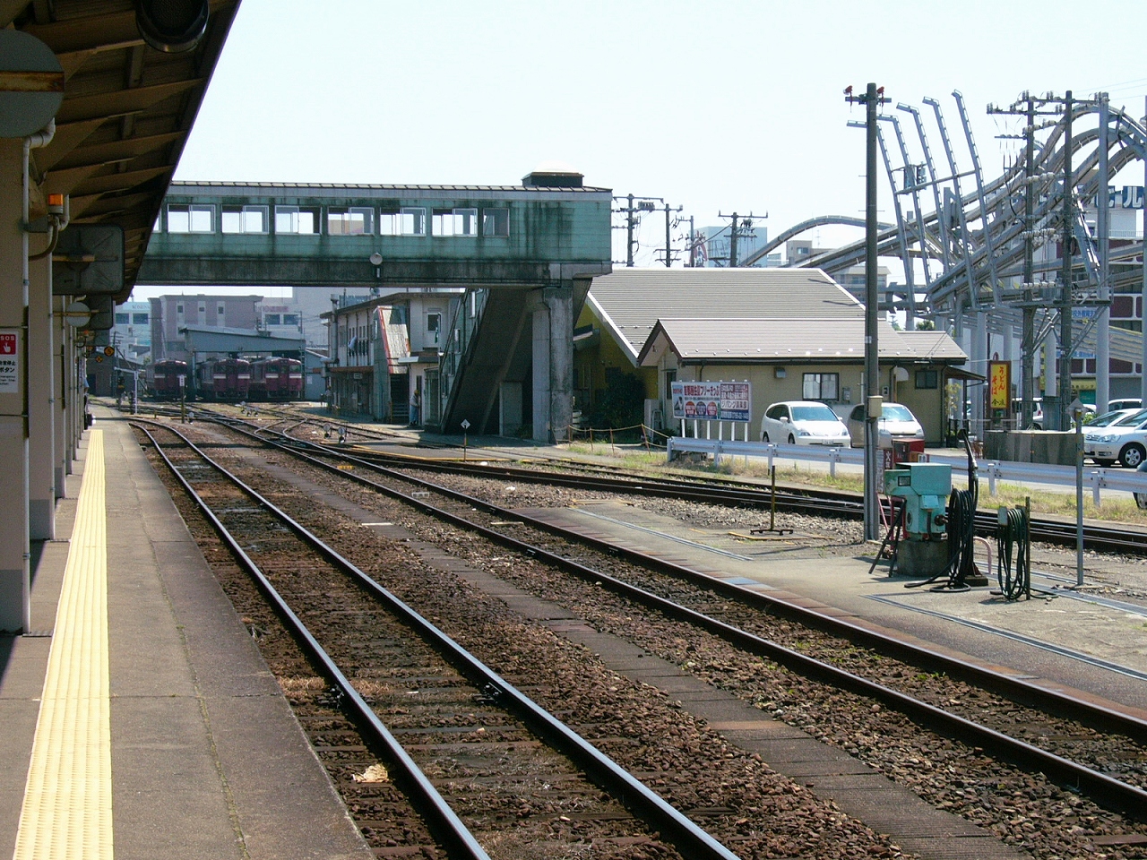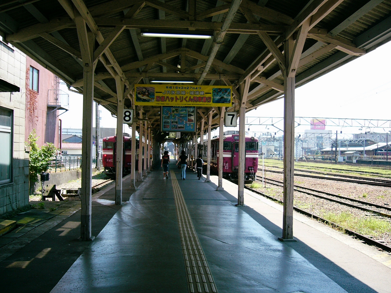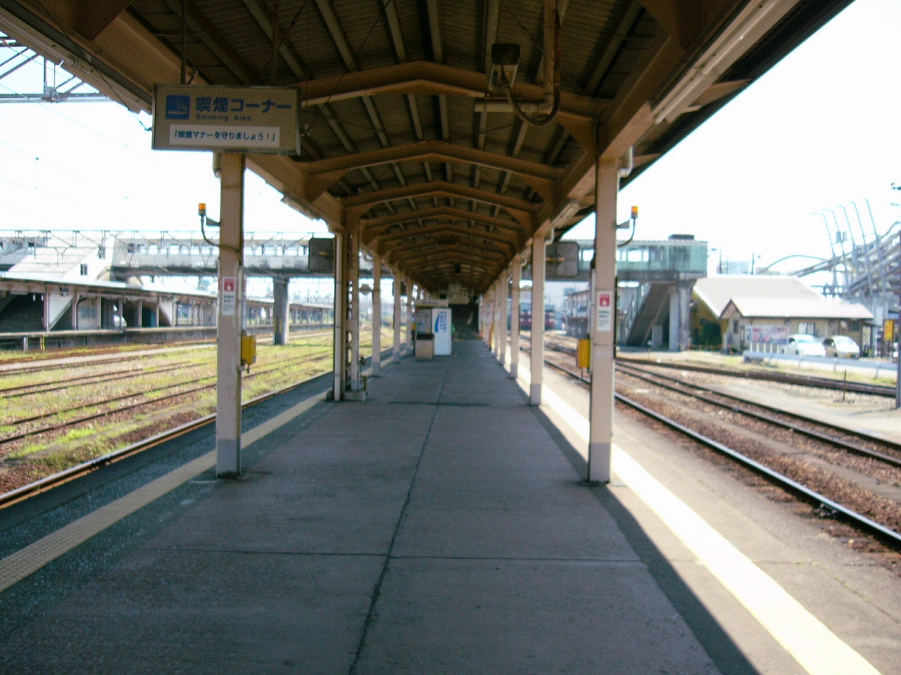 氷見線ホームはステーションビル2階直結の有人改札に入るか入らないの目前にして、さっと右に下りる。木柱の通路を歩いて、離れ小島に着く。どっどっとエンジンを鳴らして気動車が両端に待機。この7番線からが、いちばんよく高岡駅構内が見渡せる。東側なのだが、構内の中でも最もおもしろいところとなっている。小さい子が母に、そこに立って呼びかけられ、母、屈んで小さいカメラでその子と気動車を写す。氷見線を乗り終えたばかりのようだった。氷見線はアニメキャラクターの列車も走り、海際高く眺望がよいところがあるから、人気である。何だかんだ言って、ささやかな思い出作り、それは本当は、私も変わらないのだ。しかしそれができていないのではないかといつも気にしている。