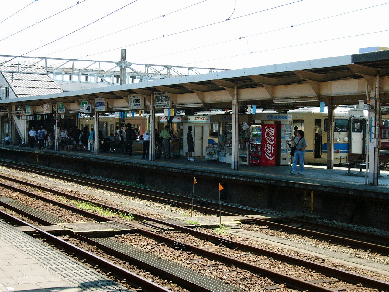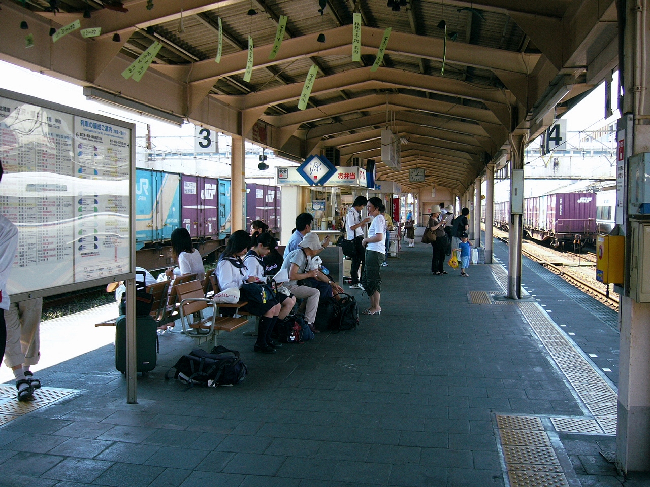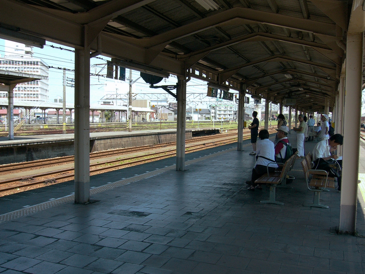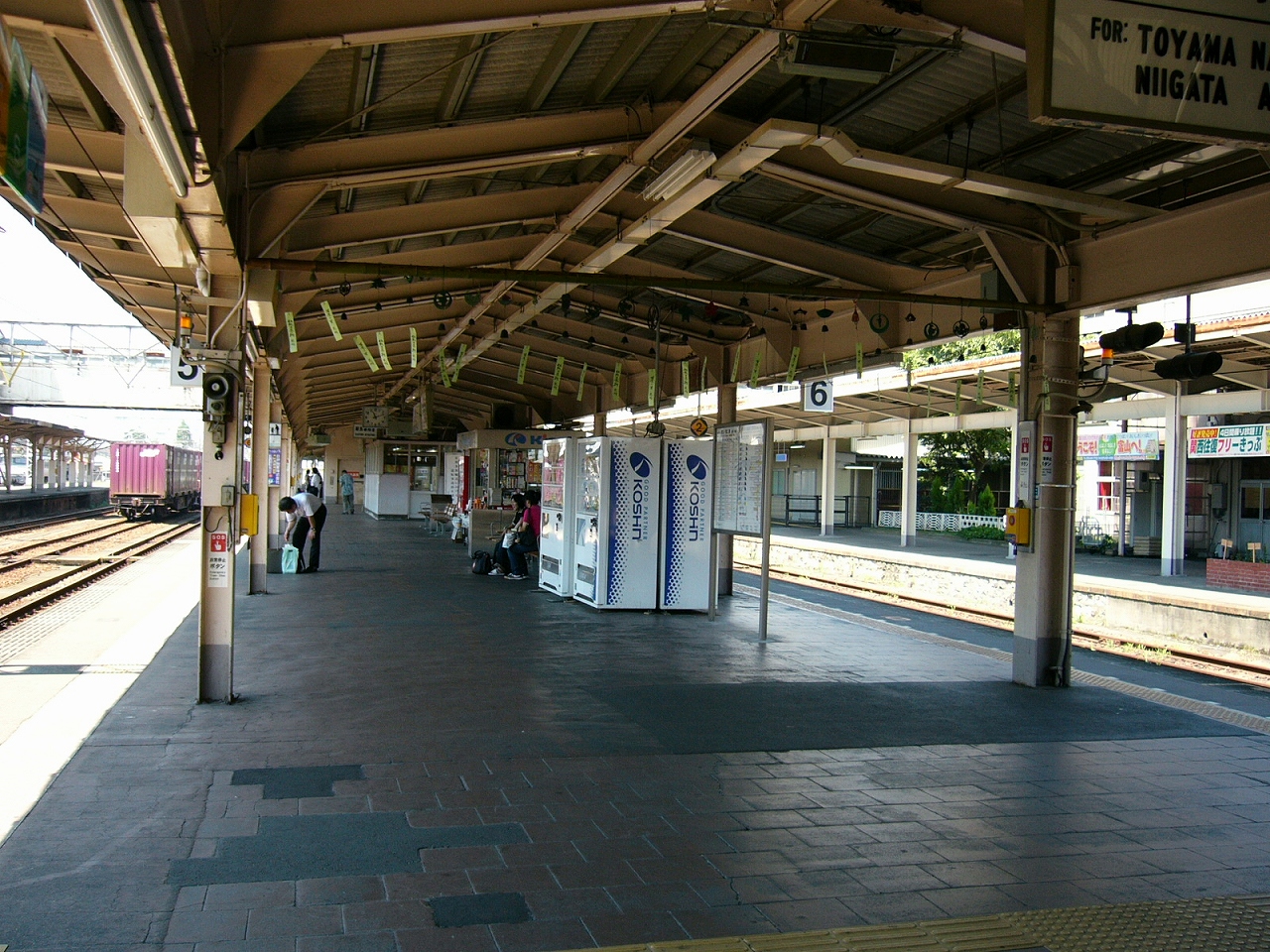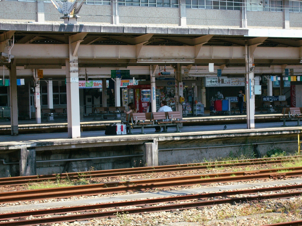 帰りはデパートから跨線橋に直接つながる改札を通ることにしよう。ちょうどもうすぐ下りが着く。近づいていくと改札係に、どの列車に乗るの、と訊かれた。富山方面だと伝えると、やにわ真剣に目を点にして「え、もう行っちゃったんじゃない?」そして切符を私に手渡して、「あ。やっちゃったな。」と、にやりとするのである。私は期待に応えるように走って自動ドアをくぐり、跨線橋に入った。冷房が切れてむっと空気がよどんでいる、その中、下方でごうんと富山行きの滑り出たのが、見えた。次の下りは何十分も後だった。しまった。そもそも本線なのにお昼の普通列車が思いのほか少ないのはなんでだ。