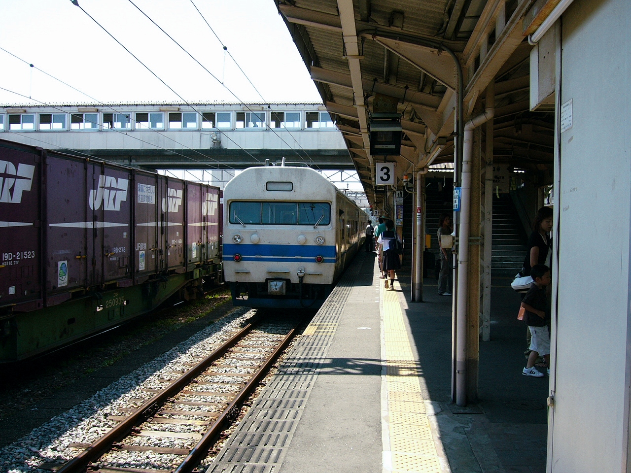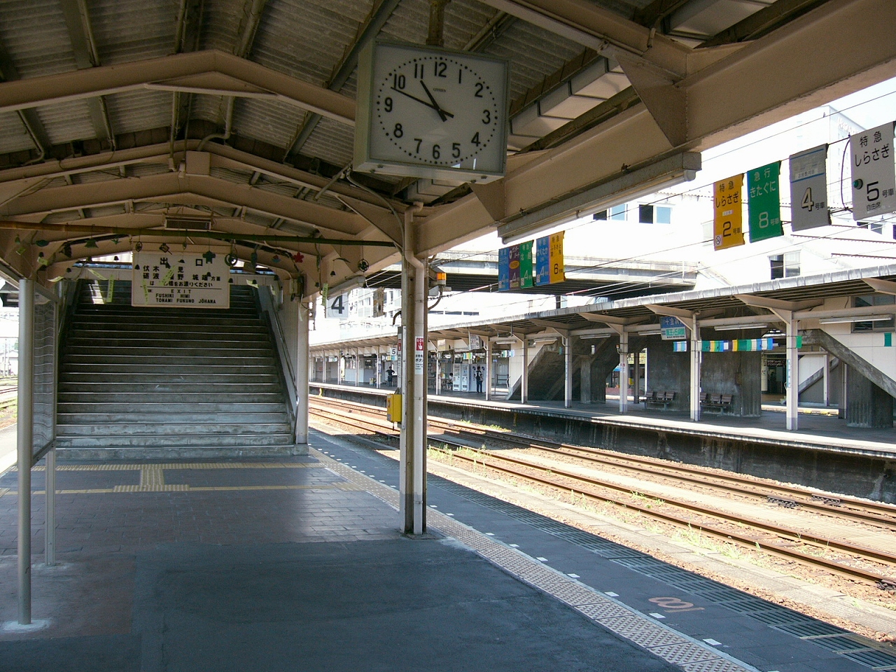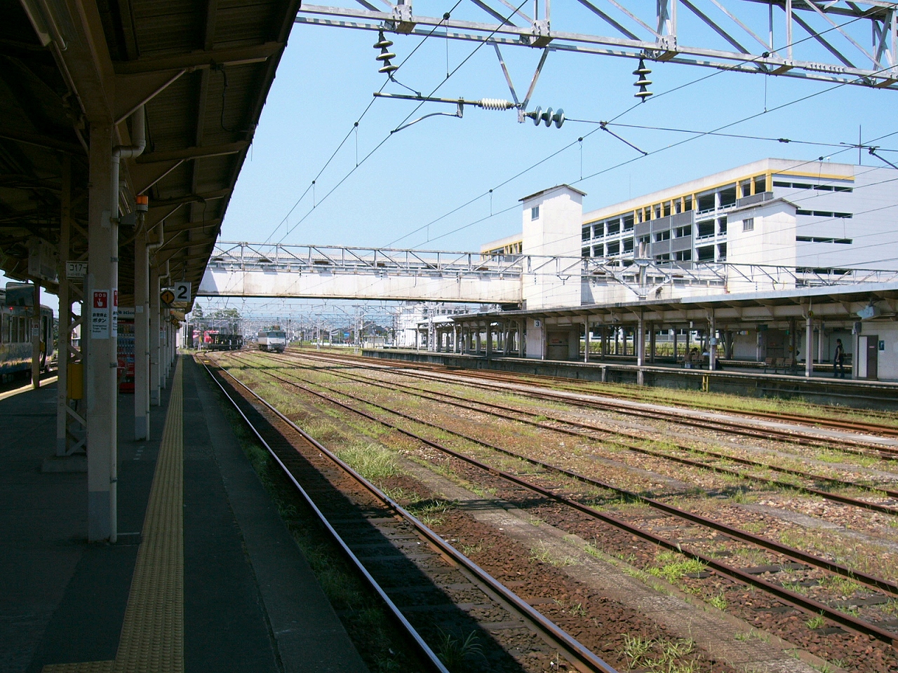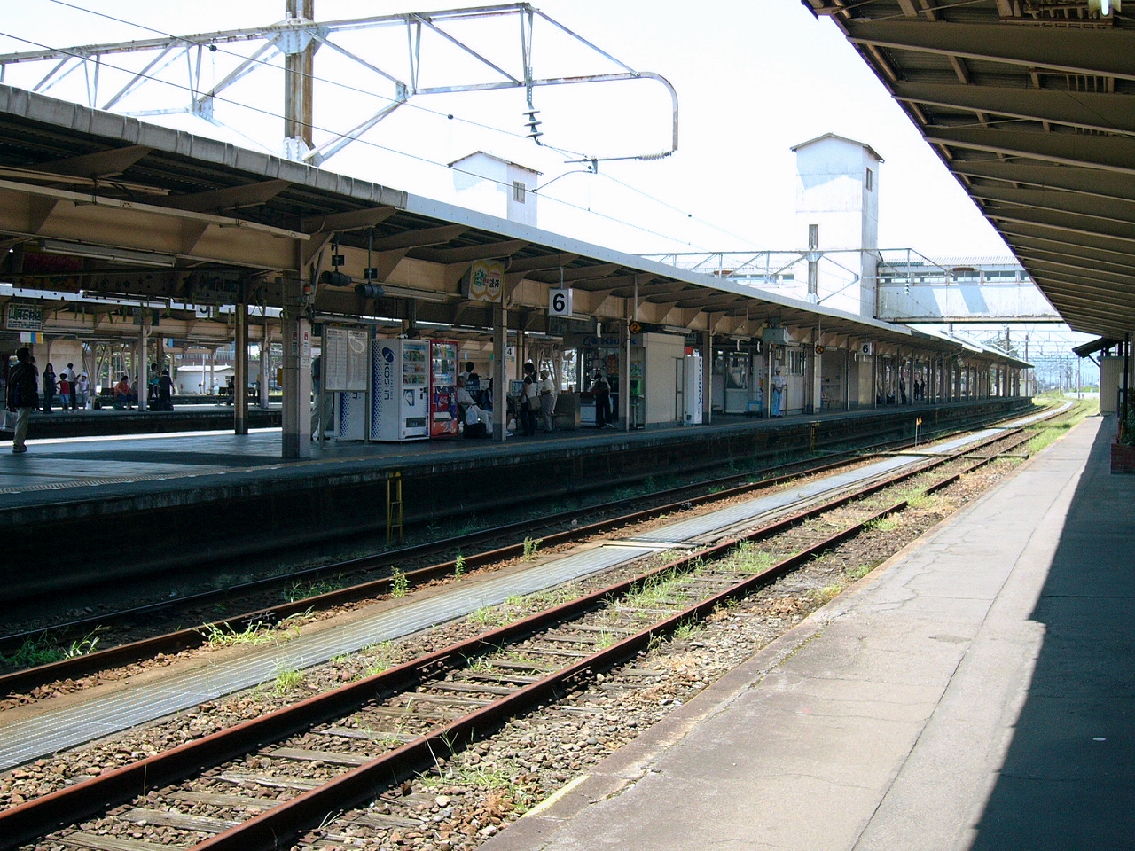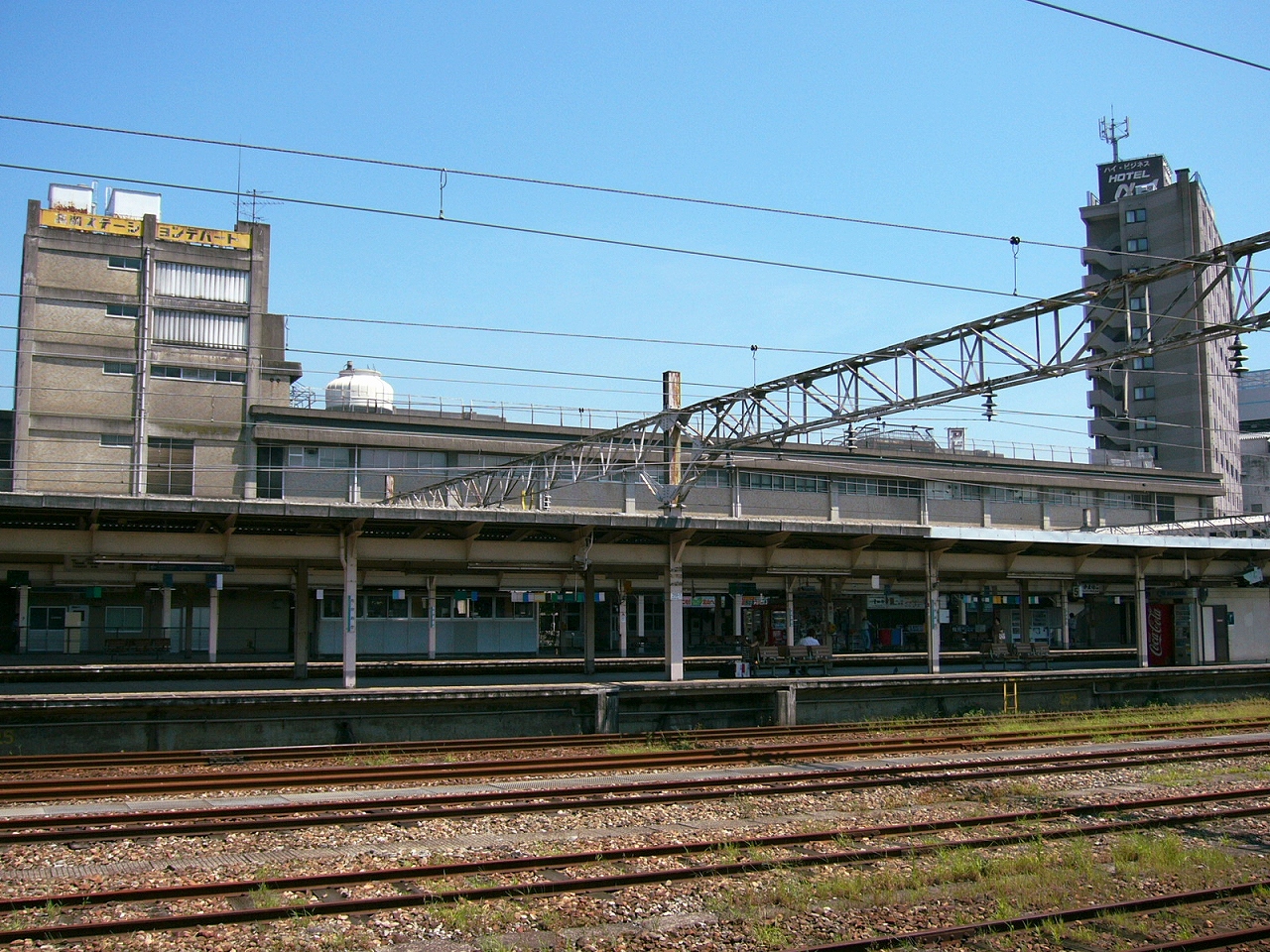 帰りはデパートから跨線橋に直接つながる改札を通ることにしよう。ちょうどもうすぐ下りが着く。近づいていくと改札係に、どの列車に乗るの、と訊かれた。富山方面だと伝えると、やにわ真剣に目を点にして「え、もう行っちゃったんじゃない?」そして切符を私に手渡して、「あ。やっちゃったな。」と、にやりとするのである。私は期待に応えるように走って自動ドアをくぐり、跨線橋に入った。冷房が切れてむっと空気がよどんでいる、その中、下方でごうんと富山行きの滑り出たのが、見えた。次の下りは何十分も後だった。しまった。そもそも本線なのにお昼の普通列車が思いのほか少ないのはなんでだ。