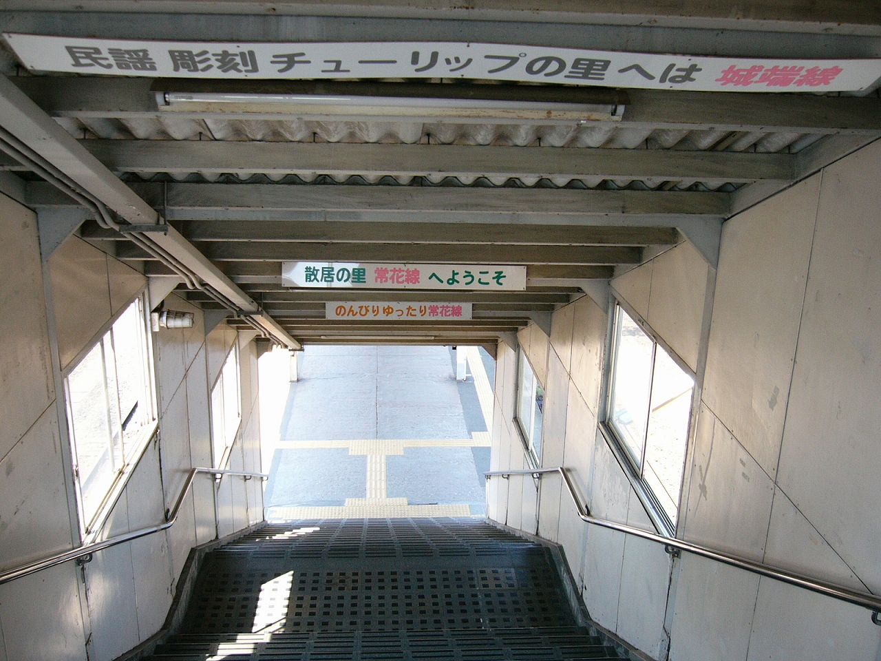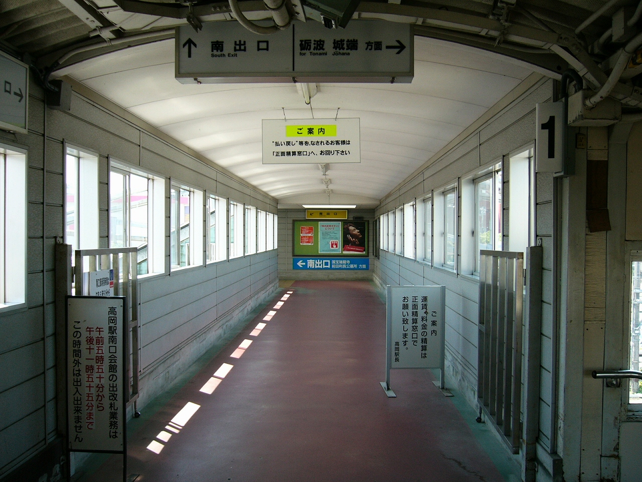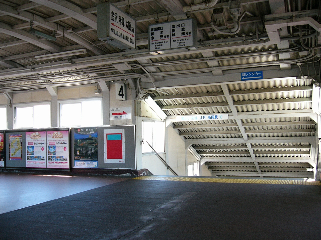裏口が小さそうなので、先にそこから出た。途中跨線橋は細くなって、後から造り足したものだった。階段を下りると床のタイルが新しかった。祖父母と一緒に来た子供が、柵にぶら下がってひたすらだらだらしている。家族を迎えに来たのだろうが、その子はまるで自分の家にいるかのようだ。もうこの高岡駅も、気張らずに来れる存在になっているようで、少しばかり羨ましかった。