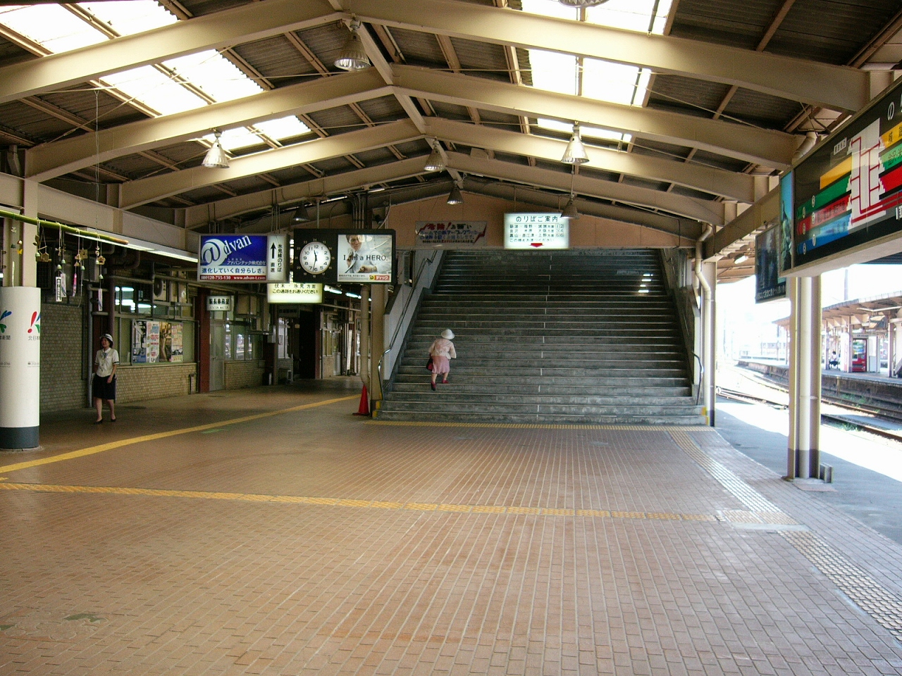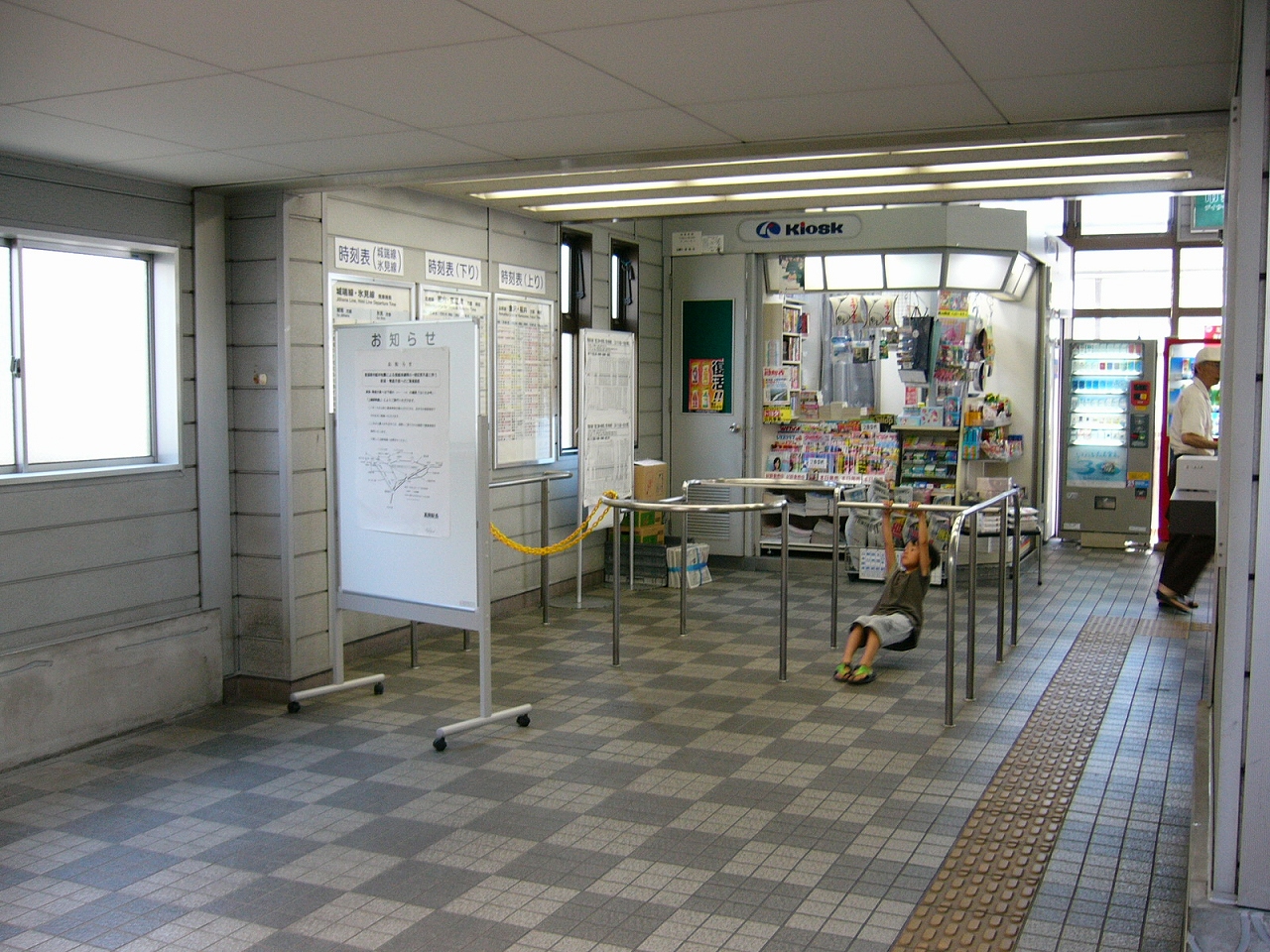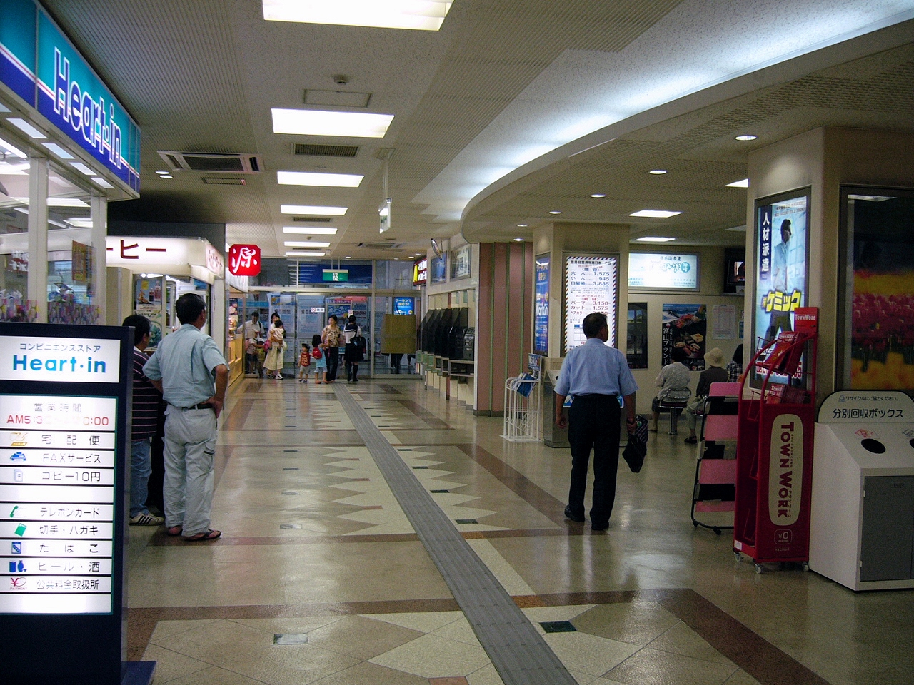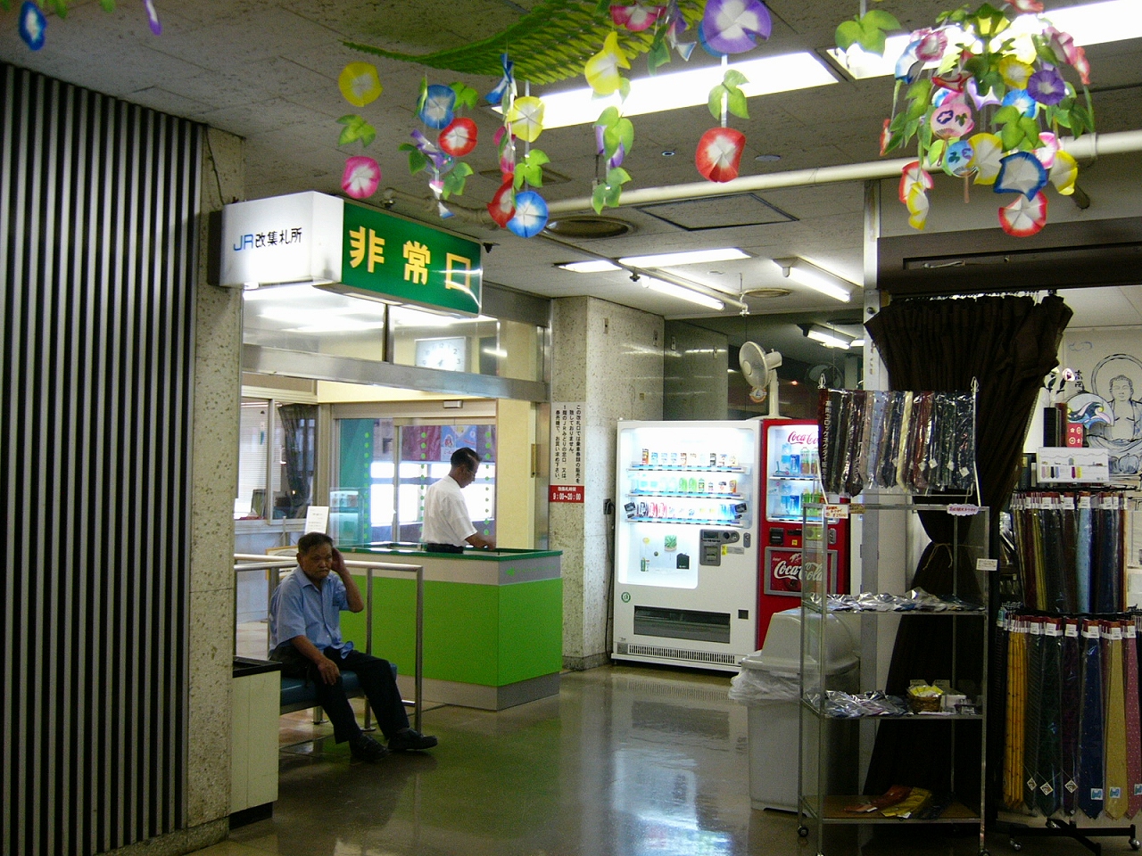 跨線橋の端にはそのステーションビル二階に直結した有人改札がある。自動ドアになっていて、ちょっと覗いてみると、涼しい。こういう工夫を凝らした駅の造り、普段の駅利用で軽い気分転換ができそうだ。