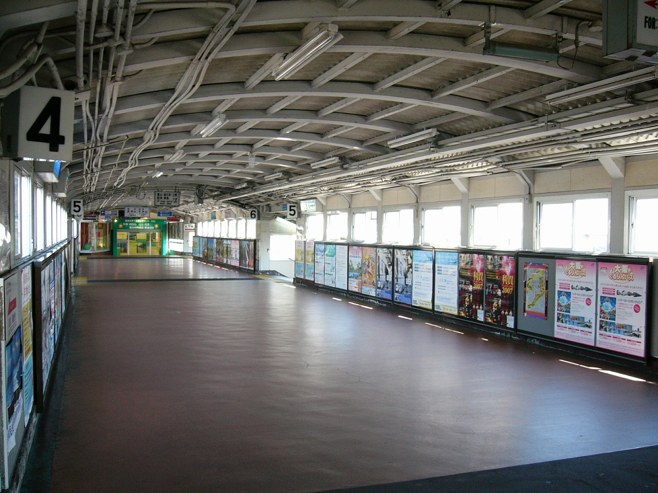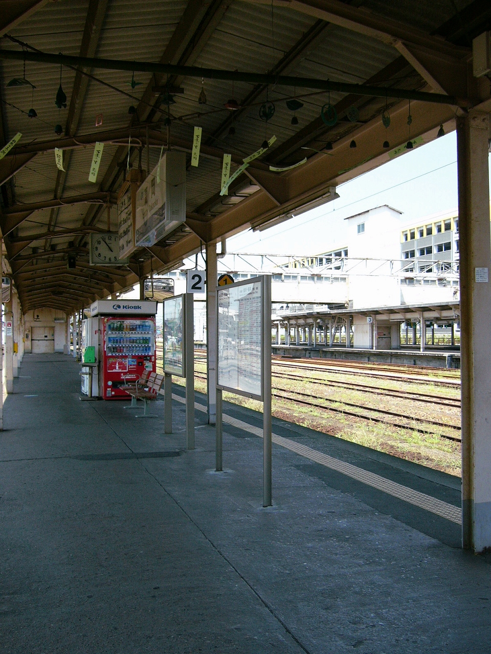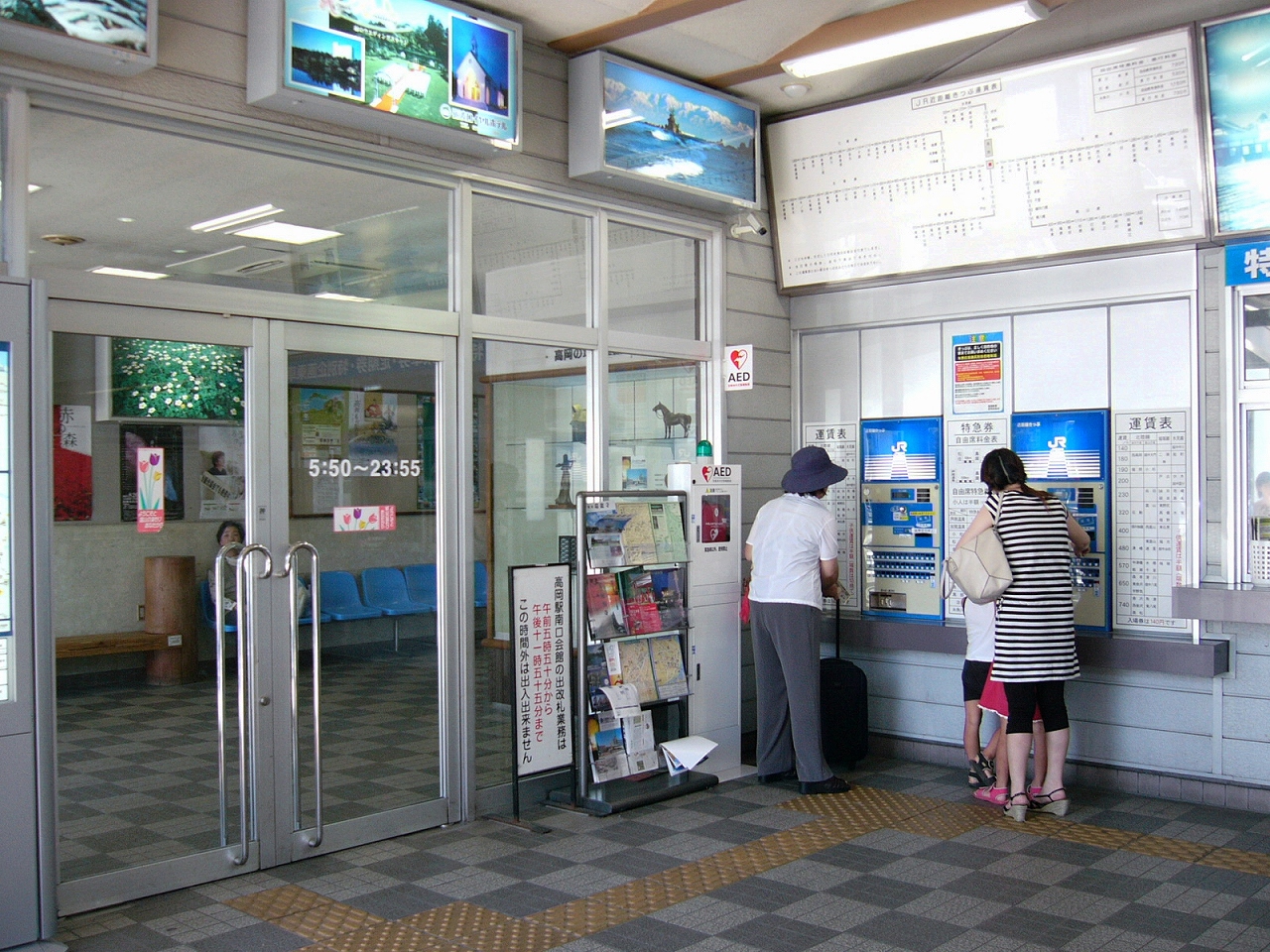 跨線橋の端にはそのステーションビル二階に直結した有人改札がある。自動ドアになっていて、ちょっと覗いてみると、涼しい。こういう工夫を凝らした駅の造り、普段の駅利用で軽い気分転換ができそうだ。