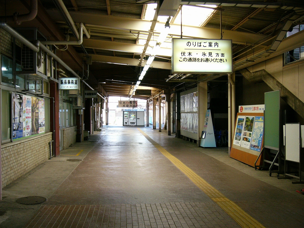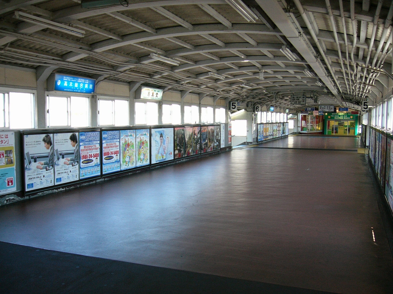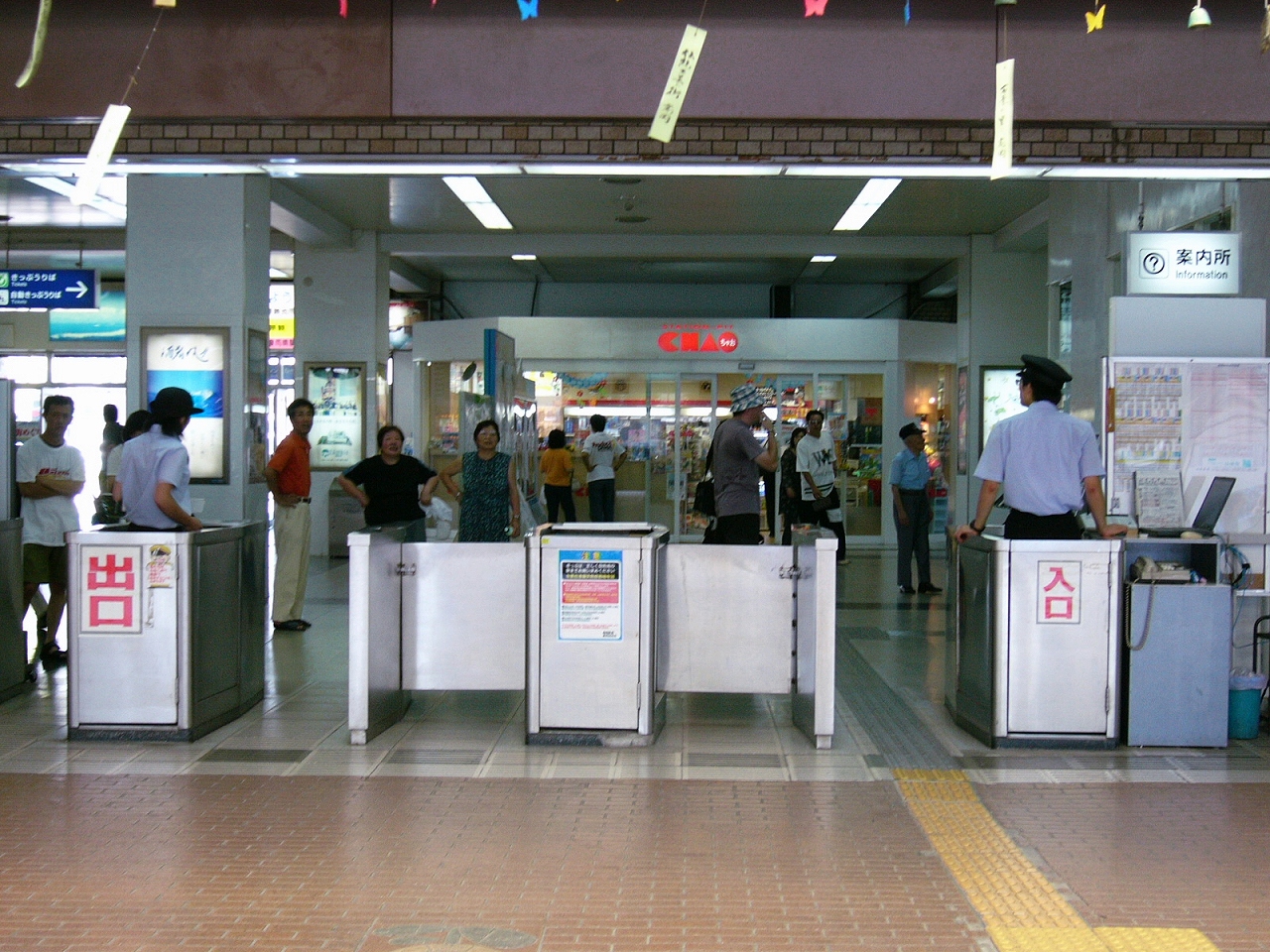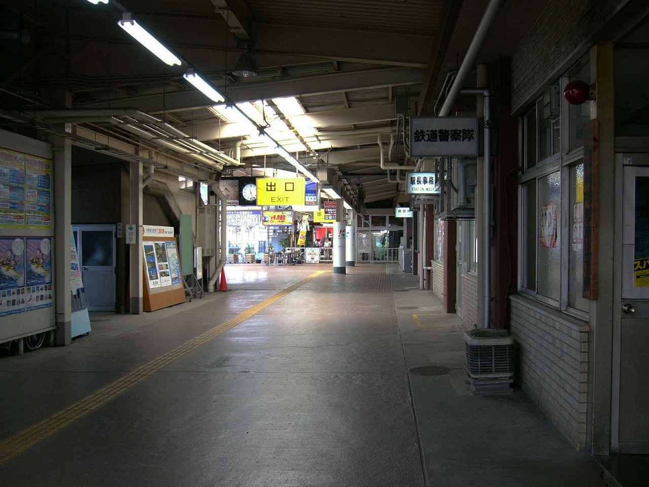 跨線橋の端にはそのステーションビル二階に直結した有人改札がある。自動ドアになっていて、ちょっと覗いてみると、涼しい。こういう工夫を凝らした駅の造り、普段の駅利用で軽い気分転換ができそうだ。