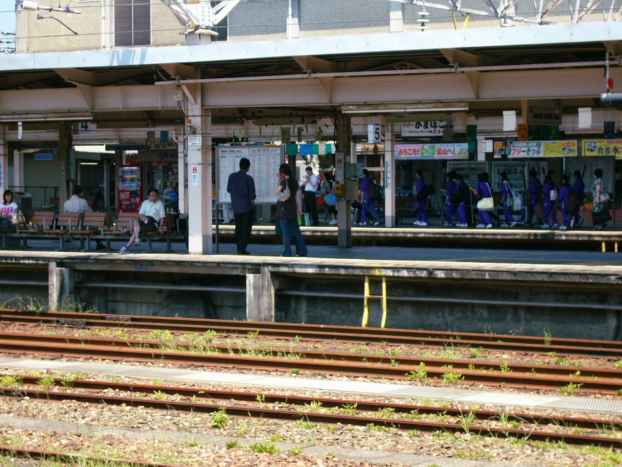 お盆休みはじまったばかりの土曜日、高岡駅ではプラットホームに青銅風鈴がいくつもさげられ、線路が何本もある広大な赤茶の構内は烈日をうけて燃えるようだった。あまりにも中線が多いため、すでに細々と精気なさげに草が生えているところもある。そういう構内に、ホームが、ぽつんぽつんとある。ずいぶん離れたところにあるのは氷見線のホームで、そこから対角に最も離れていることになるのが城端線のホームなのだった。氷見は海へ、城端は山へ。それぞれは構内の中でもそれぞれに近い方に陣取っている。
