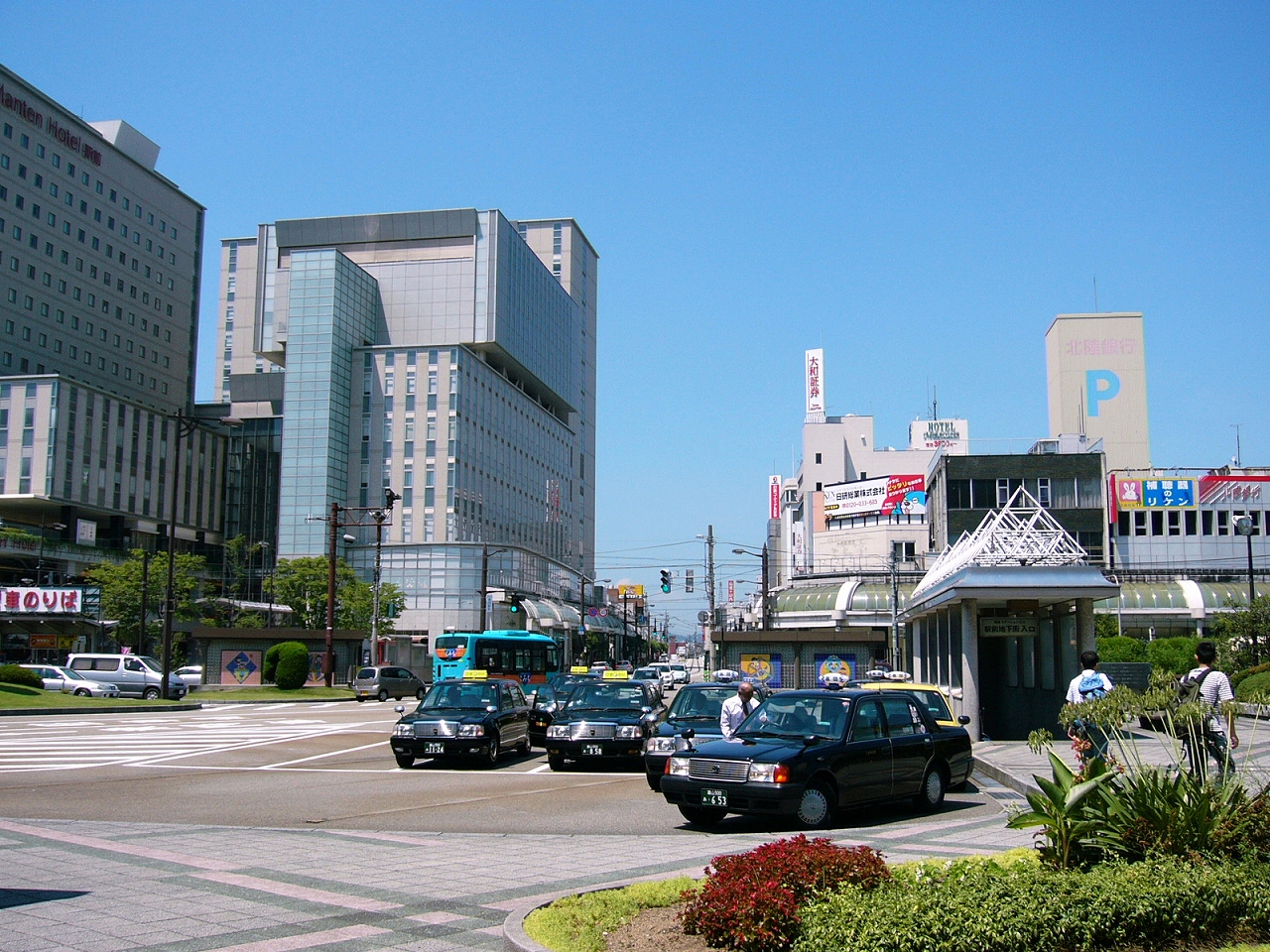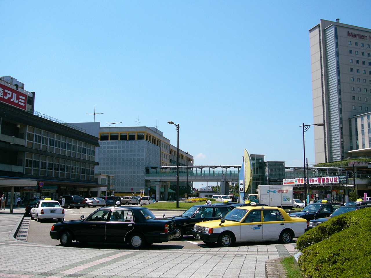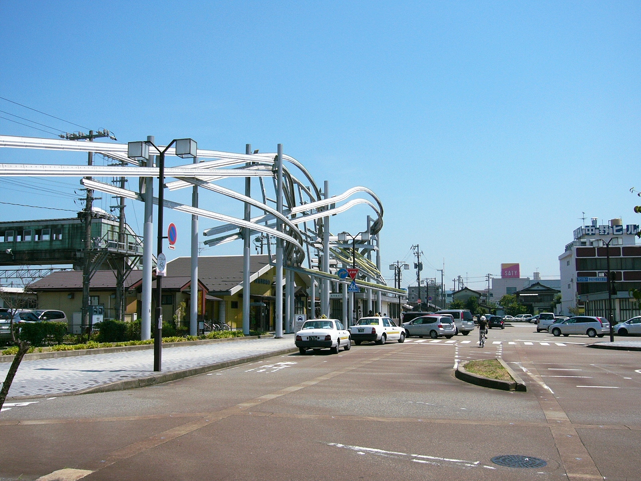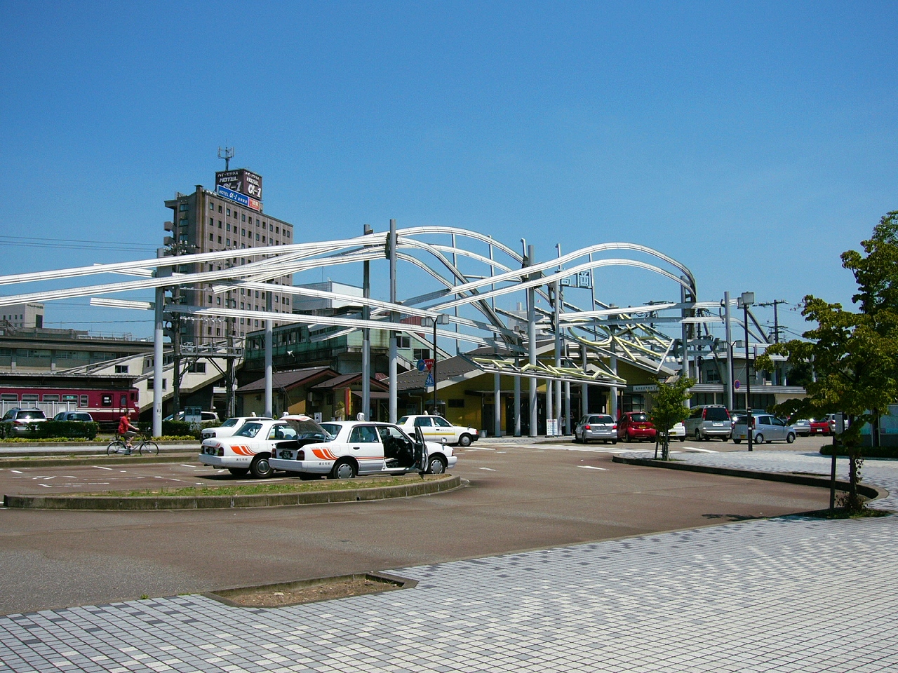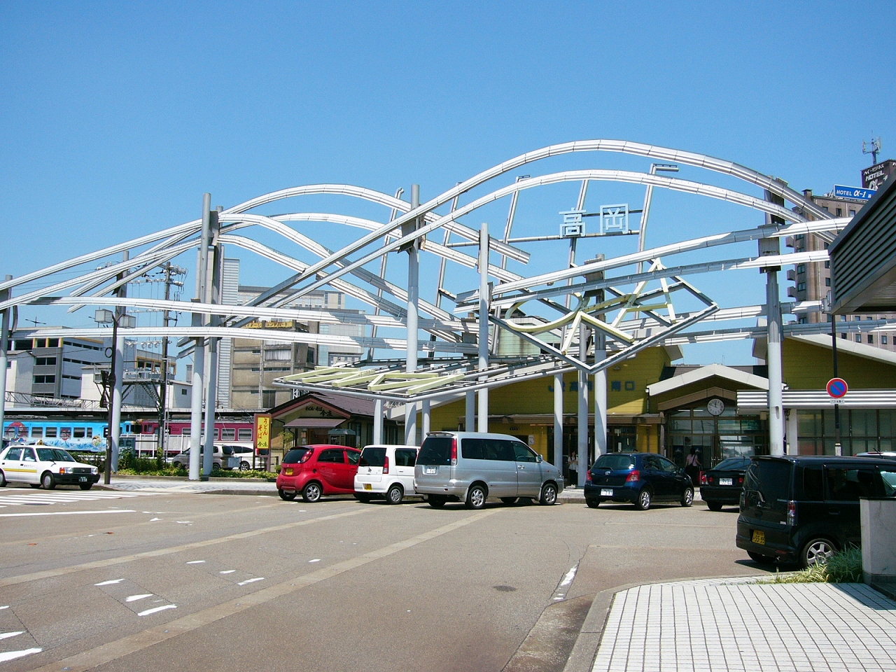 外へ出て、思わず呼吸が止まる。思わず片目を瞑って「暑い…」と言うことで安心して捉えなおそうとしたが、そのから喉が干からびて、目玉が渇いた。こんな暑くて大丈夫なのか。黄色な駅舎前には屋根のように鉄骨をねじった彫刻が覆いかぶさって、そこに、高岡、と表示されている。