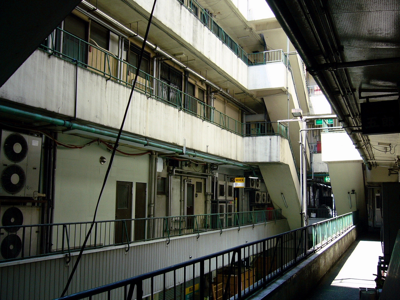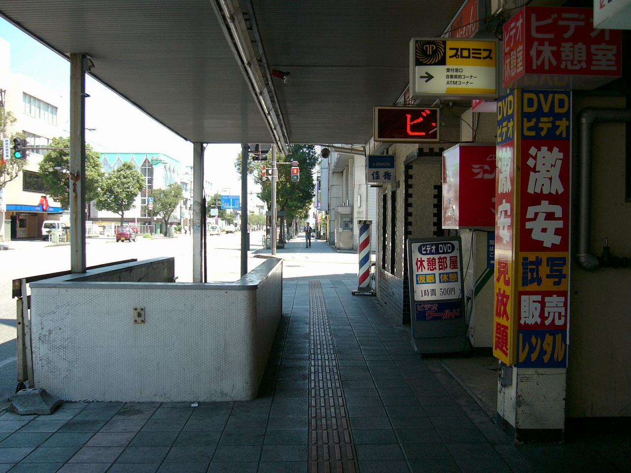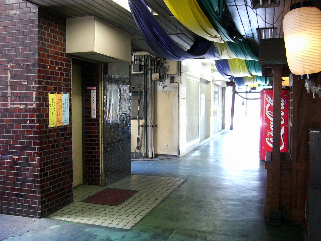 アドニスビルに近寄ってみた。歩道はバス乗り場で、地下街への階段がいくつもあるのだが、歩道の床面も階段のへりも、すっかり埃と汚れにまみれている。察するに、建設以来、そのままじゃないのか。このビルはビデオ休憩所やほか消費者金融がいくつも入っていて、さようなビルとなっていた。中は吹き抜けで、周りに戸口が配されているが、腐った油のにおいが立ちこめ、暑さと吐気。異国であれば、いつ事件に巻き込まれてもおかしくないかもしれない。地階はもっとすごく、潰れた飲み屋がしじまに薄黒く寝ている。その地階から、駅前地下街へも行けるのだった。